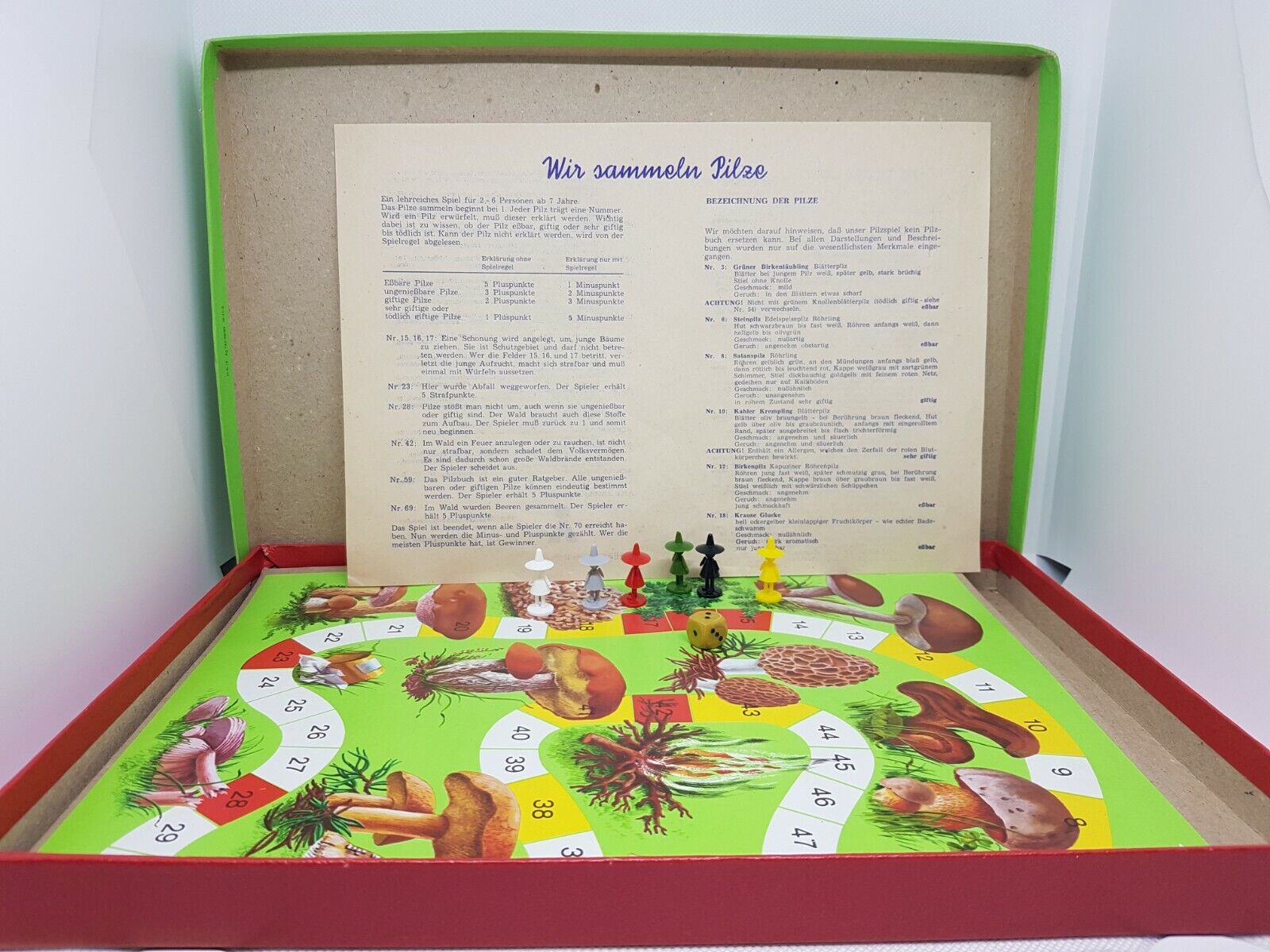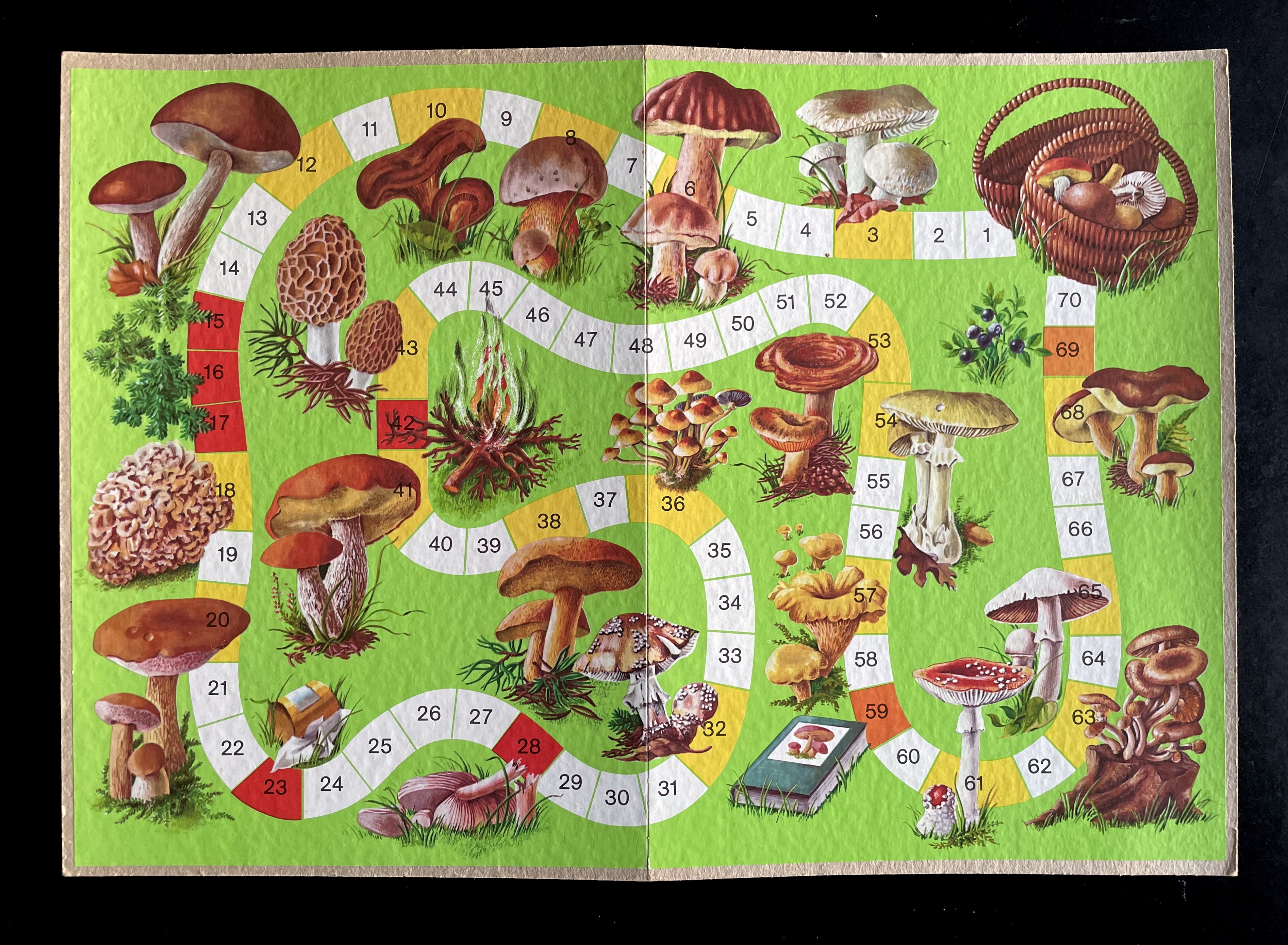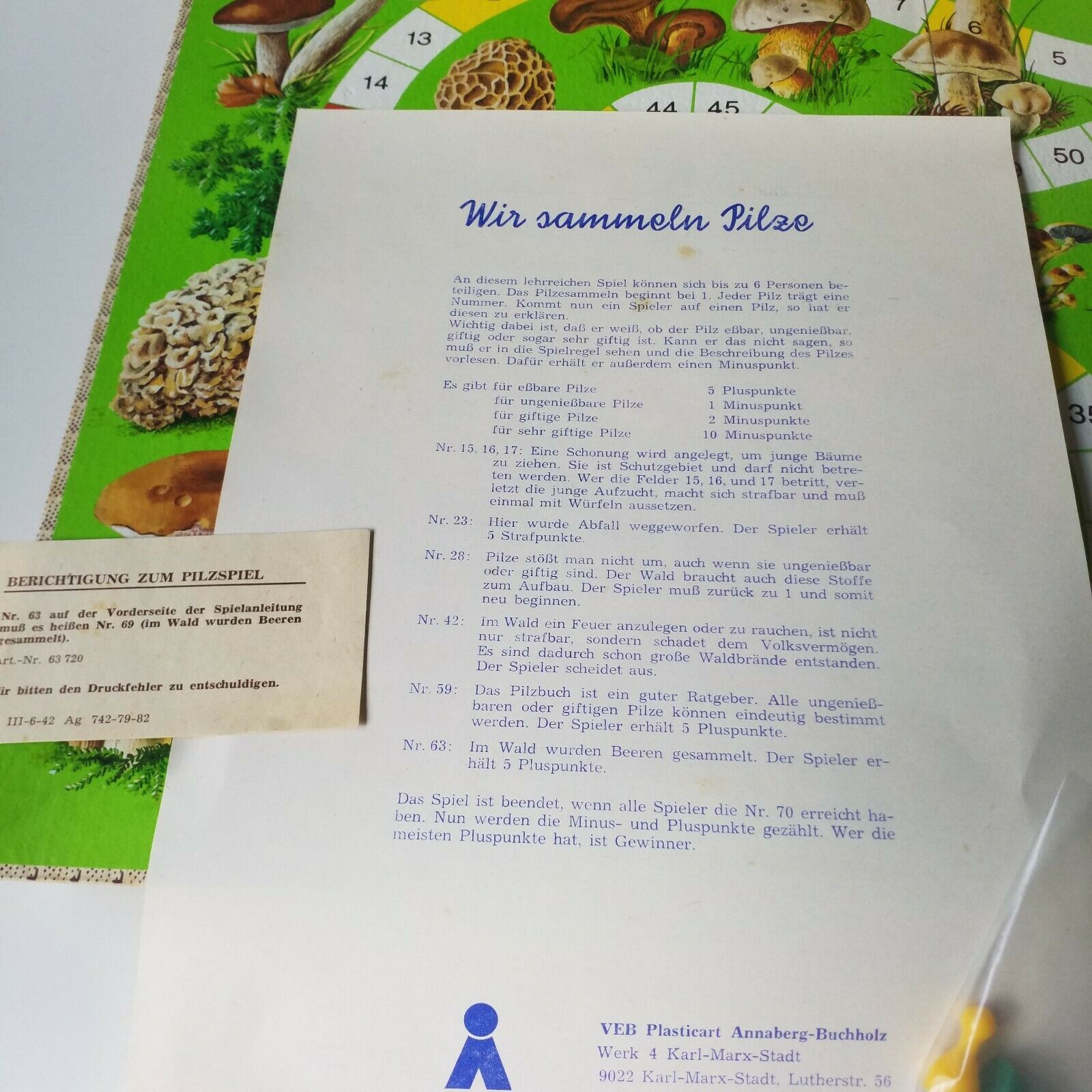 Just like the recently featured Begriffe-Lotto, Wir sammeln Pilze (“We gather mushrooms”) is a game issued around 1981 by VEB Plasticart Annaberg-Buchholz, produced in their Werk 4 in Karl-Marx-Stadt, the Saxon city nowadays known again as Chemnitz.