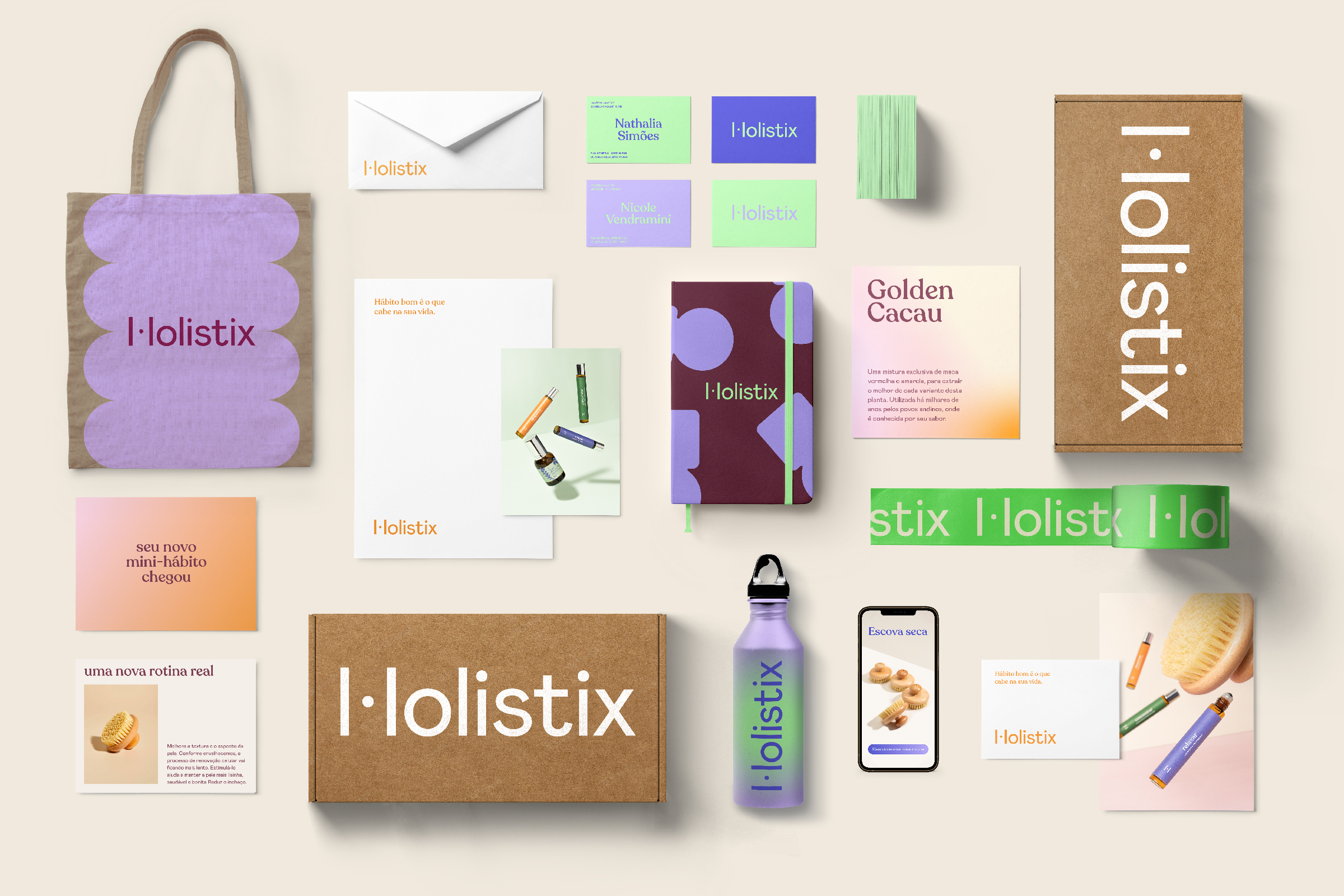 With this objective in mind, the project began with the logo redesign. Honoring the building principles of the previous brand, our objective was to make its representation even more proprietary, proposing a new friendly design, full of personality, while maintaining the sophistication and simplicity already known. The result was a logo that looks fresh, yet still familiar to Holistix’ brand lovers.