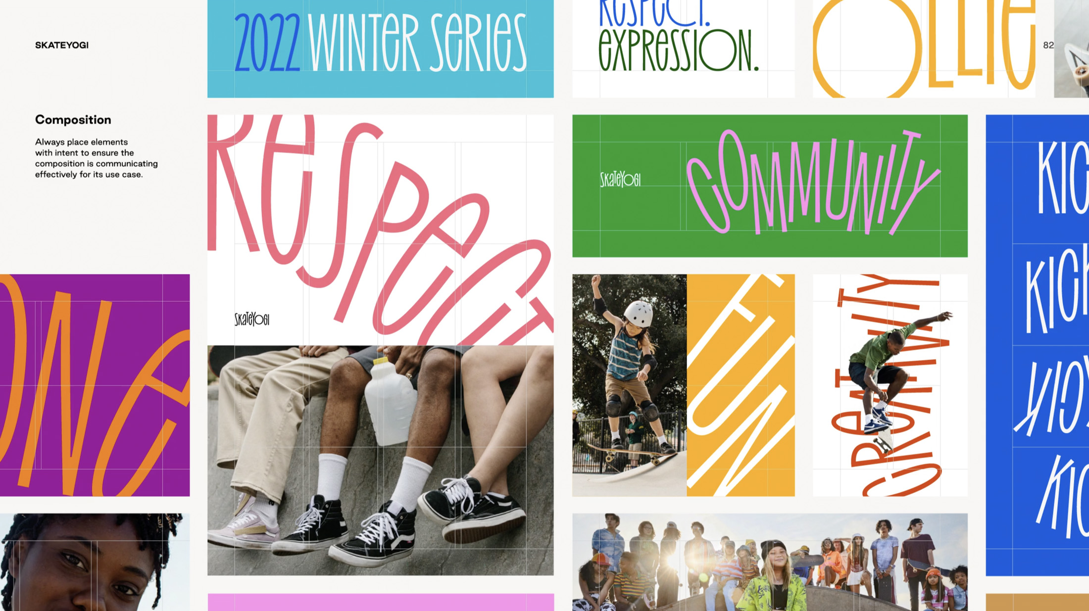 To mark the opening of their new Williamsburg location, Order created an identity that echos the movement and expression found in skateboarding. The vibrant, type-driven identity system celebrates the values of the Skateyogi community and captures their inclusive approach to learning.