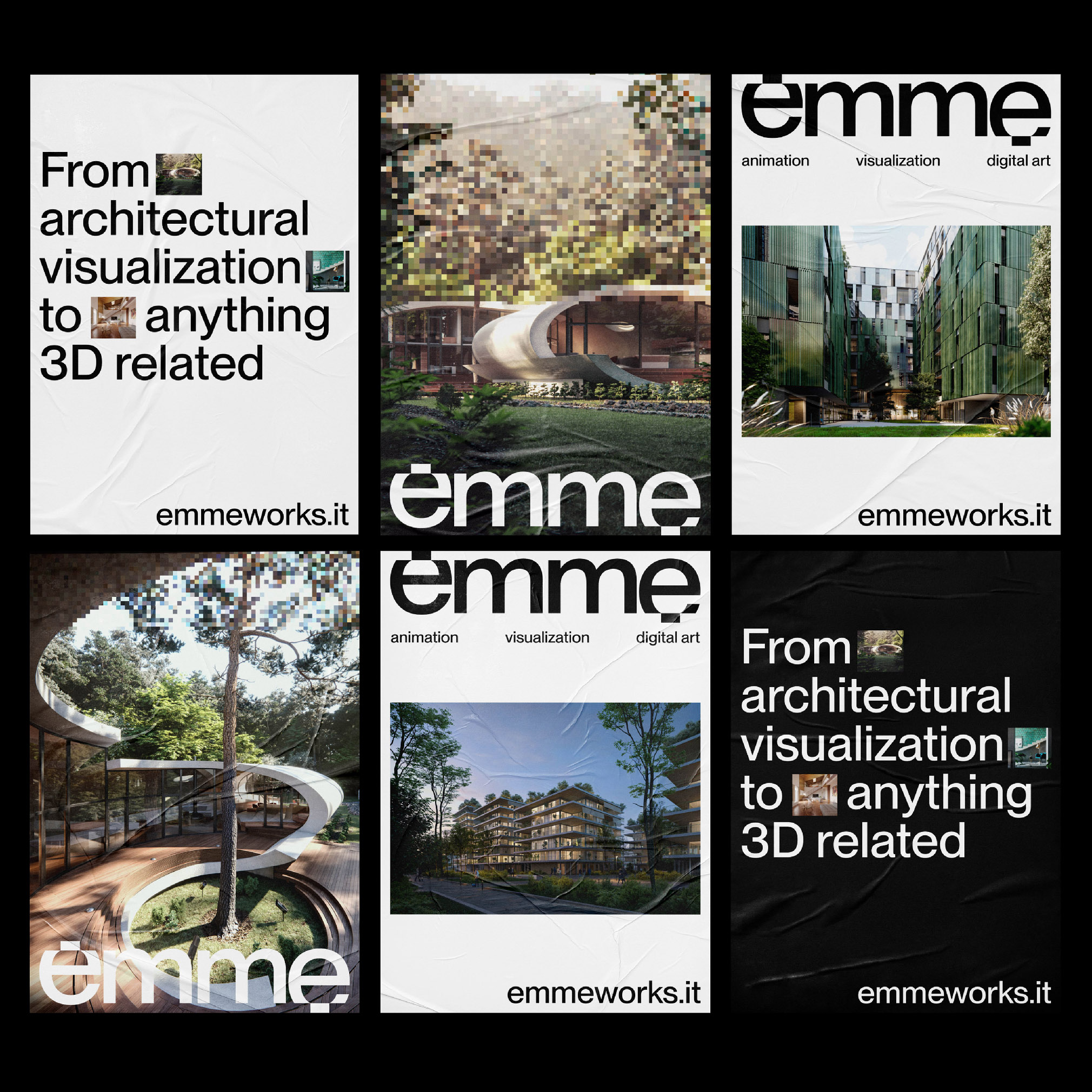 Emme is a fresh Italian studio focused on depicting reality with a brand new style. From architectural visualization to anything 3D related. The studio’s visual identity revolves around an all lowercase wordmark based on Neue Montreal by Pangram Pangram Foundry.