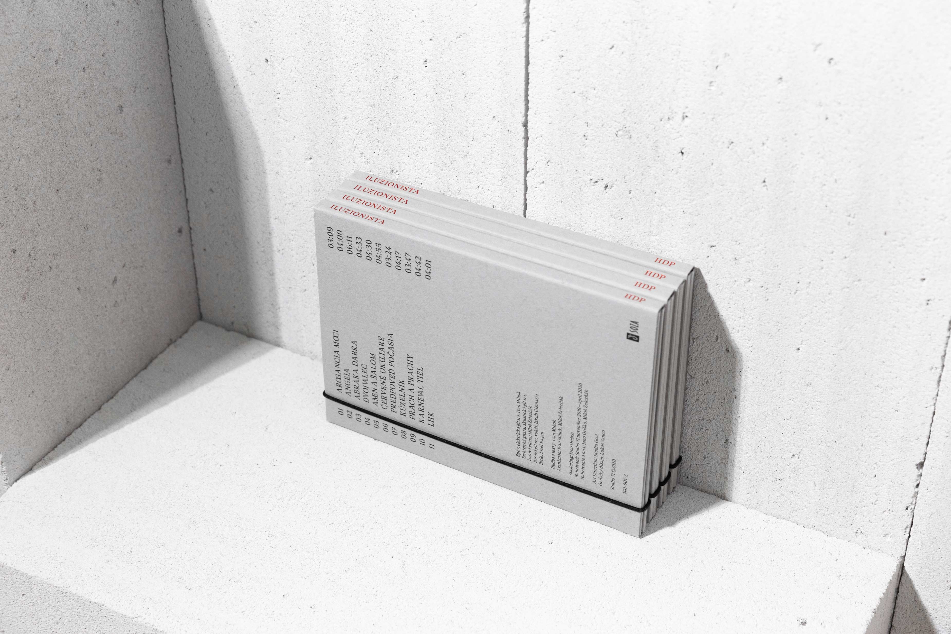 The music album Iluzionista directly alludes to the events in the political scene and its impact on the wider environment. The world of illusions and half-truths tends to draw society in and blind our consciousness. Therefore, the basic motif became a spiral as a reference to unwanted illusionism, which can take various, at first sight even sincere, forms. There are three different stylized spirals on the album, referring precisely to the variety of forms in which these alternative truths are articulated to the public. The balanced minimalism is completed by the bold typography combined with uncoated paper and thermal printing.