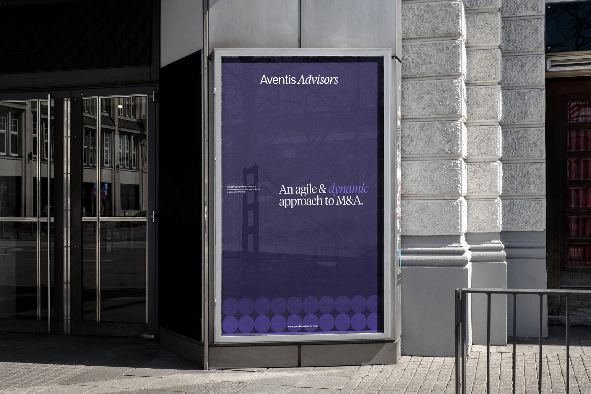 Led by the idea that every successful M&A deal ends with a signature, the wordmark is composed by harmonically merging two highly contrasting typefaces — a sans-serif font representing honesty and trustworthiness & an italic-serif font reflecting a signature and also aligning with the dynamic and adaptable nature of Aventis Advisors.