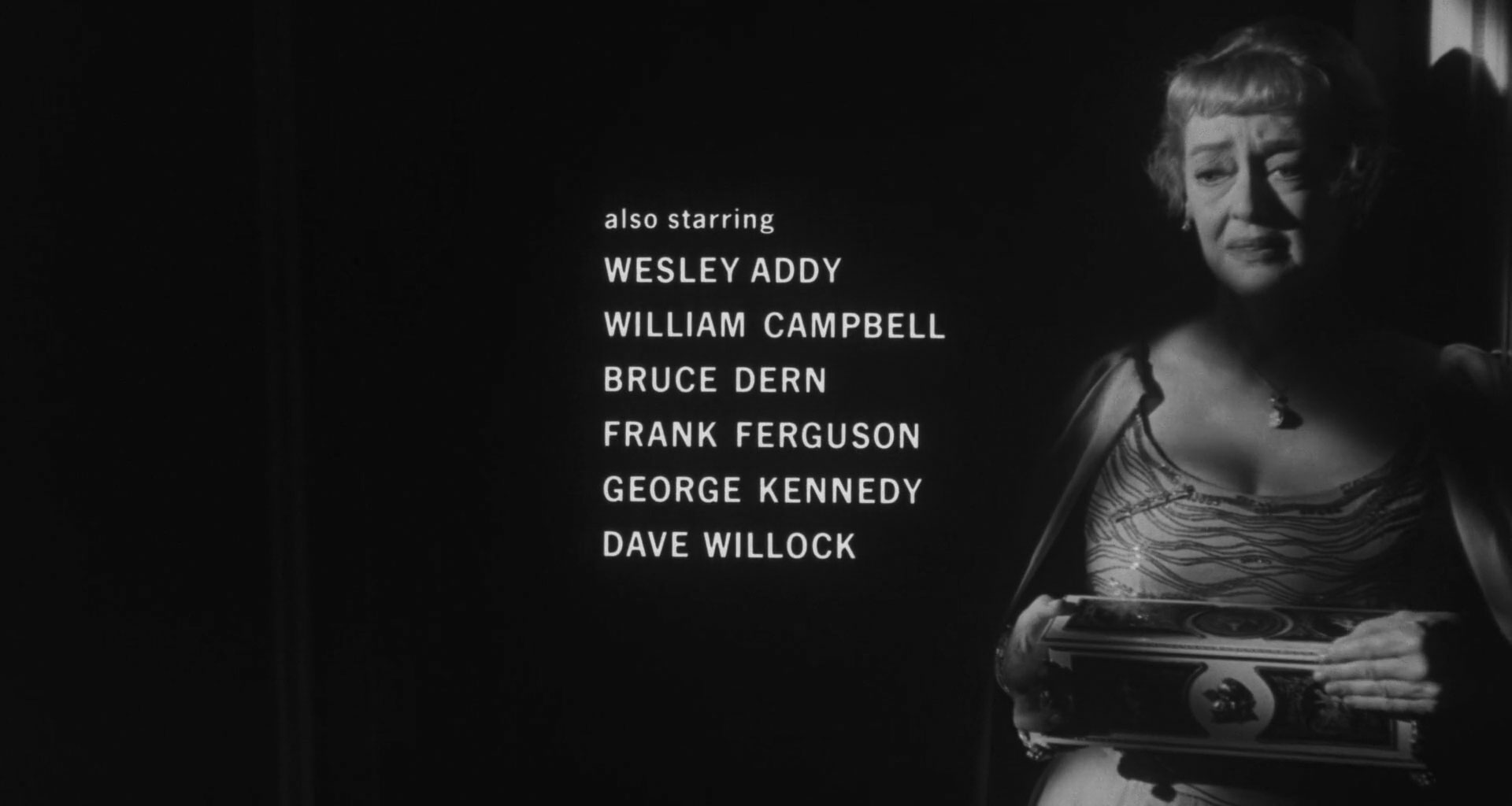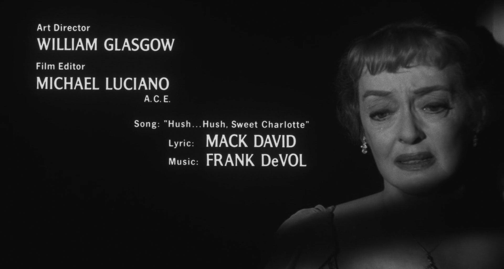 Hush … Hush, Sweet Charlotte is a 1964 black-and-white thriller film directed by Robert Aldrich and starring Bette Davis. In the story, “an aging, reclusive Southern belle plagued by a horrifying family secret descends into madness after the arrival of a lost relative”.