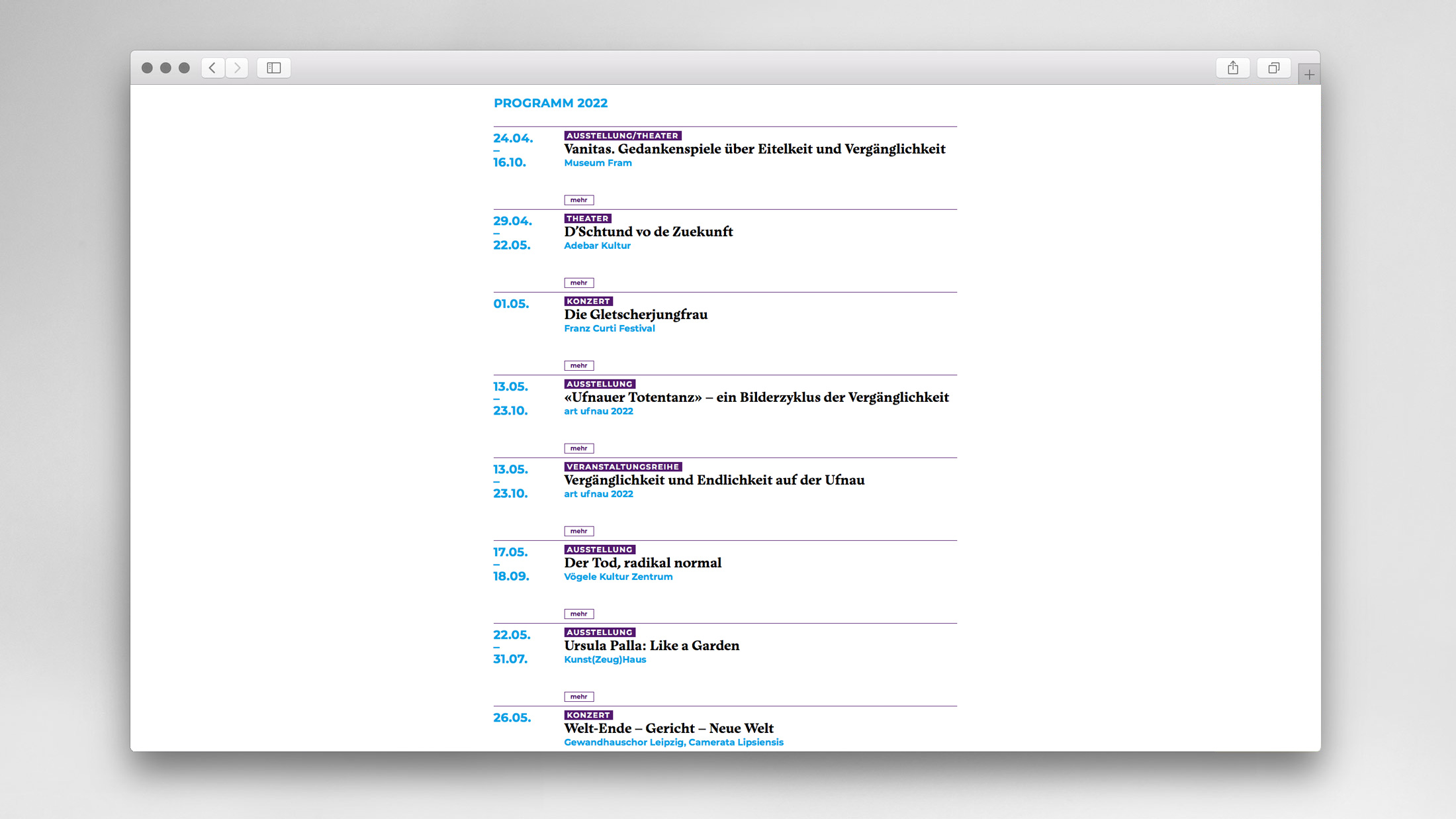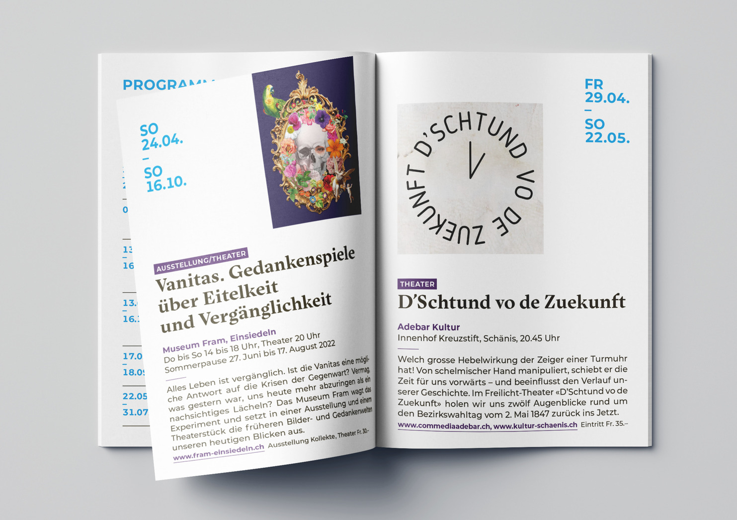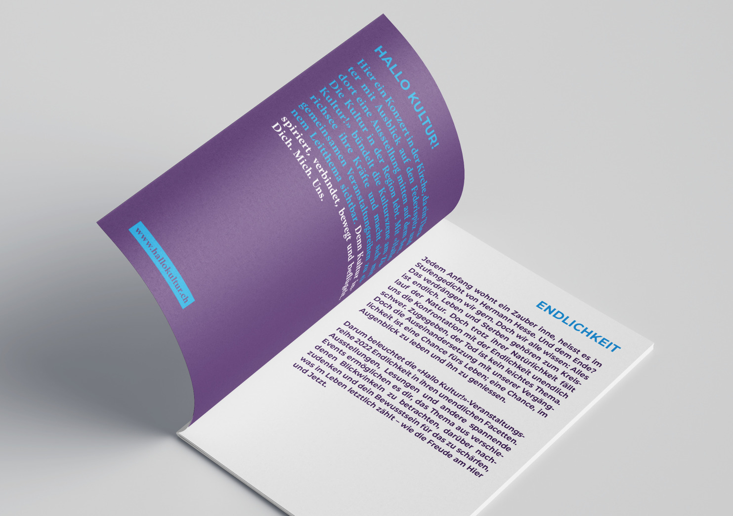 With “Hallo Kultur!”, the cultural scene at Lake Zurich is joining forces and making itself visible with joint event series on an annual theme. The series 2022 illuminates finiteness in its infinite facets. Exhibitions, readings and other events allow the visitor to look at the topic from different angles, and raise your awareness of what ultimately counts in life.