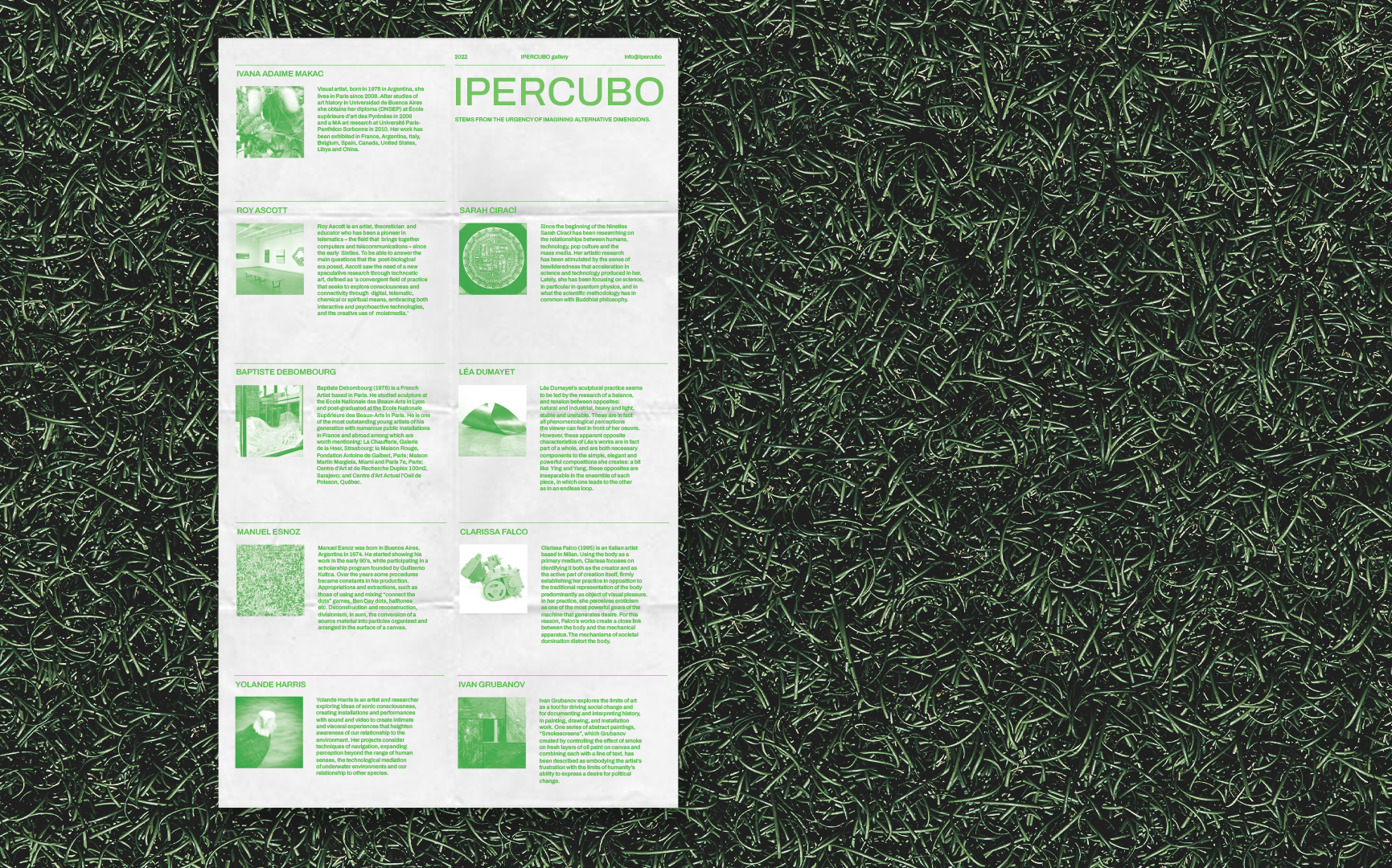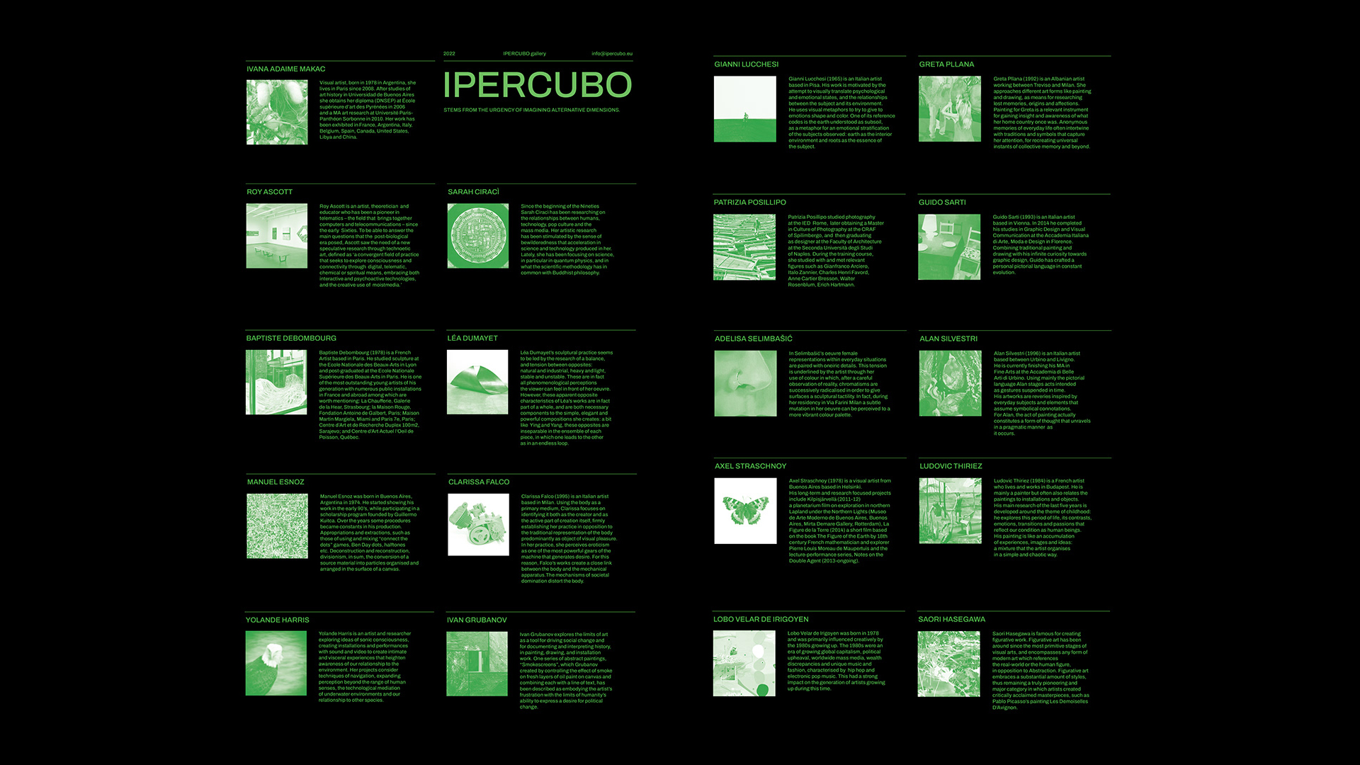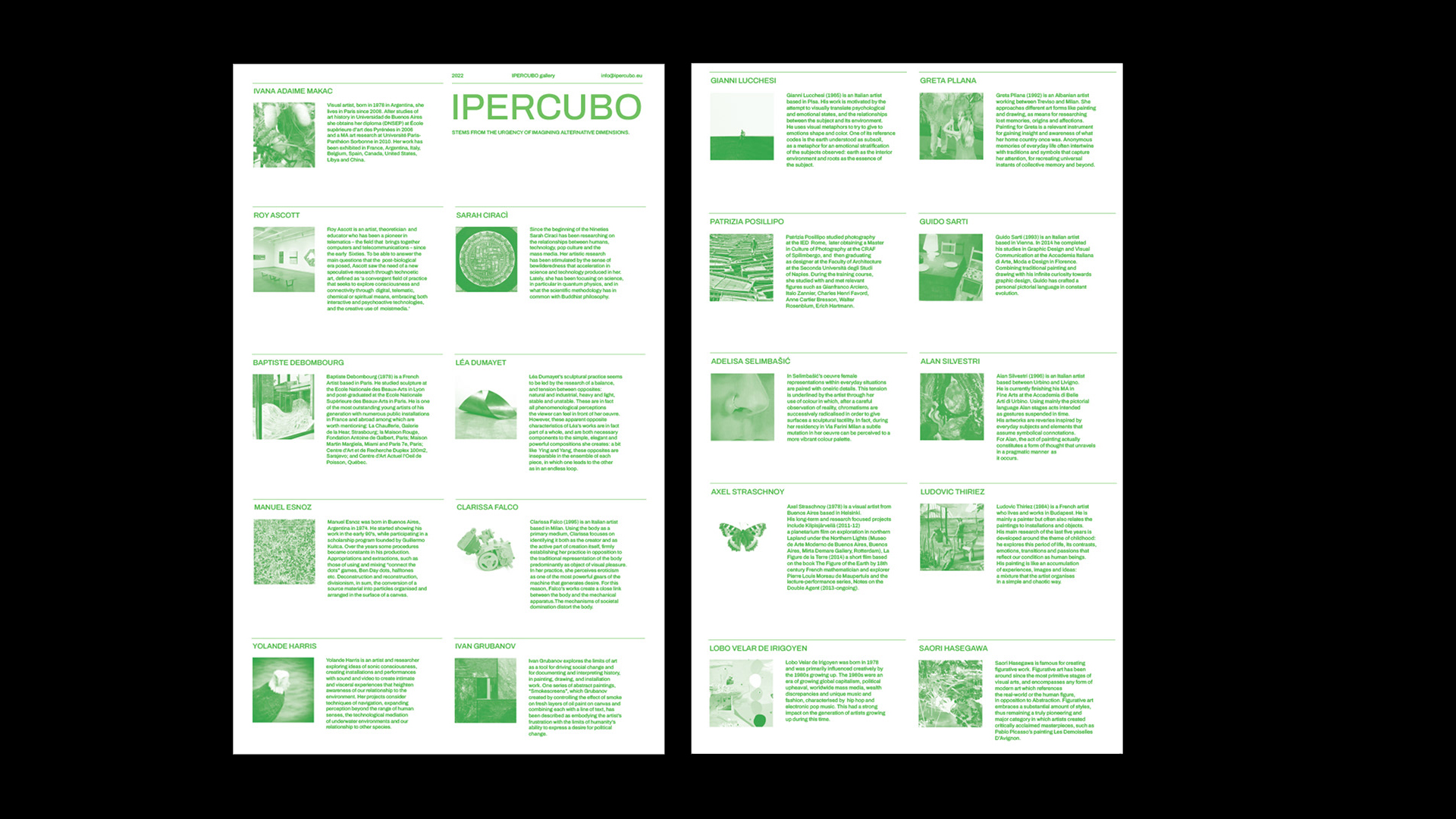 IPERCUBO is a contemporary art gallery in Milan that stems from the urgency of imagining alternative dimensions. The hypercube is a geometric figure analogous to the cube but immersed in a space of four or more dimensions: whilst it can be mathematically conceptualized and described, it cannot actually be imagined by the human mind since it can only think in a three-dimensional reality. The concept of hyperobject, developed by the contemporary philosopher Timothy Morton, is loosely related to the hypercube.