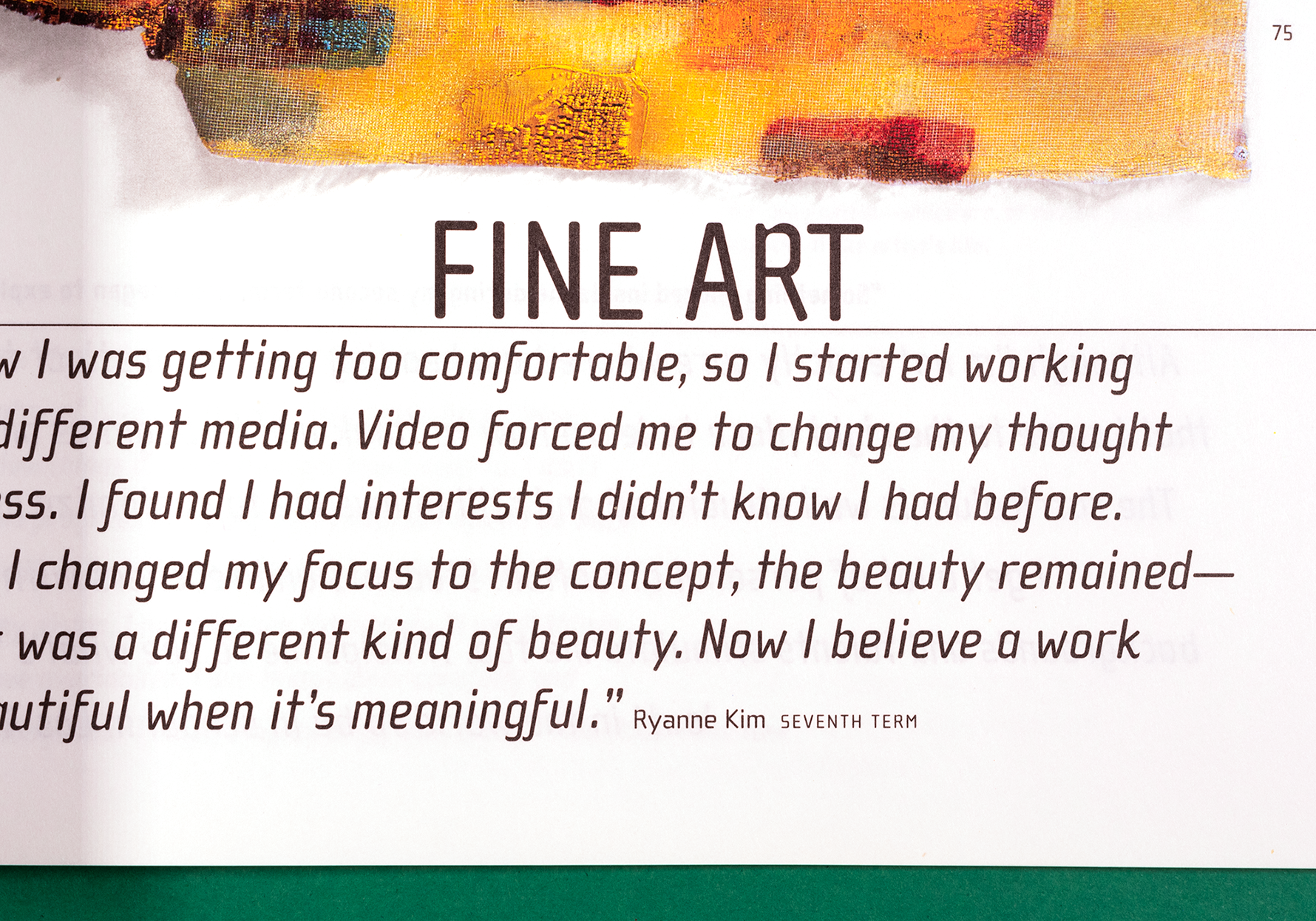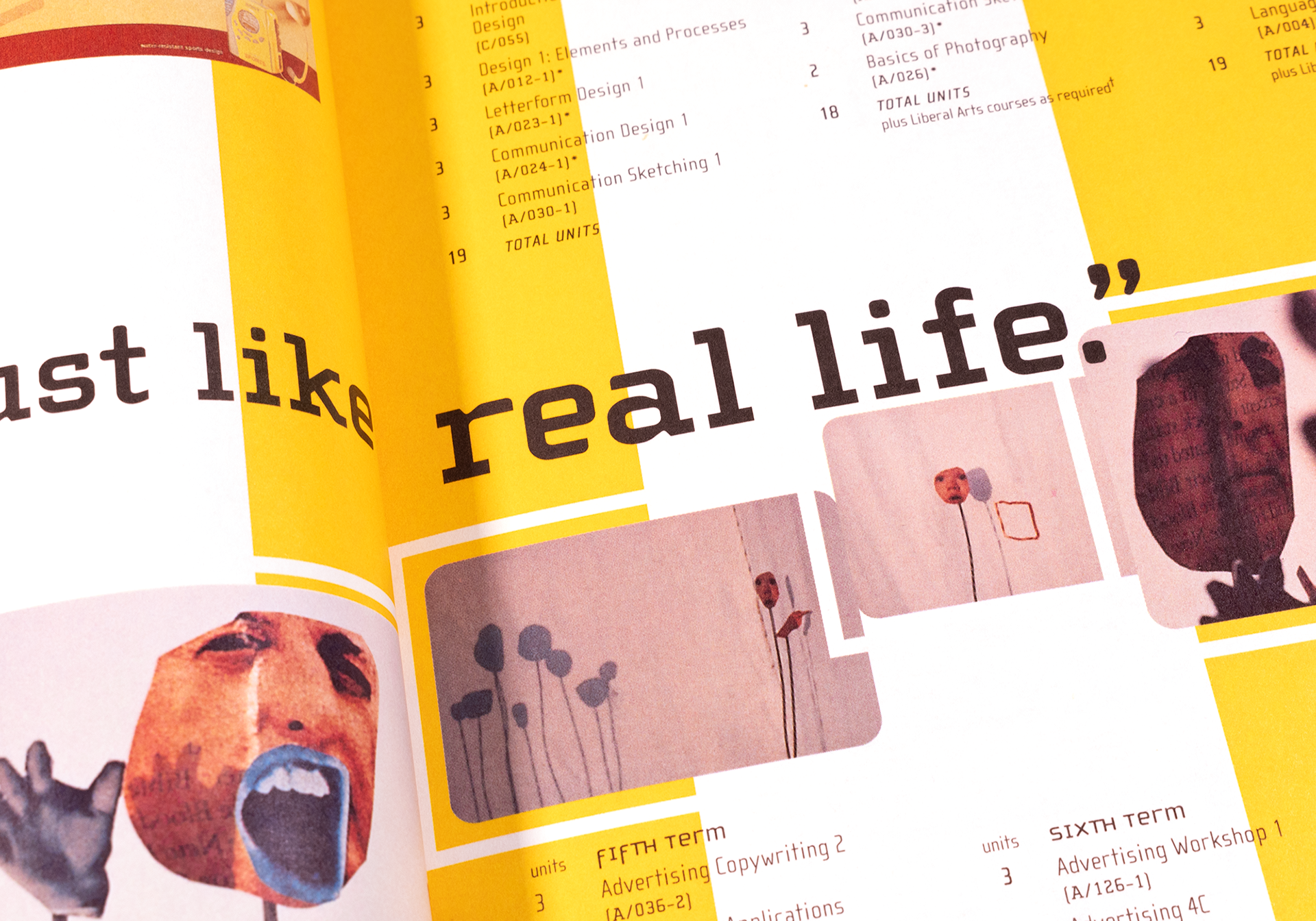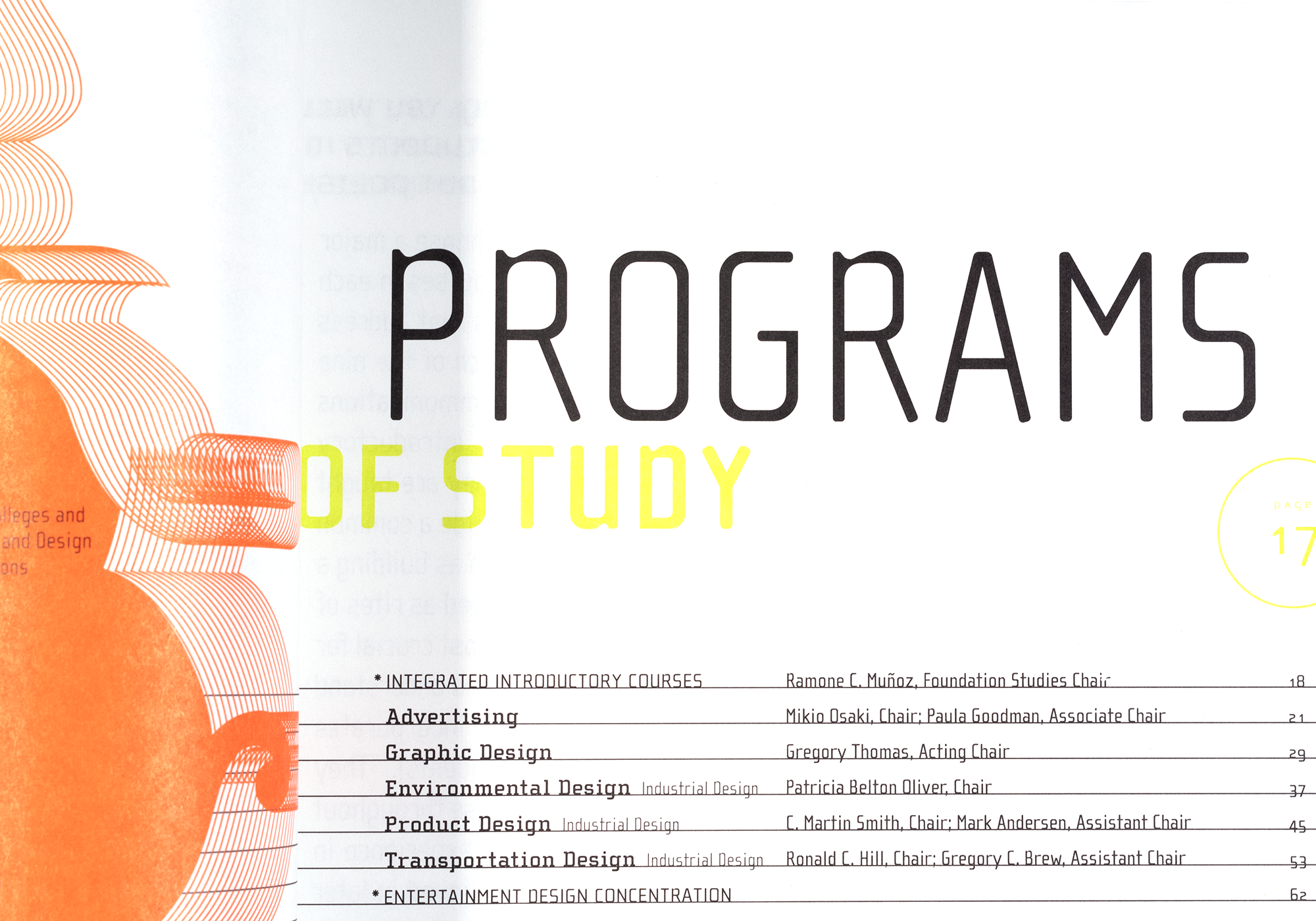 Formally the individual styles have slightly varying personalities with subtly distinct ideas applied, but all weights share a tapered curve marked out as, for example, in the lowercase a’s bottom transition from the stem into the bowl as their unifying detail. The Cholla family was first used in the radically designed 1999/2000 Art Center catalog, which won a honorable mention in I.D. magazine and was featured in EYE, 31. Cholla’s original weight range as designed for ACCD included 12 different styles.
