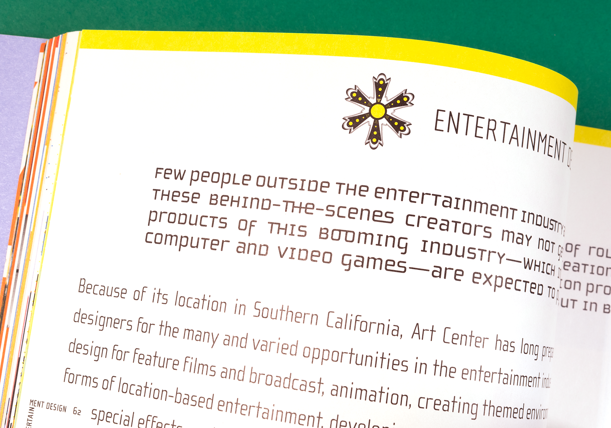 The Cholla typeface family was designed in 1998–99 by Sibylle Hagmann and named after a species of cactus indigenous to the Mojave Desert. Cholla was originally developed for Art Center College of Design in Pasadena, California. Denise Gonzales Crisp, then art director of the college’s design office, collaborated with Sibylle Hagmann to design a family of typefaces that would include a vast variation of font weights. This diversity of styles was applied to echo the institution’s different areas of study, yet the typefaces were to exhibit a unified feel.