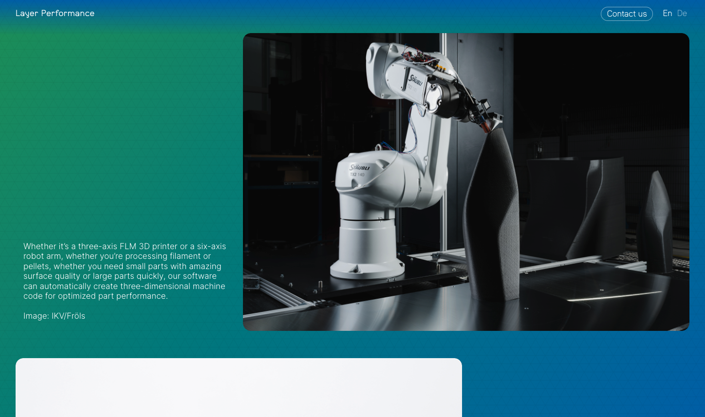 Layer Performance landing page Contributed by Jonas Pelzer on Oct 27th, 2022. Artwork published in October 2022. Source: layerperformance.com License: All Rights Reserved. Layer Performance is an upcoming startup for high-performance additive manufacturing. The landing page combines Scope with Inter. Source: layerperformance.com License: All Rights Reserved. Source: layerperformance.com License: All Rights Reserved. Source: layerperformance.com License: All Rights Reserved. Typefaces More about ScopeGet ScopeMore about InterGet Inter Formats Web (5565) Topics Product (2082) Technology (1469) Industrial Design (583) Designers/Agencies Jonas Pelzer (7) Tagged with3D printing (6)additive manufacturing (1)reversed type (3335)gradients (834)startups (242)manufacturing (35)parallax scrolling (28)green and blue (134)uses by the typeface’s designer (1249)type in a cartouche (209)round corners (284) Artwork location Germany (3833) Aachen (13) Post a comment Name Email – will not be published Website Your response Submit Comment More Scope in use Digital Mustardc. 2022Digital MustardContributed by Jonas Pelzer The Future Simulator2024Stefan KainbacherStudio FreudeContributed by Jonas Pelzer X Museum 2020–20212022Related DepartmentContributed by Jonas Pelzer Sponsor More in Product Waka Waka, The Full Collection2020Ben MingoAbraham CampilloContributed by Ben Mingo Gradius video gamesc. 1985unknownKonamiContributed by Maximillian Limpo Underwood typewriter ad1920Photo(s) by dr. shordzi on Flickr. Braun ET 55 pocket calculator1981Dieter RamsBraunDietrich LubsContributed by Stephen Coles Staff Pick More in Web Amalia Boier branding and website2021Extract StudioContributed by Extract Studio re:publica 192019fertig designContributed by Florian Hardwig Staff Pick Sveriges Skolledare2023Oké DesignContributed by TypeType AMA Stay website2022MeteoritContributed by Kontour More Fonts In Use U.S.A. Surpasses All The Genocide Records! poster and fact sheet1966George MaciunasFluxusContributed by Stephen Coles Staff Pick German Stamps by Henning Wagenbreth2011Henning WagenbrethMichael KunterContributed by Florian Hardwig Blog Alfred J. Jordan, Inc. ad1948unknownContributed by Stephen Coles Staff Pick Shared Voices2012RISD MediaSkolos/WedellMicah BarretContributed by Indra Kupferschmid Staff Pick