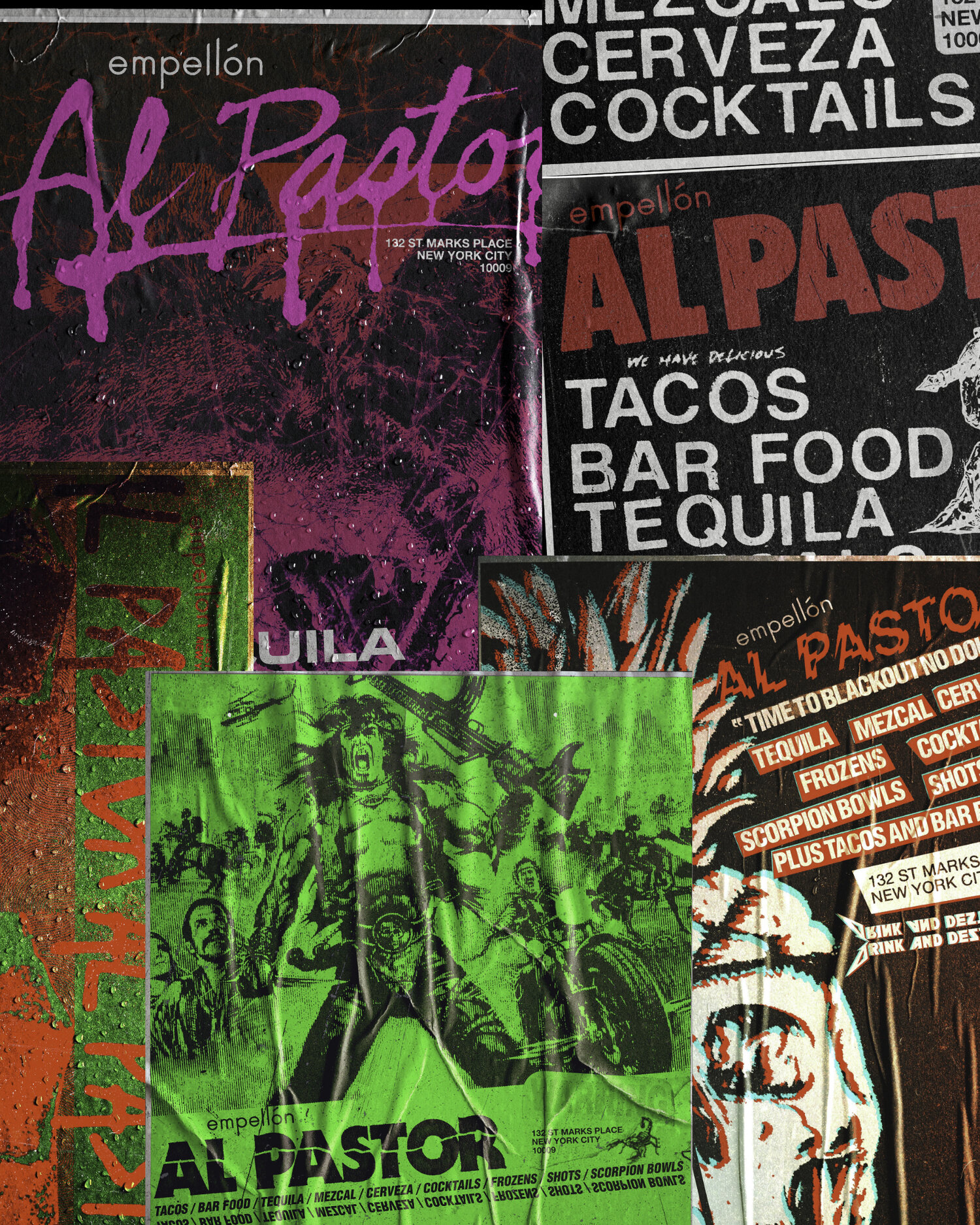 Empellon Al Pastor is a cool dive bar / restaurant concept located in the East Village neighborhood of Manhattan. I was tasked with creating a new logotype and a total rebrand of the business from the ground up. Given that Al Pastor is located in the former epicenter of punk rock music in New York City (right on St. Mark’s Place across from Tompkins Square Park) I chose to deliver a concept that focused on the raw and edgy aesthetic of punk rock typography, zines and fliers. I created a 26 page digital deck offering up my vision as well as an assortment of logotype treatments and visual examples.