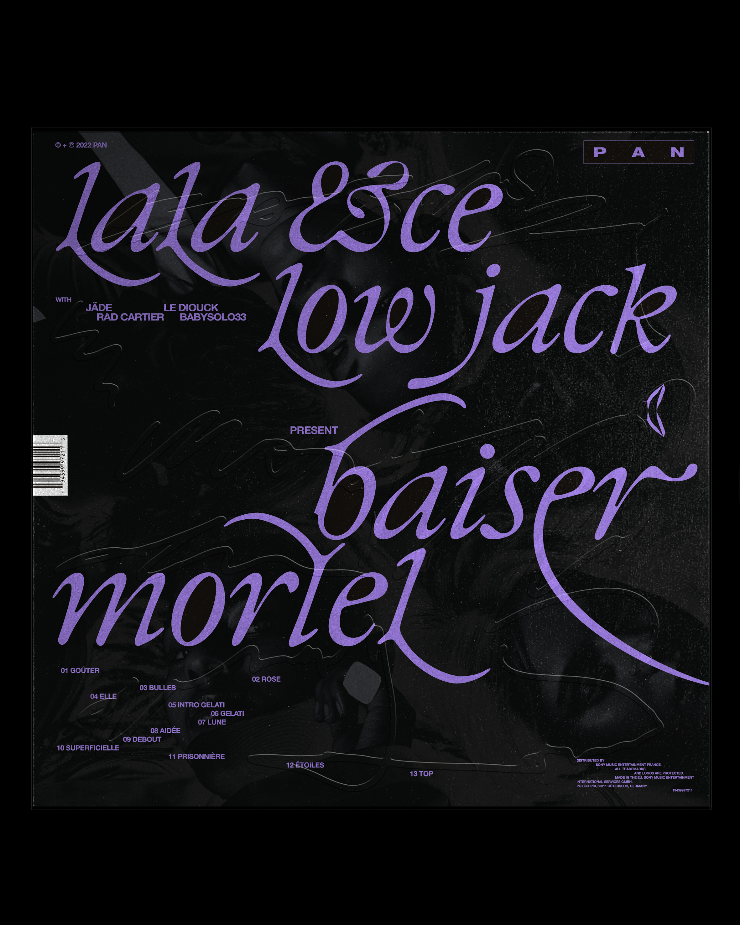 A sonic representation of the musical’s themes, Baiser Mortel the album – produced by Low Jack and written by Lala &ce with artwork by Pierre Debusschere – moves through the distorted strings of its opening track, 'Goûter’ and gathers sonic and lyrical intensity on each successive song. 'Lune,' the melancholically autotuned midpoint of the album, marks the beginning of the musical’s second act and sets the tone for its tragic resolution. Mechanical sounds mix with sonic influences spanning the Global South throughout the album, honoring both Low Jack and Lala &ce’s musical heritage and influences, while developing a new musical lexicon that defies comparison.