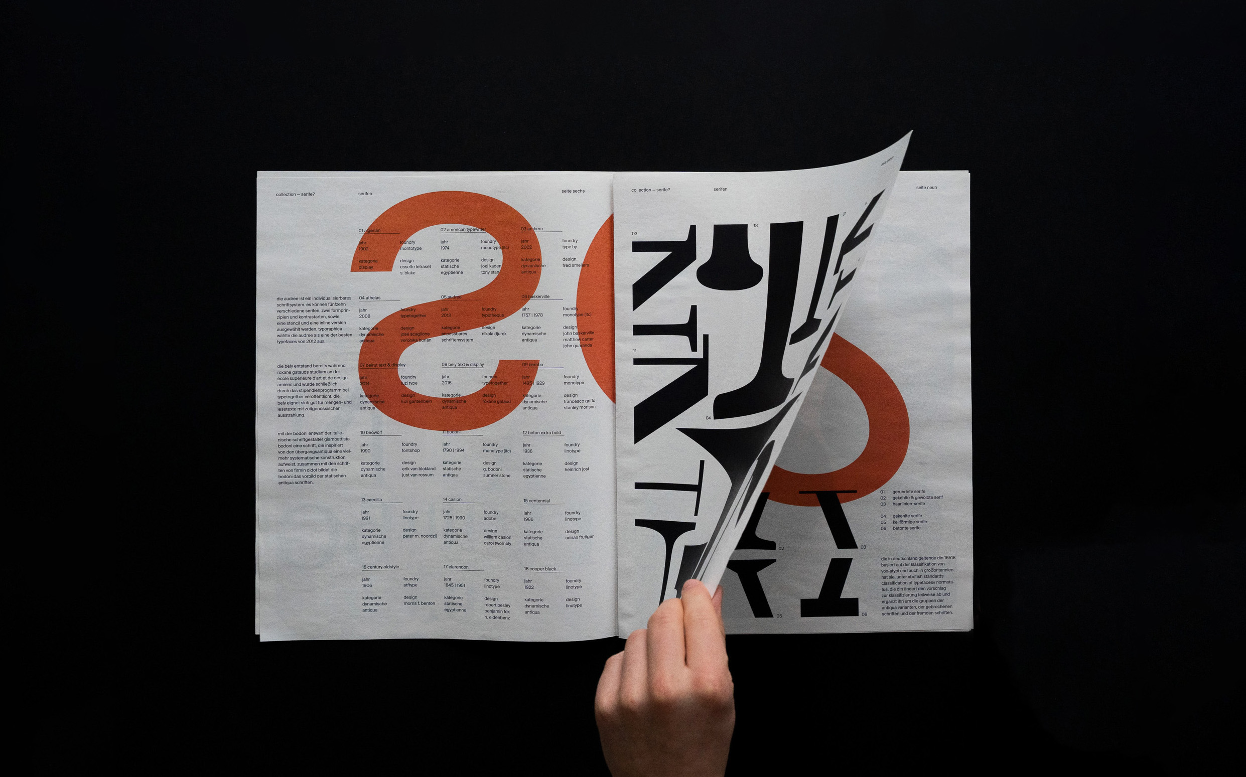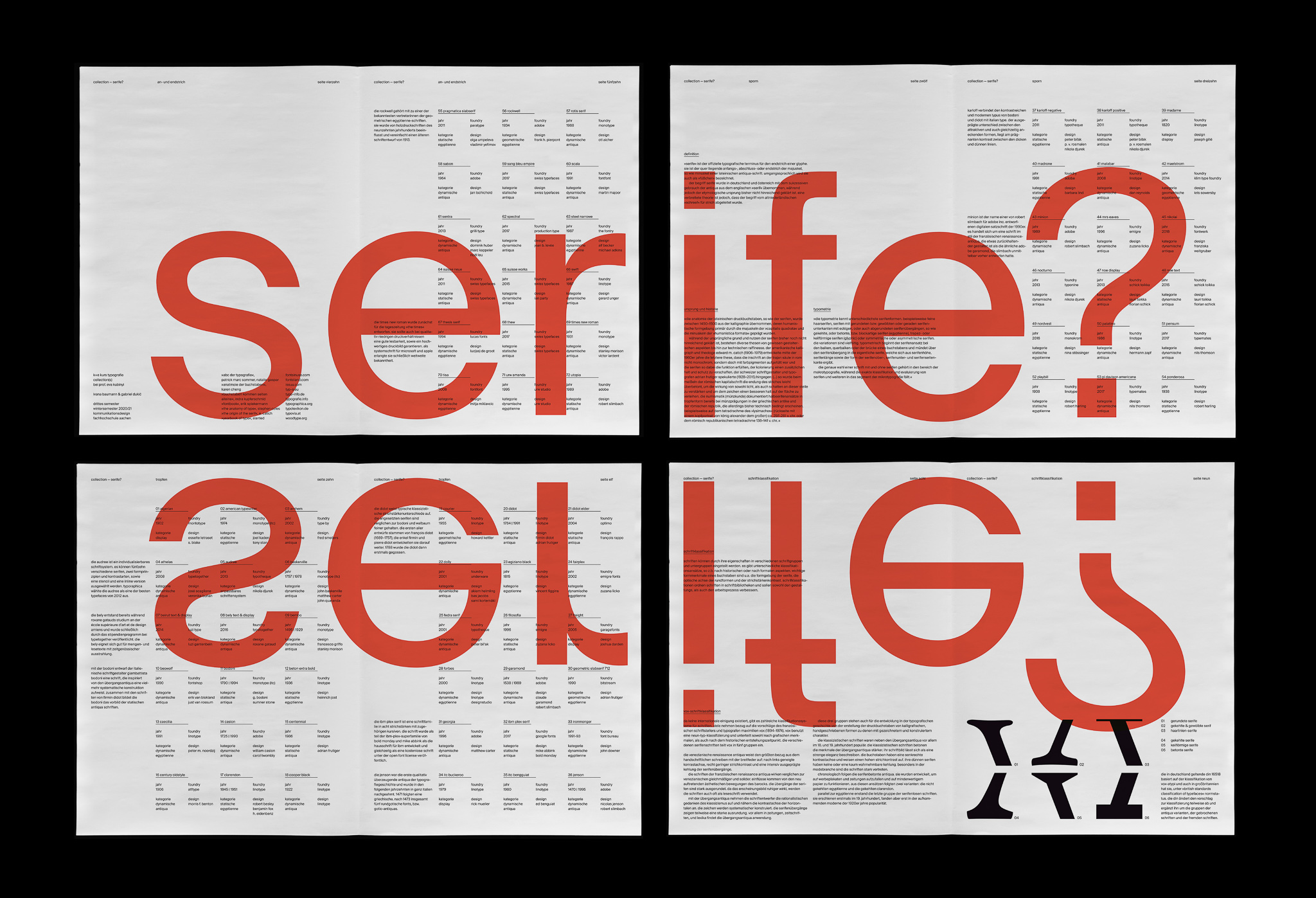 A serif, however, rarely comes alone (shoutout to Indra Kupferschmid), which is why other anatomical characteristics are also shown on the basis of 72 different typefaces. The contrast between Swiss design and the focus on serifs creates another level that is reflected in the poster, which consists of the total four printed sheets.