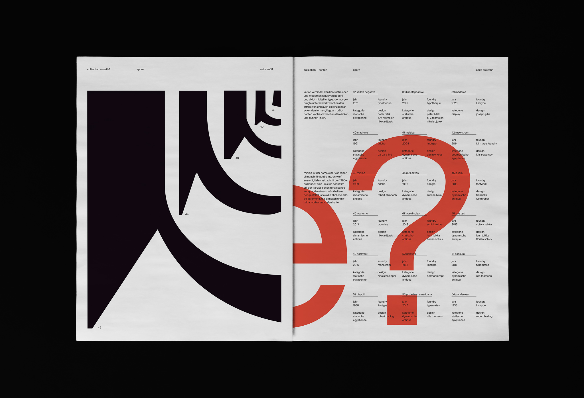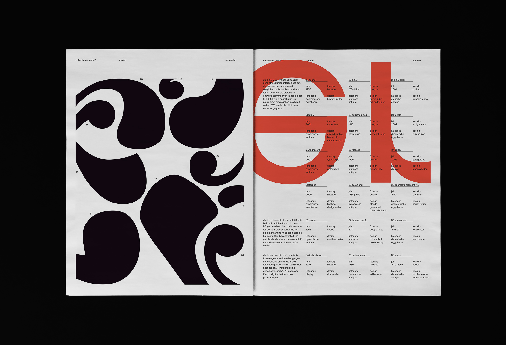 The publication Collection – Serife? is intended to initiate the learning process through recognition, to make the anatomy of the Roman letter more accessible and show the wide range of variation. From static serif to geometric Egyptienne—as different as they all look, they share one important component: the serif.