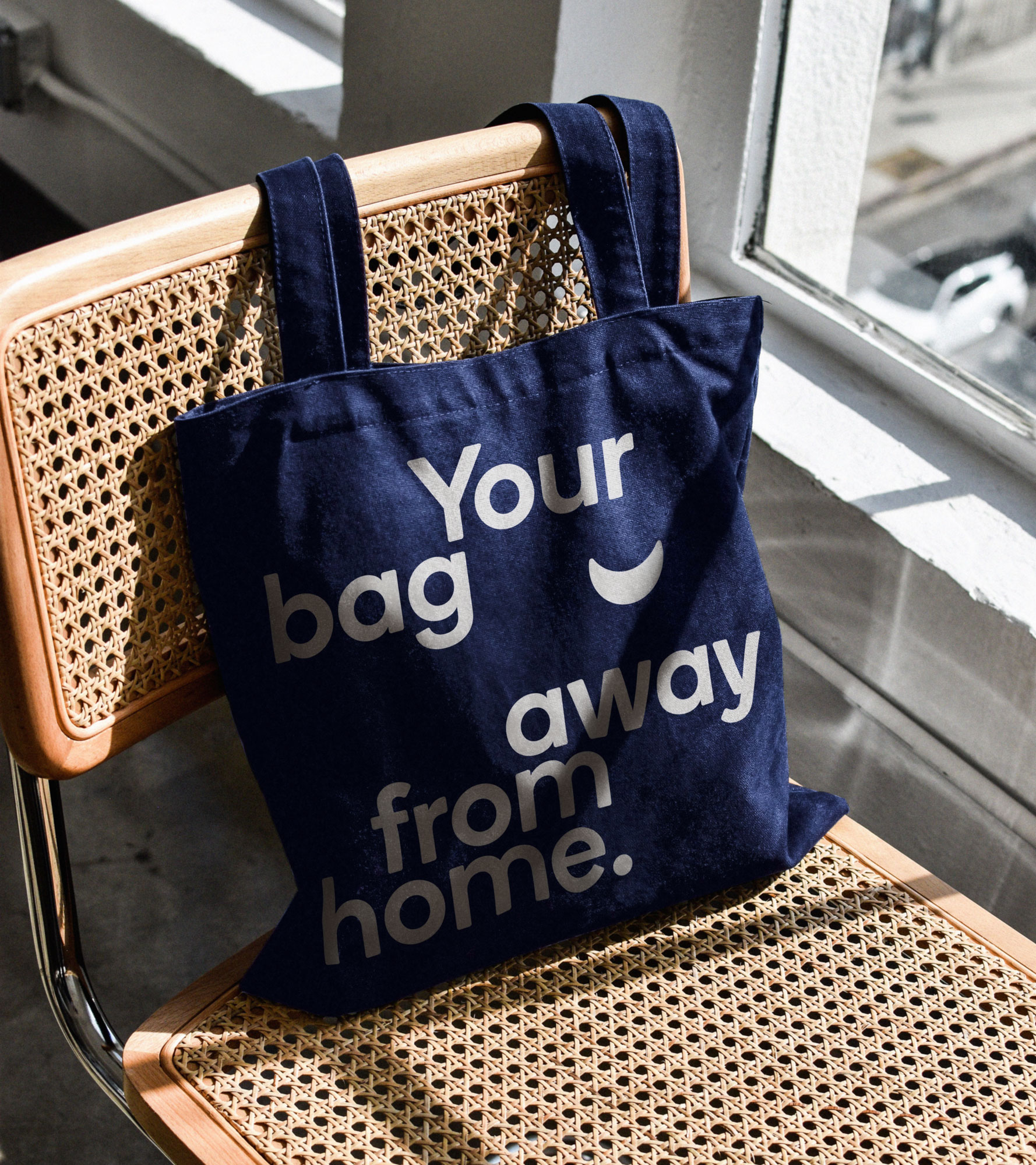 The symbol is a bold, simple crescent moon flipped over to become a smile, hinting at the joys of a stay with Overmoon. The supporting wordmark uses Boing by A2 Type, a sans serif face with subtle rounded corners, mirroring the roundedness of the symbol and giving the brand a soft, friendly feel.