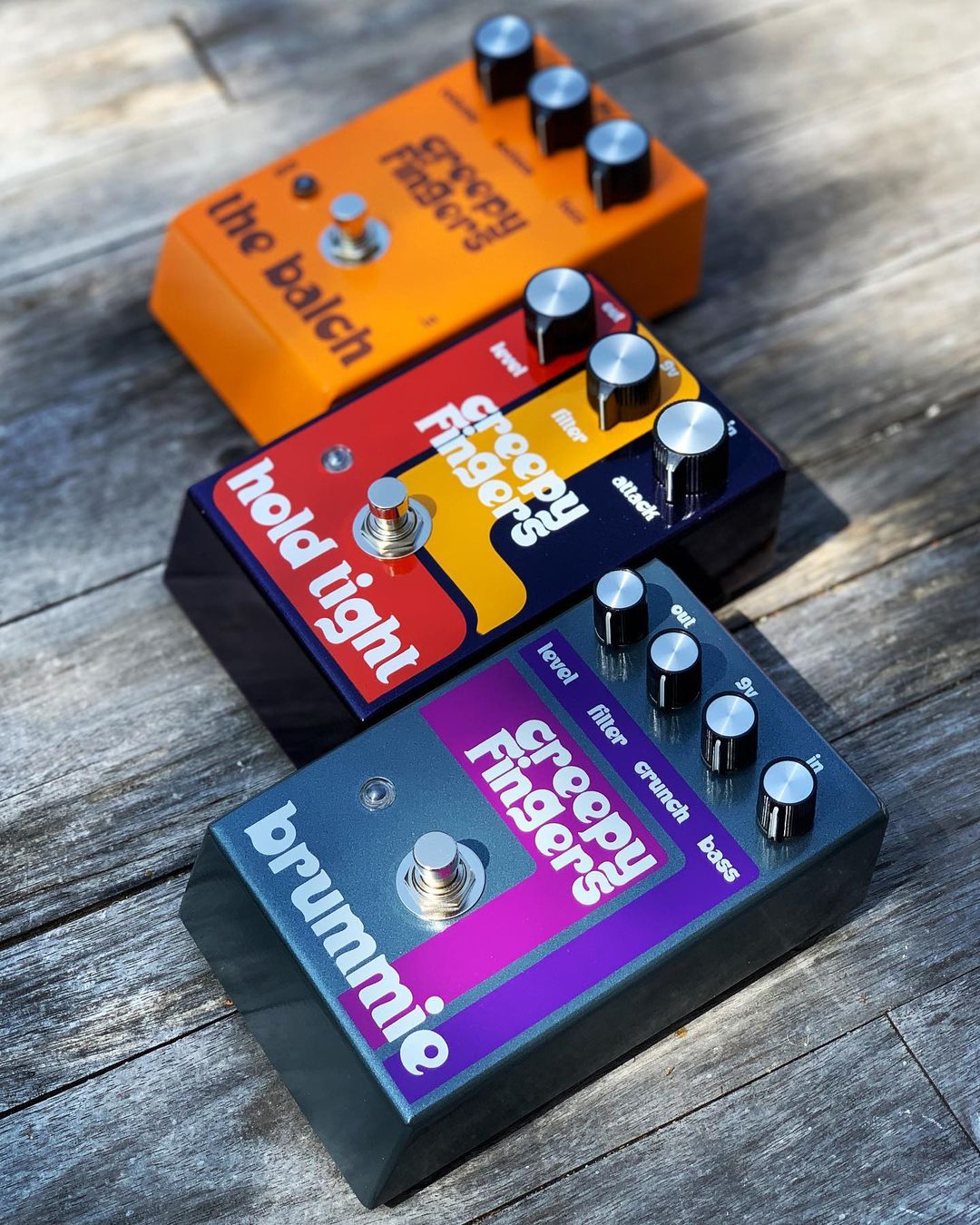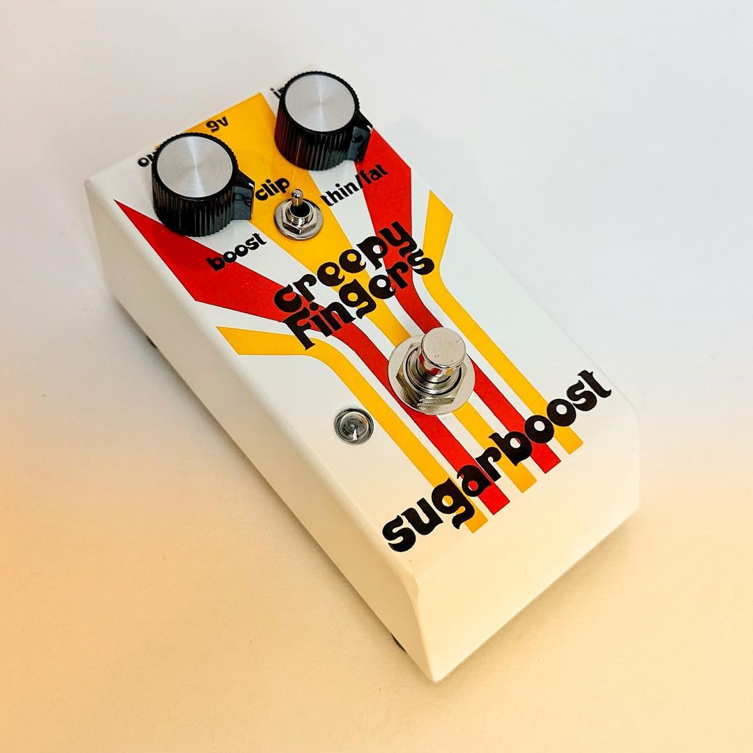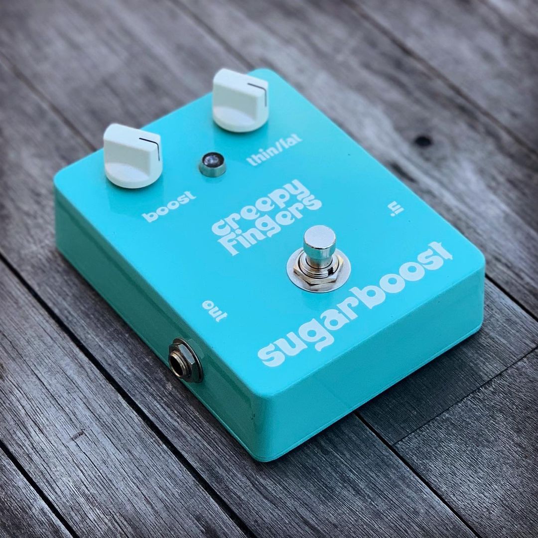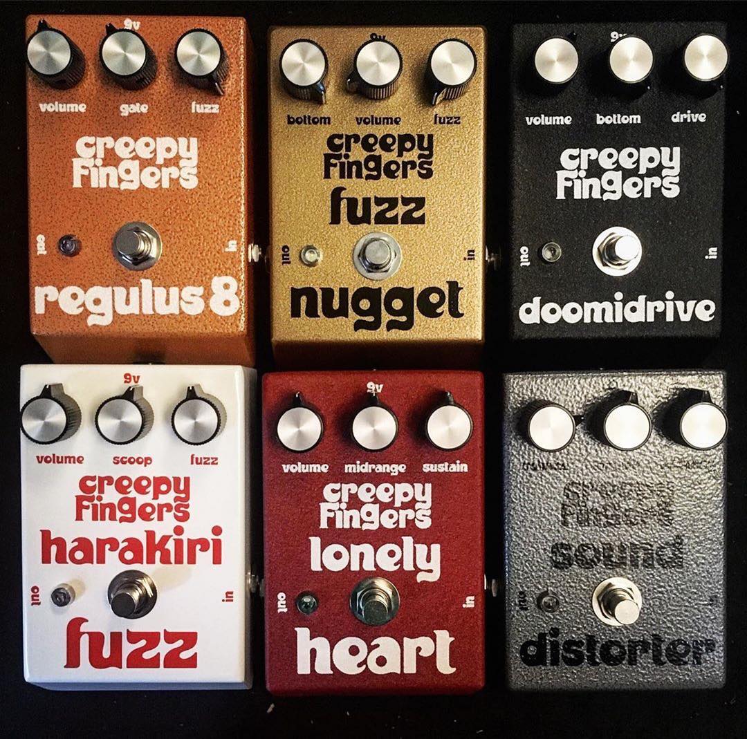 Brad Davis is the bass player of Californian stoner rock band Fu Manchu. He’s also the guy behind Creepy Fingers, a brand of fuzz pedals. After selling the first Sugarboosts to friends in 2007, he officially founded Creepy Fingers Effects in 2008. In a 2011 interview with FXDB, Davis says that his friend Emily Burton from Fireball Ministry suggested the name and also designed the logo.