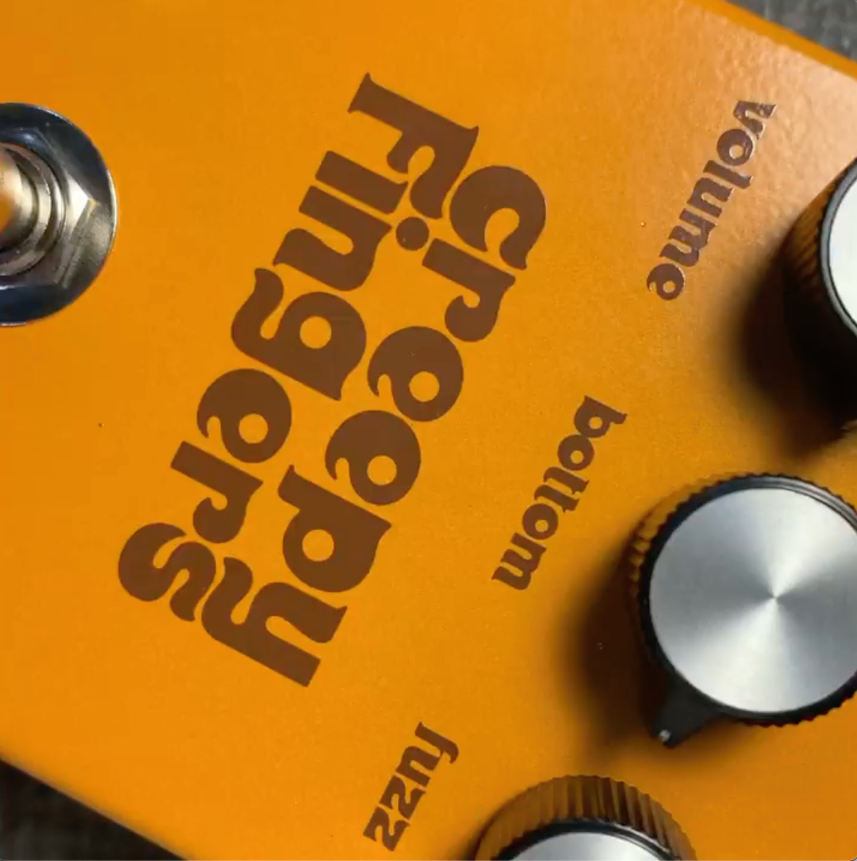 For fifteen years now, Davis has been using the font with admirable consistency. Cyberspace adorns virtually all of his pedals, not only in the logo, but also for the individual names and the labels. All pedals are built by Davis himself – handwired, with powdercoated and silkscreened enclosures: “I like the pedals to have a classic eye candy sort of look. Sometimes with a color theme that ties in with the name of the pedal.”