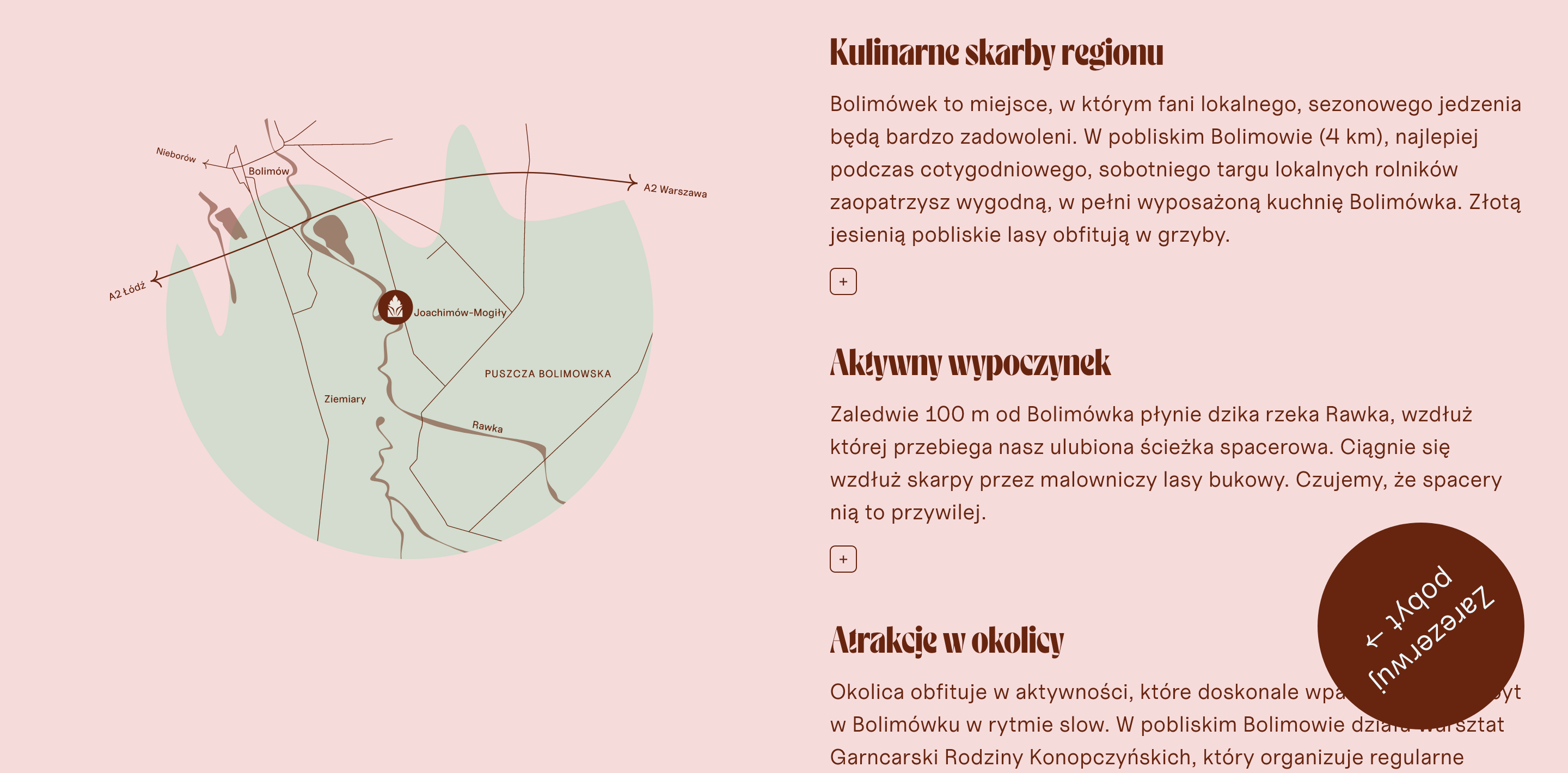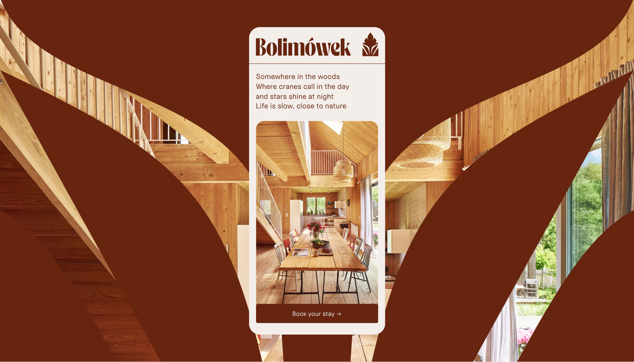 Bolimów Landscape Park retains its appeal as one of Poland’s most scenic places for a quick weekend getaway, a mere hour’s drive from the big smoke of Warsaw. Tapping into the calming ethos of rural life, Bolimówek is a cozy getaway cabin to soak up the great outdoors over a quick weekend staycation and long-term WFH rentals alike. For this commission, we’ve created branding and copywriting for the property’s website to translate its wholesome charm into the online sphere.