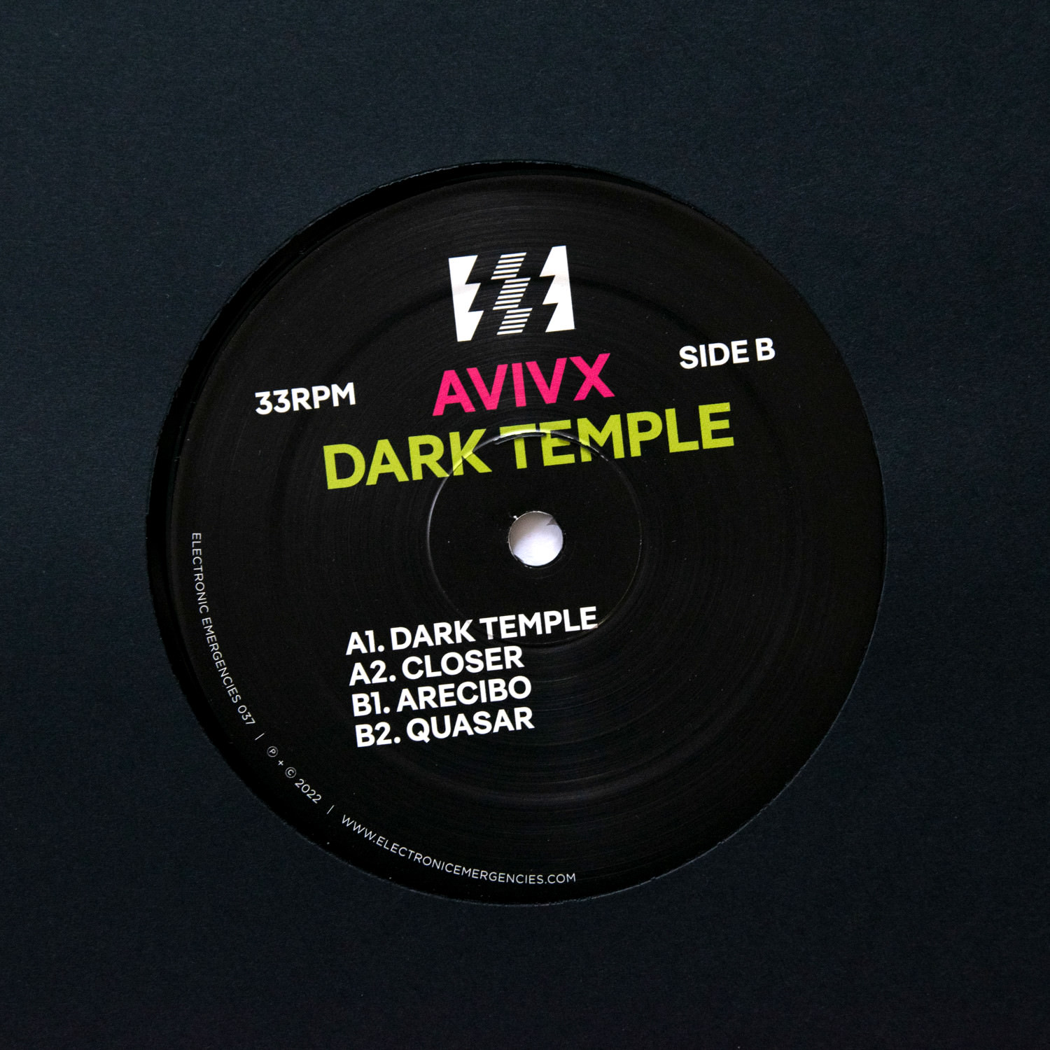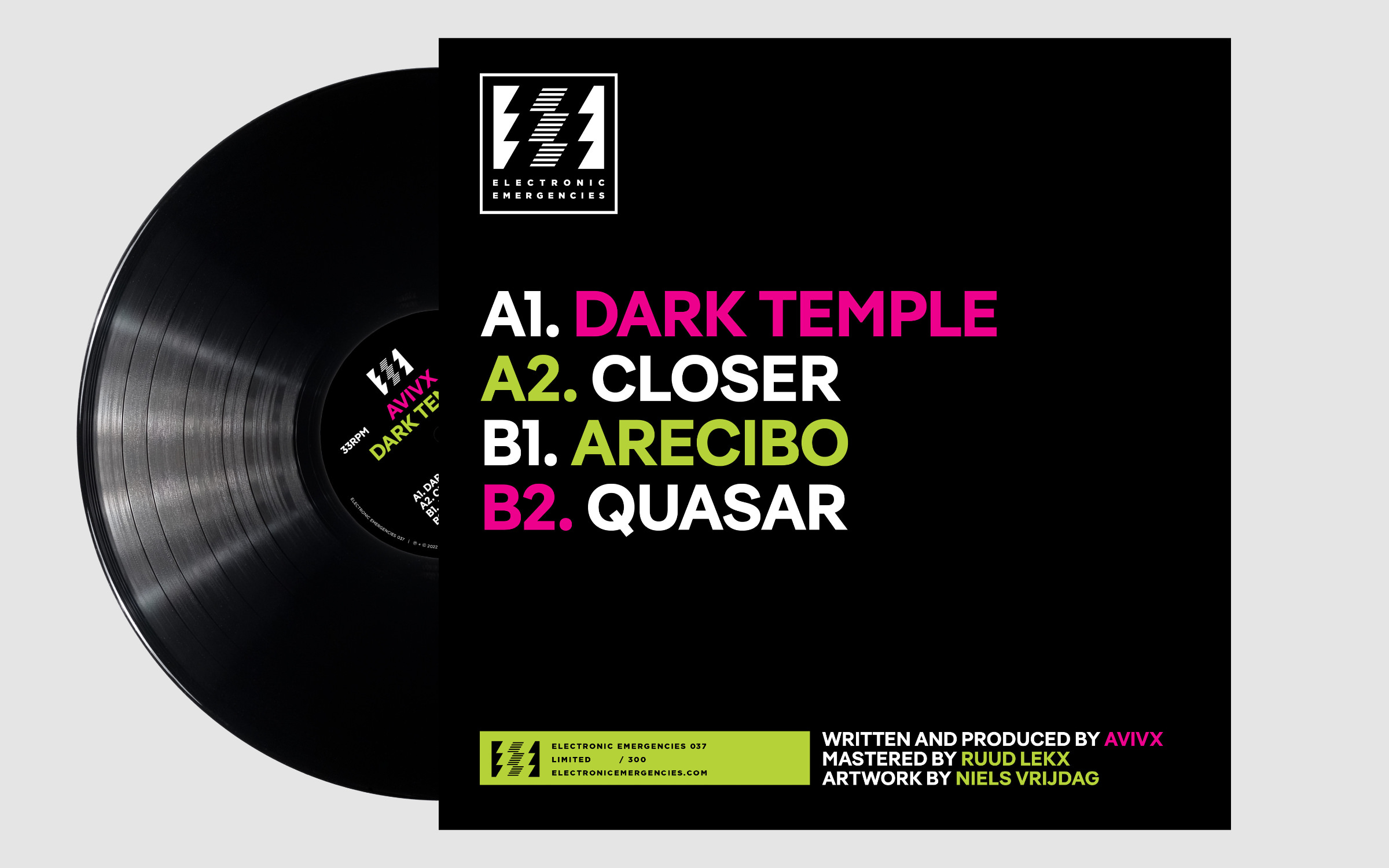 Written in capitals on a black background, the typography for the first AVIVX release was meant to counterbalance the music,