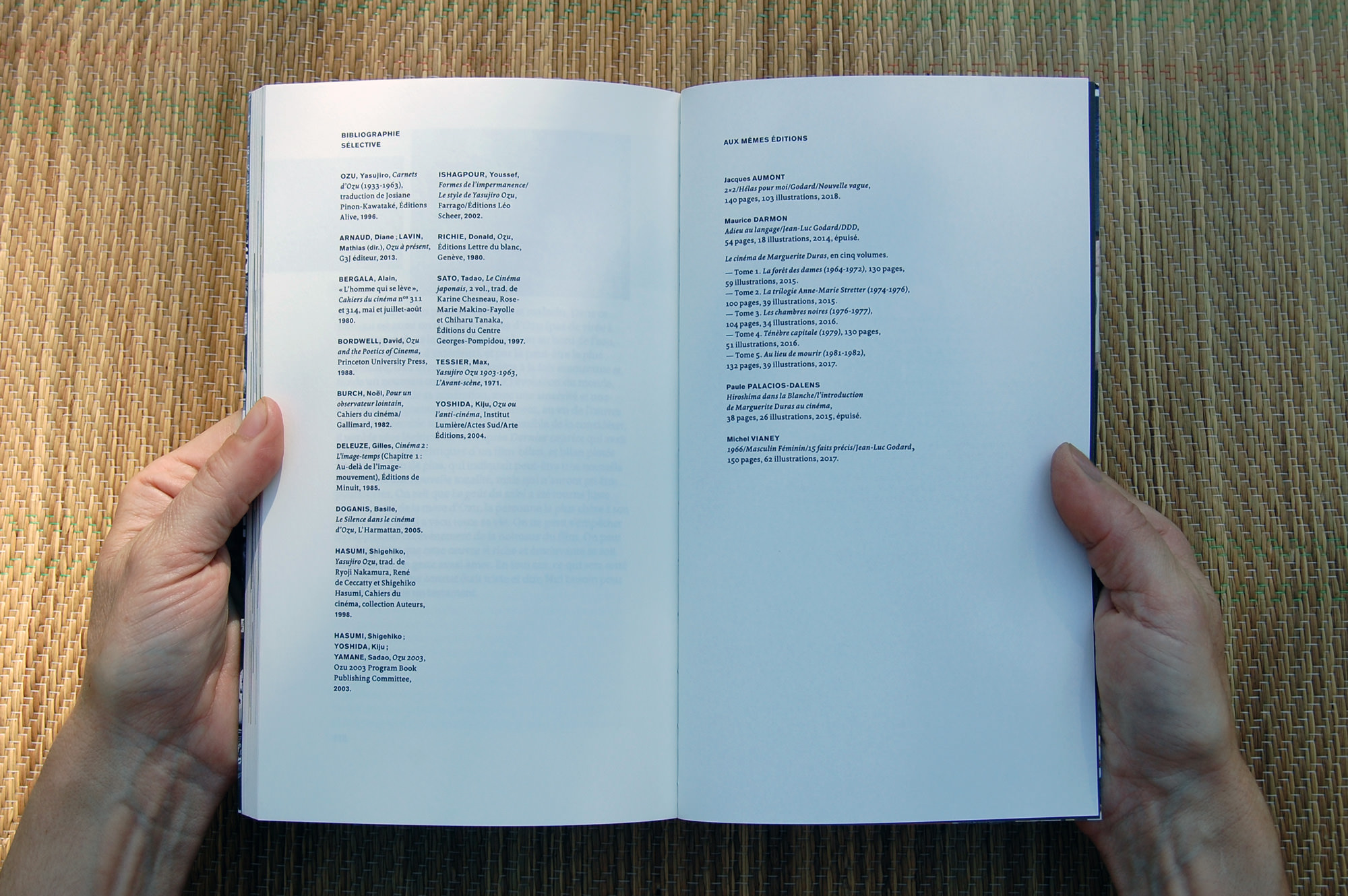 This beautiful book written by Jean-Michel Frodon deals with the work of the Japanese filmmaker Yazujiro Ozu. Treize Ozu. 1949/1962 was published in 2019 by 202 éditions, the Bordeaux-based independent boutique publisher of books on cinema. It was designed in Paris by Paule Palacios-Dalens. The typography is set in Borges for the main text and Borges Título Blanca for the section titles (both by Alejandro Lo Celso, PampaType) and Akzidenz-Grotesk (Berthold, 1898) for page numbers and other details.