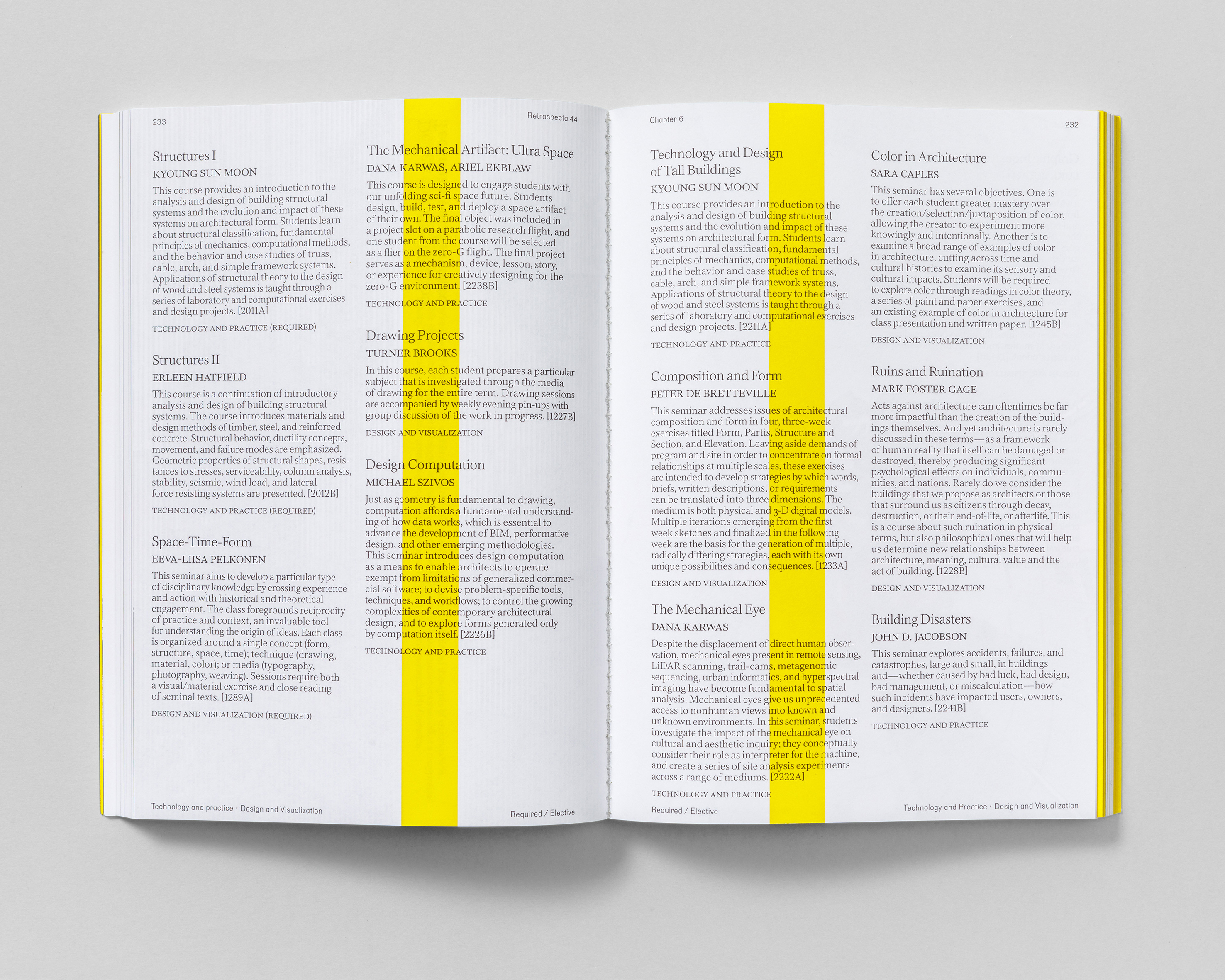 Beside Normal-Grotesk FSL (used with its alternative schoolbook a), mainly Lector FSL is used throughout the entire publication – for headlines as well as for the text. Volume 44 covers the activities of the 2020–21 academic year. It’s distributed by Actar D: