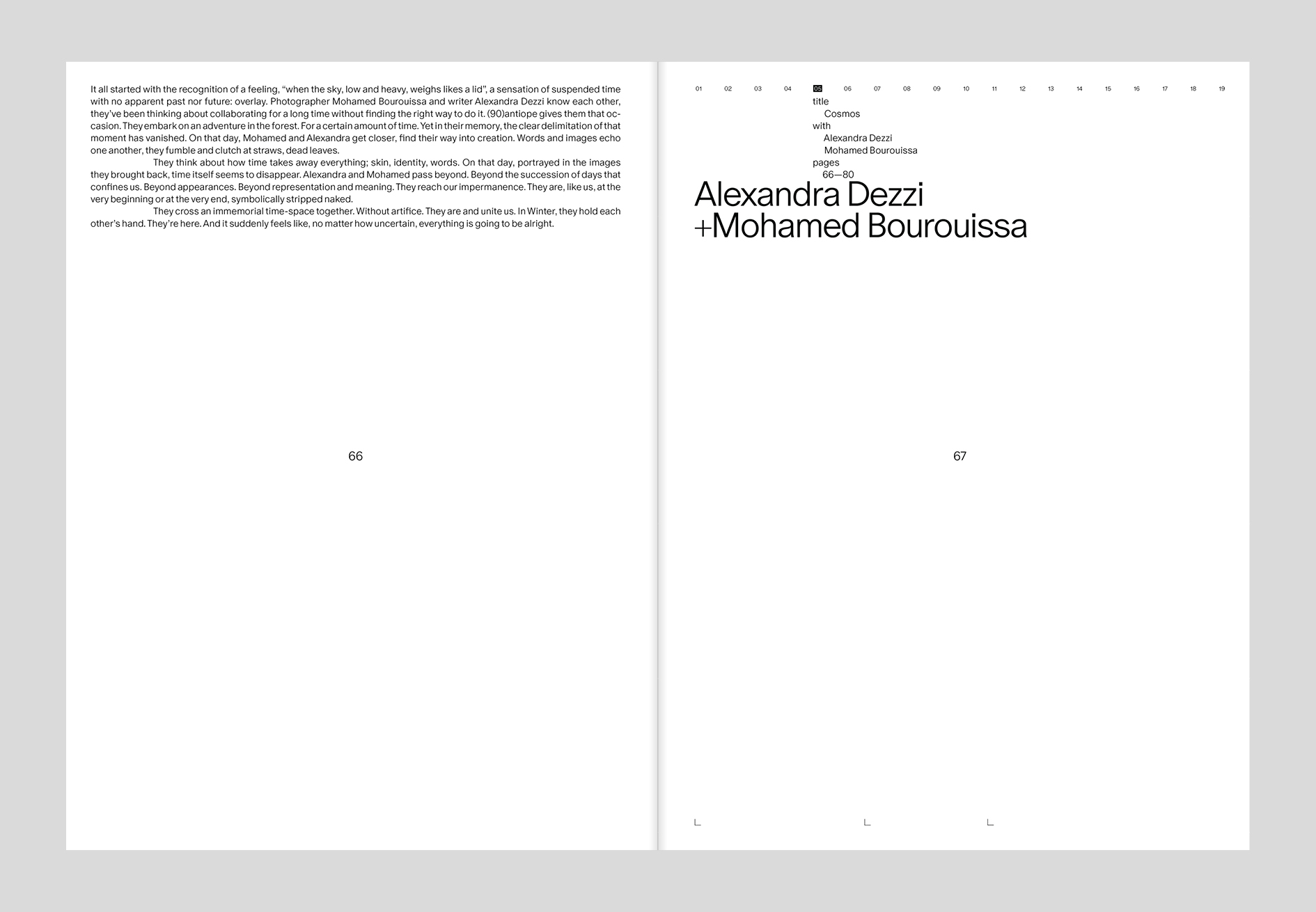 (90)antiope is an asteroid located between Mars and Jupiter. Its singularity is to be dyadic, in other words constituted by two intertwined bodies that revolve around a common center of gravity. This concept of duality is at the origin of the bi-annual magazine named after the asteroid, which we are proud to present to you, and which aims to generate unforeseen encounters.