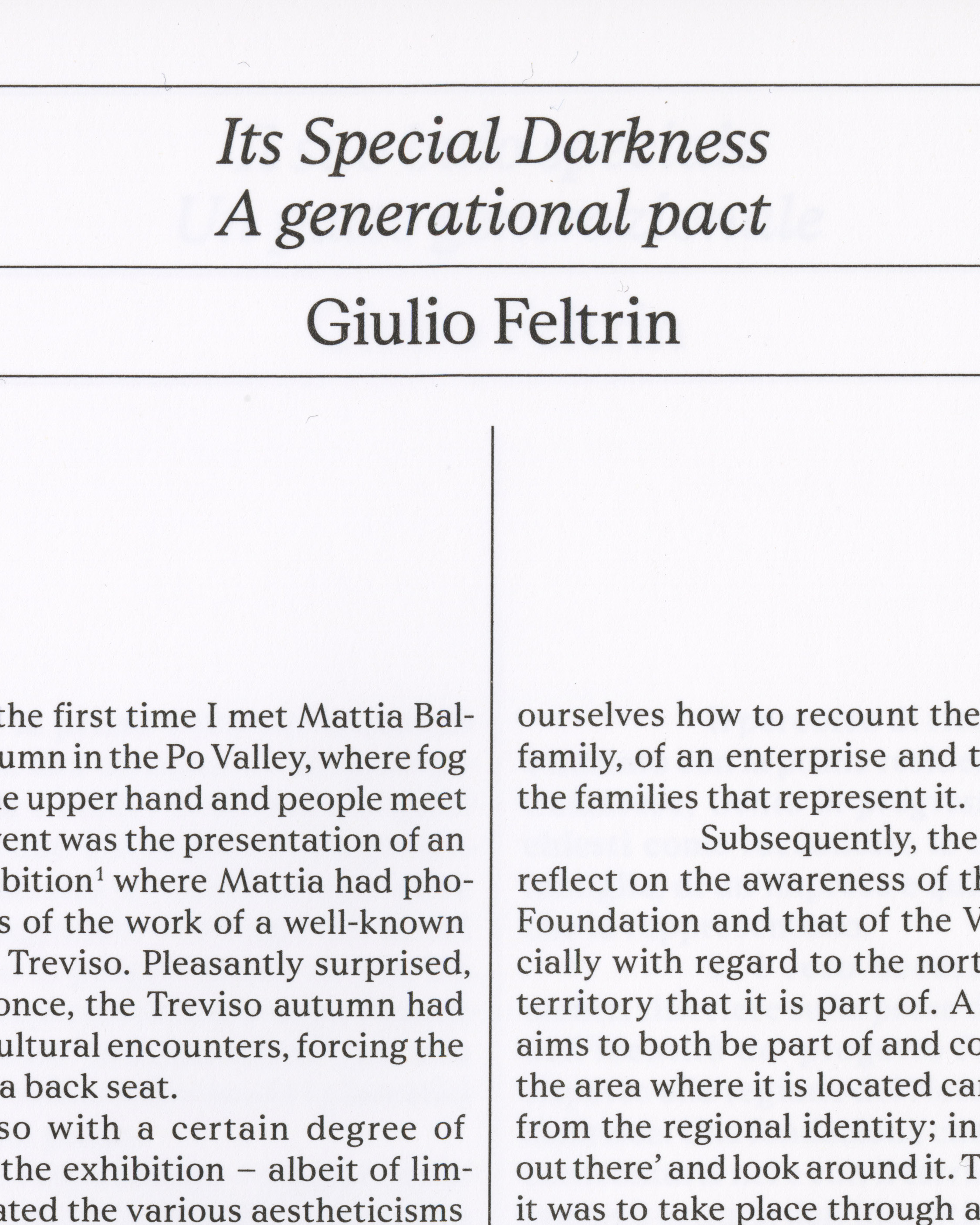 Rhetorik Serif by Sascha Bente in use by Federico Barbon for the photography and conversation book Il suo buio speciale (“Its Special Darkness”).