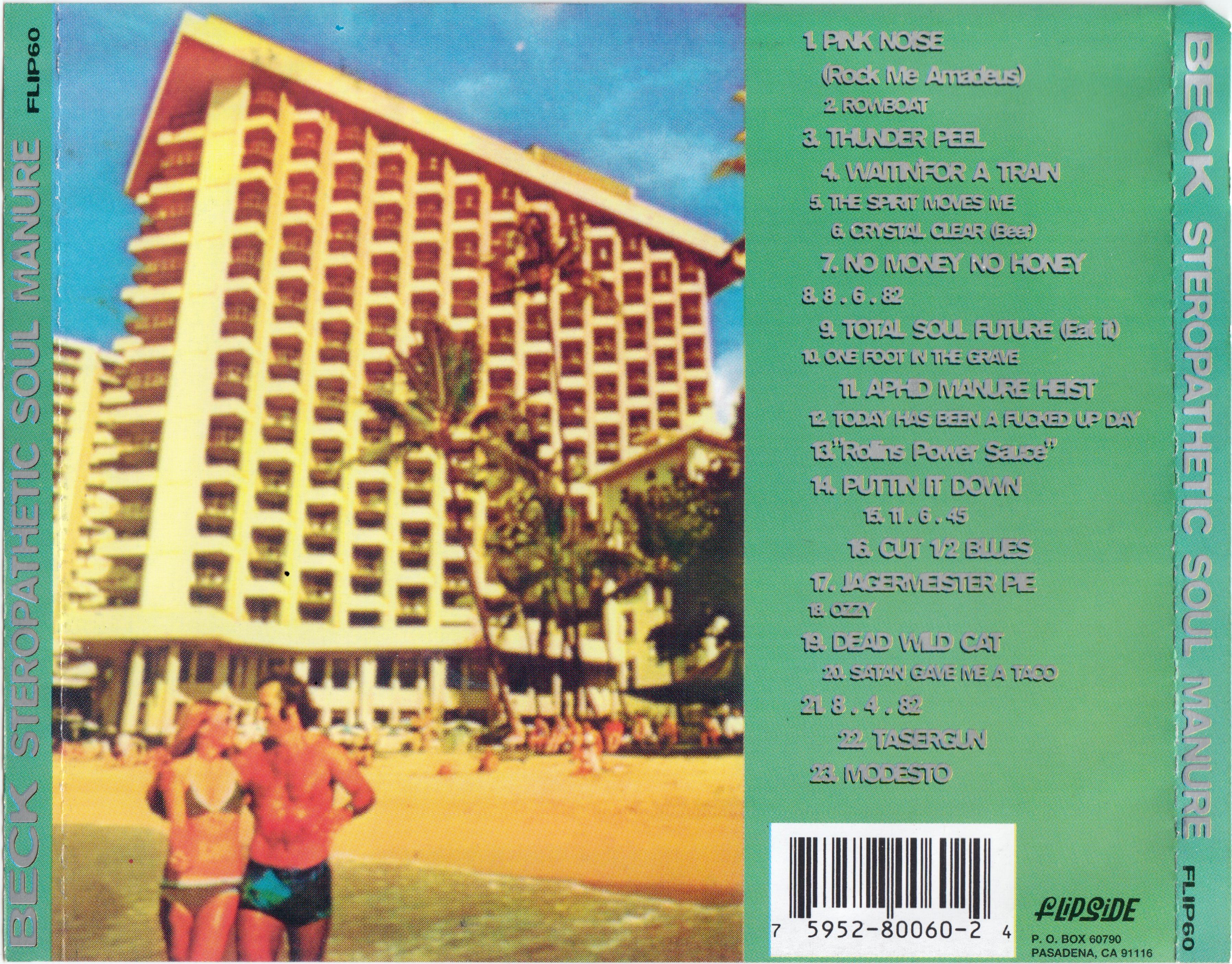 Released in 1994 by Flipside Records, just a week before the better-known Mellow Gold on the Geffen/DGC label, Beck’s second full-length LP Stereopathic Soulmanure was a compilation of early “lo-fi” rock recordings.
