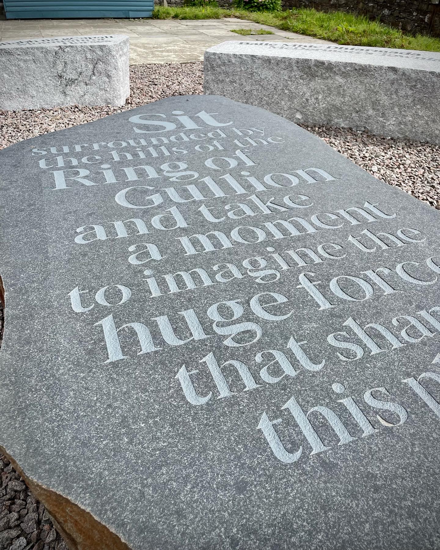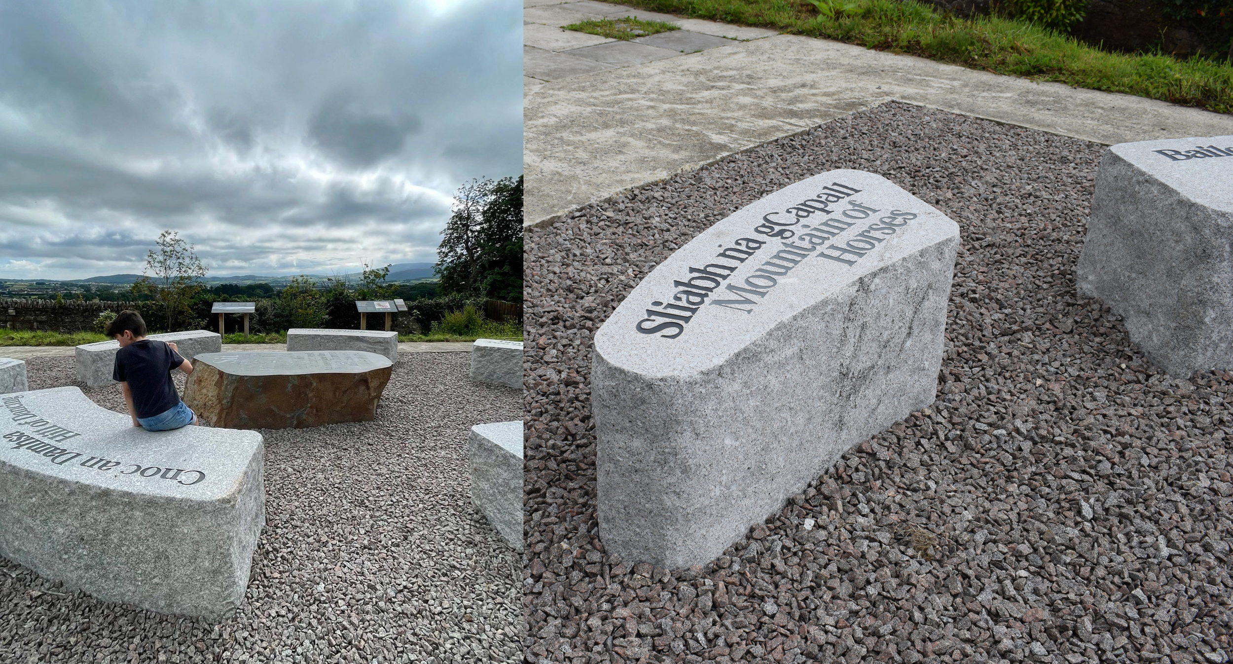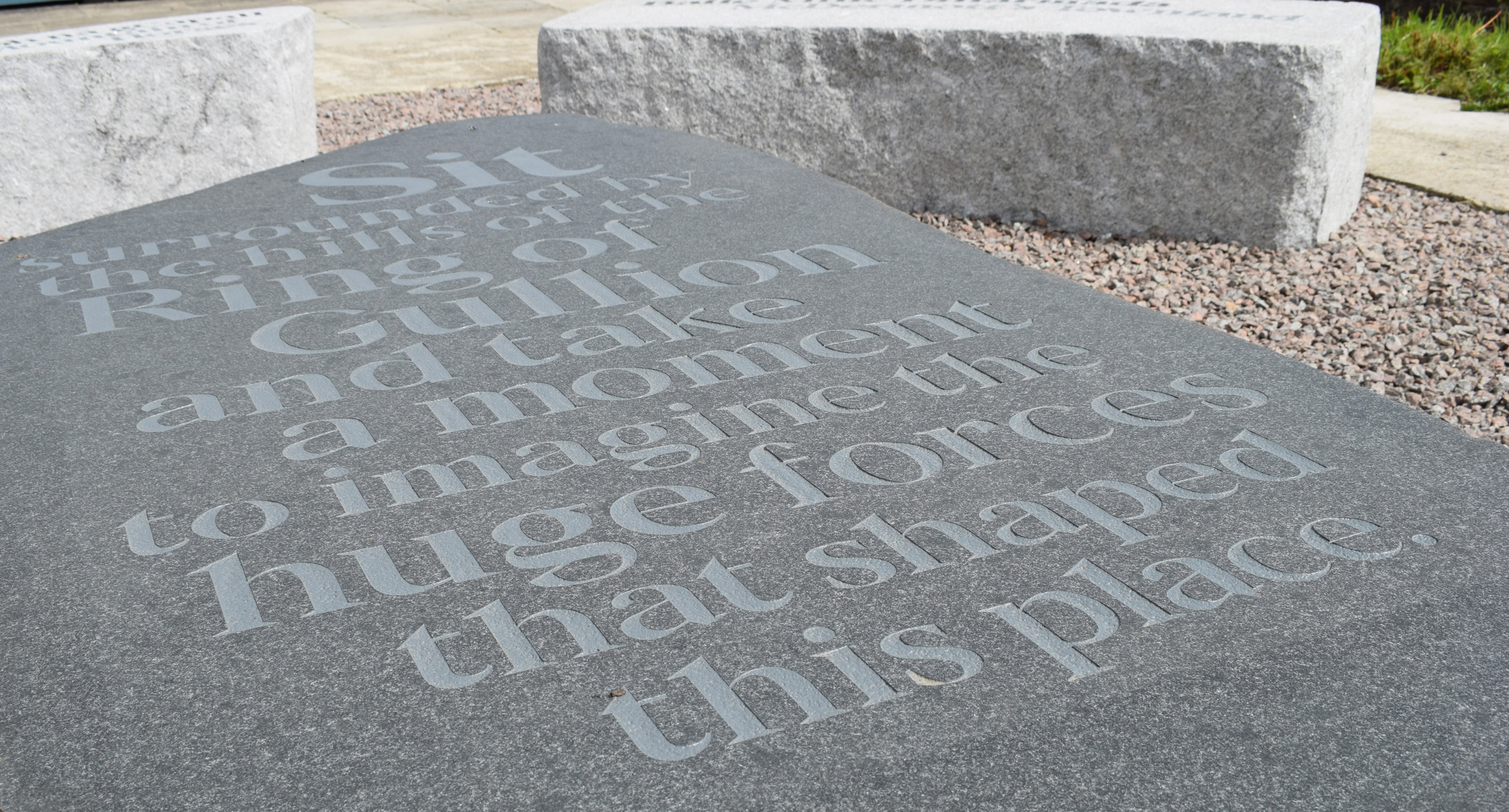 For one aspect of the overall project, we developed sculptural bench seating for visitors to enjoy the view of the stunning surrounding countryside. This was crafted to respond to the natural environment in material and shape. Historic names for the landscape were engraved into the stone, ensuring their namesakes would live on long after the storytellers were gone. Beautiful and functional, informative and imaginative, these benches would be an unique experience–not only could you admire the natural beauty, you could be grounded it in too.