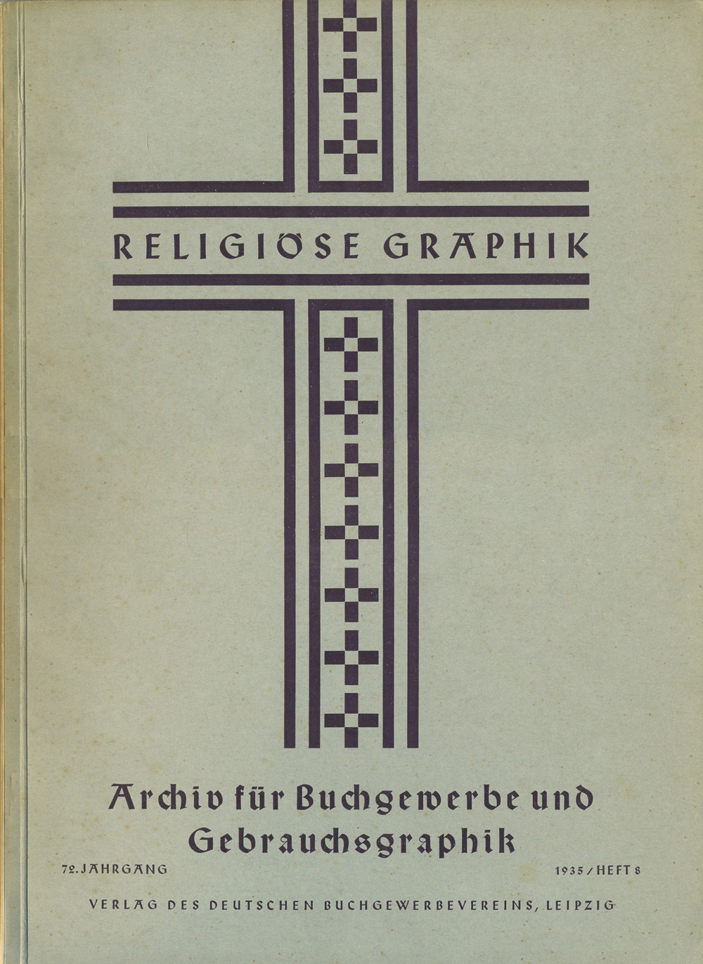 Cover for the an issue of the German trade journal Archiv für Buchgewerbe und Gebrauchsgraphik dedicated to religious graphics, published in summer 1935.