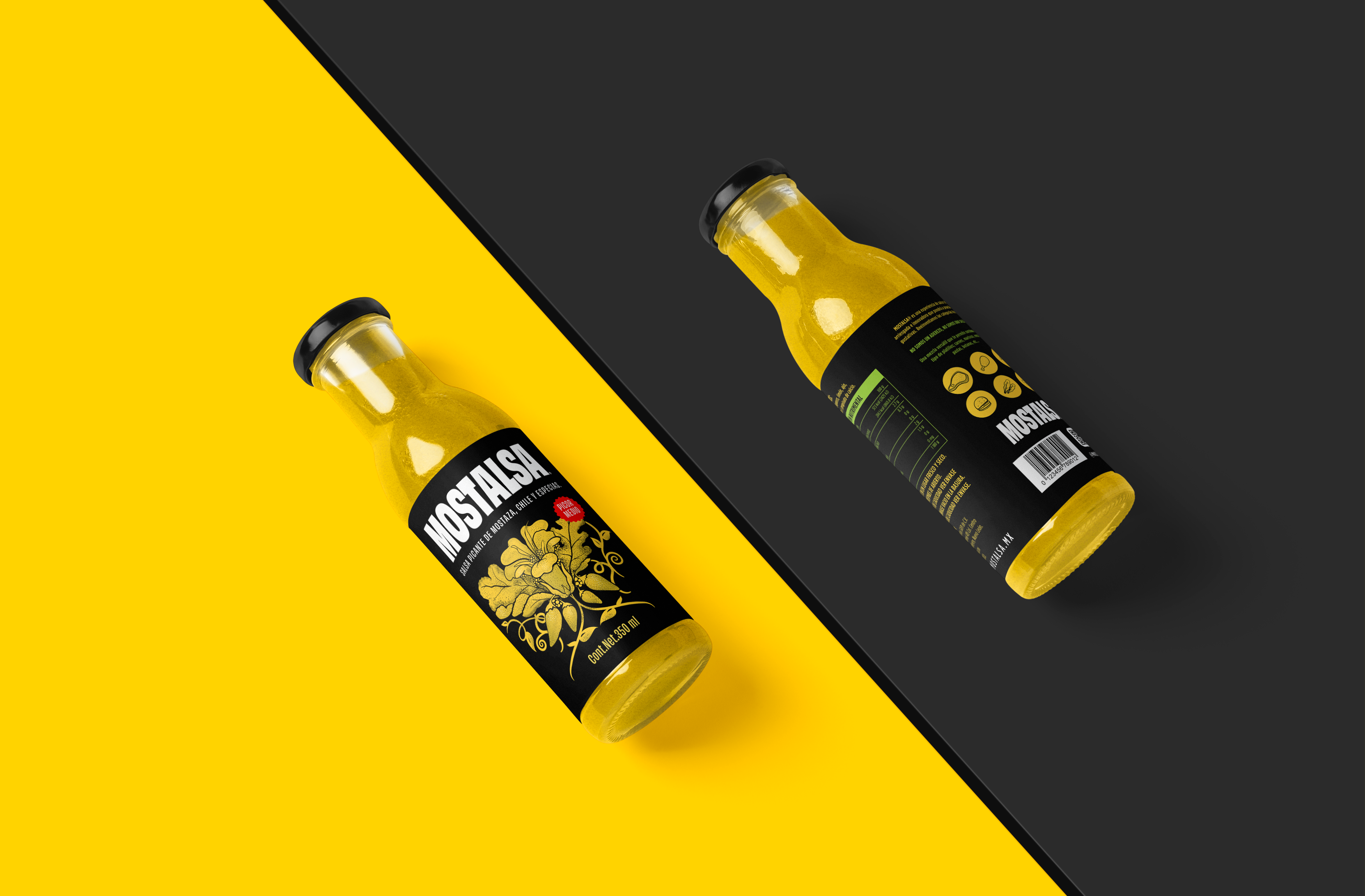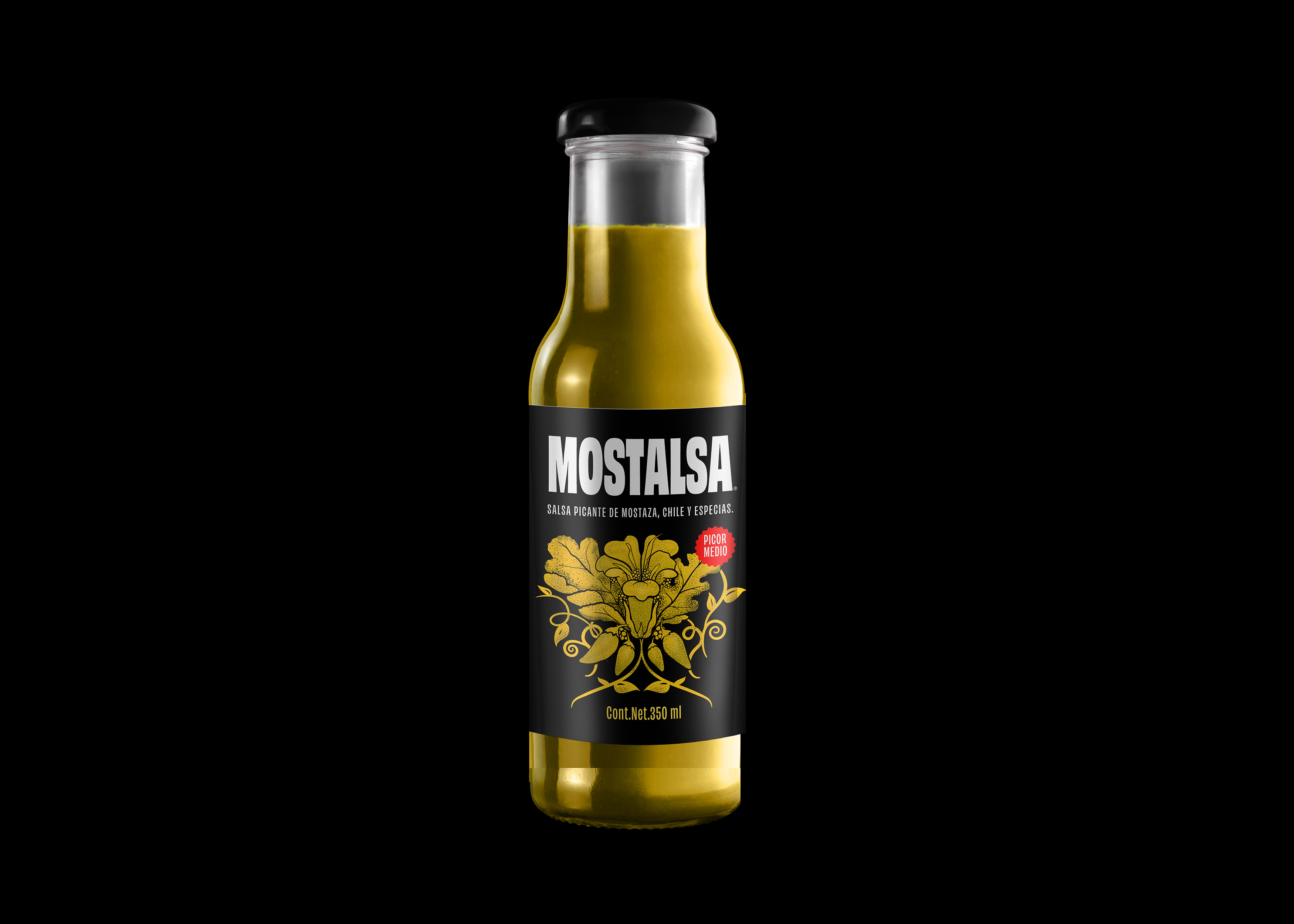 Mostalsa is a sauce made with mustard, chilies and spices. A mass consumption product to accompany snacks, marinate meats and serve as a dressing. The branding features the Japanese mustard and chili plant in a botanical illustration style, referencing Darwin’s books. For the typography, I used a couple of styles from Obviously.
