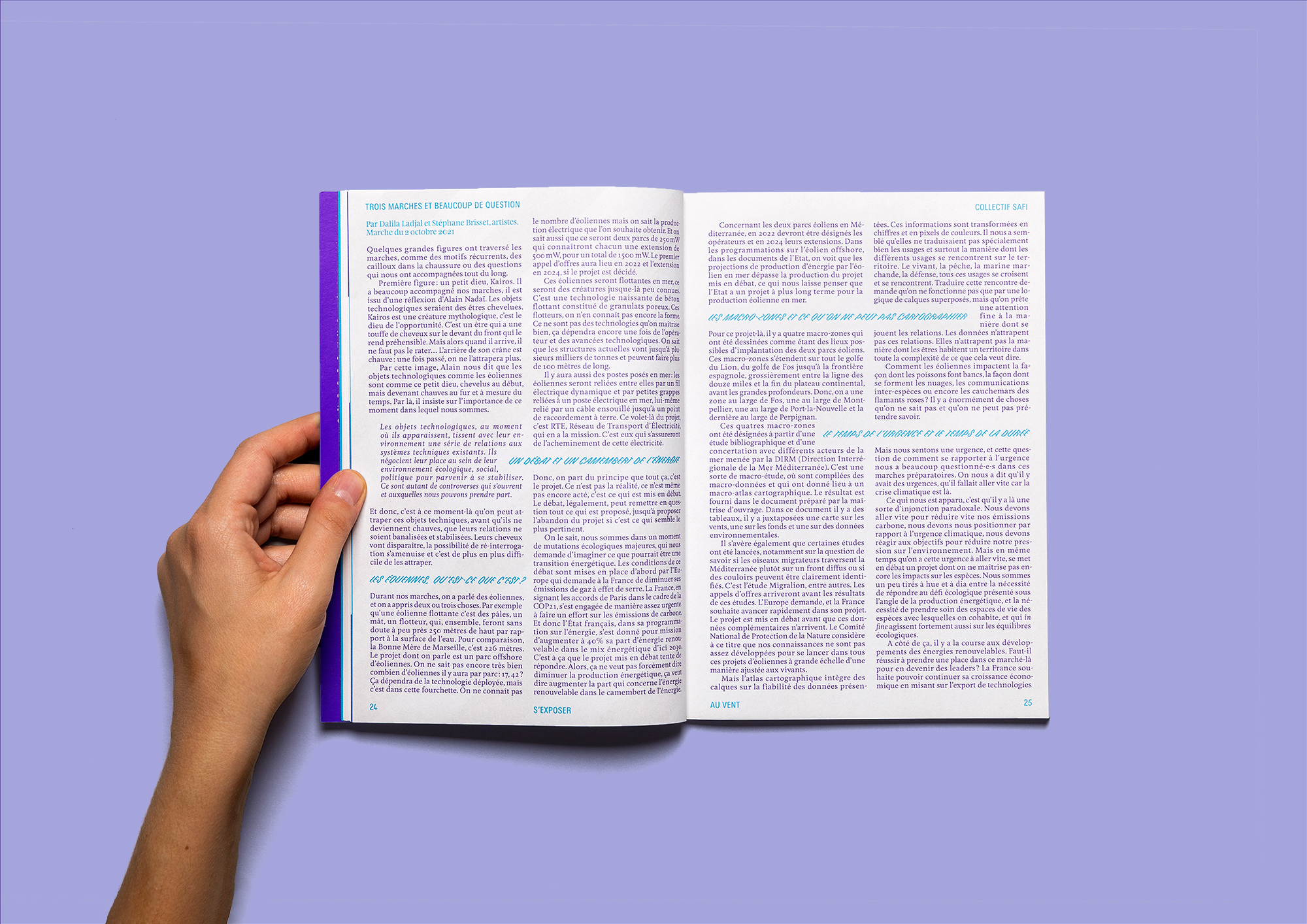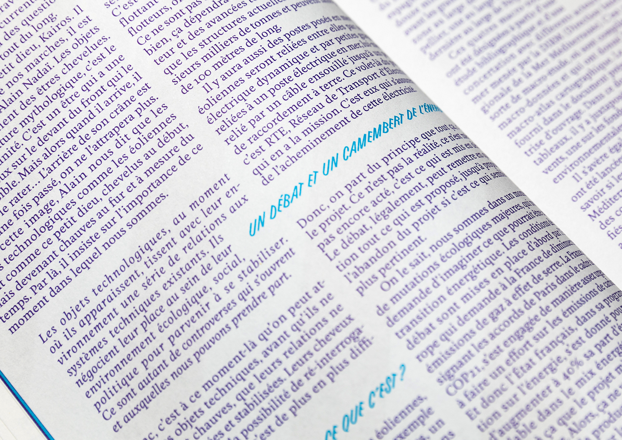 S’exposer au vent (“Exposing yourself to the wind”) is a book that gathers conversations around the project of floating wind turbines in the Gulf of Lion. It is published by the Bureau des guides du GR2013. This cultural association carries out projects that offer original experiences and situations to a wide audience in and around the Aix-Marseille metropolis.