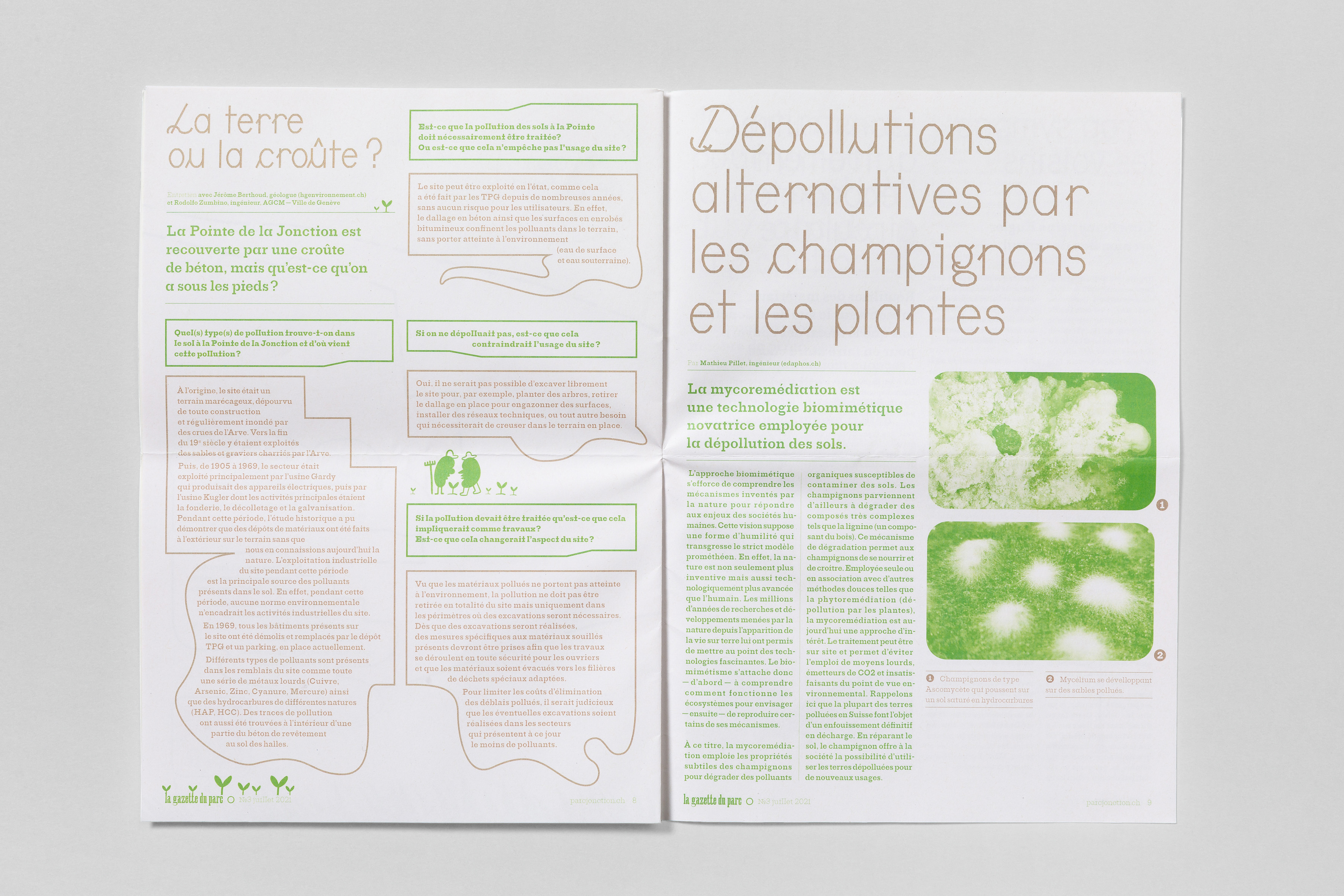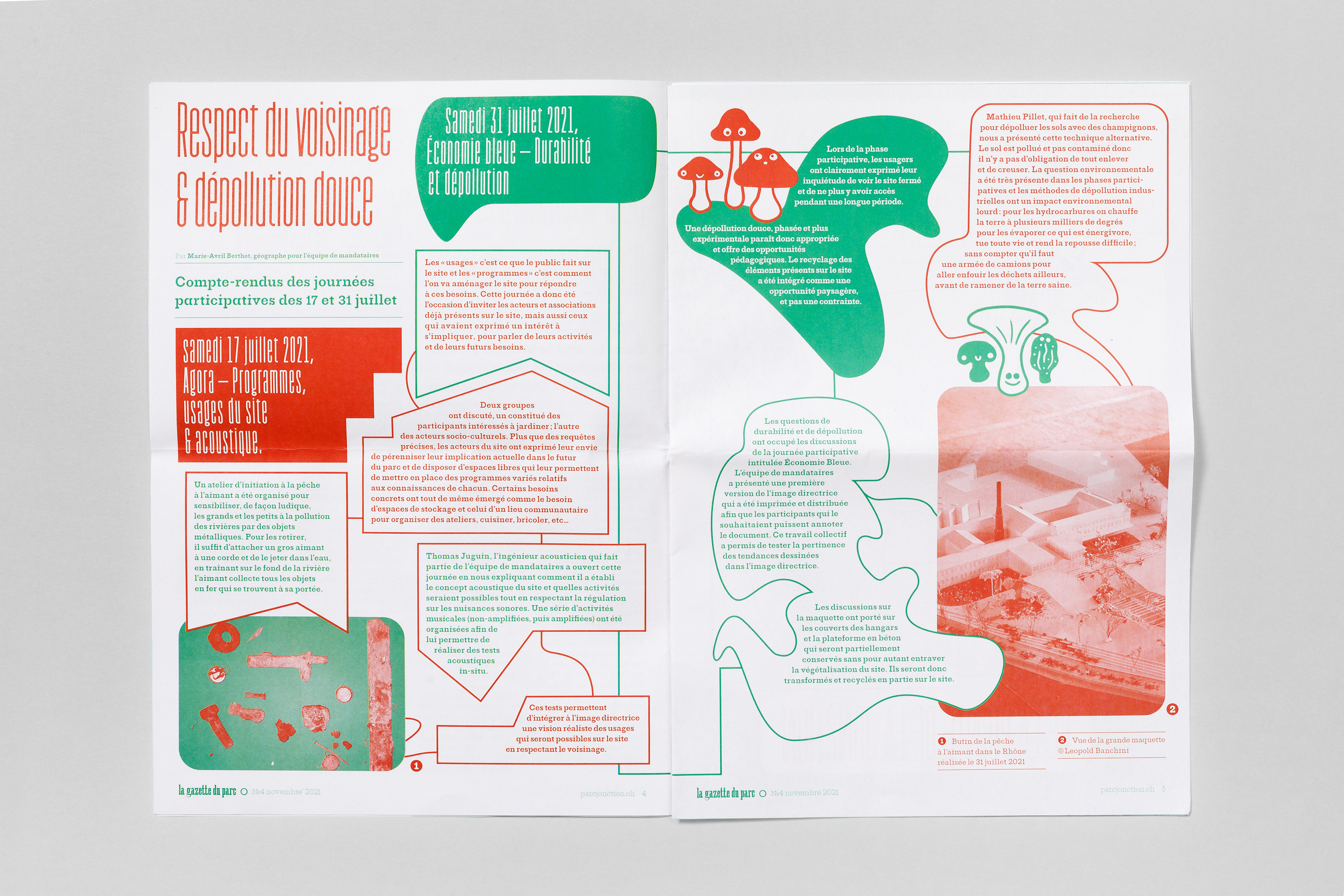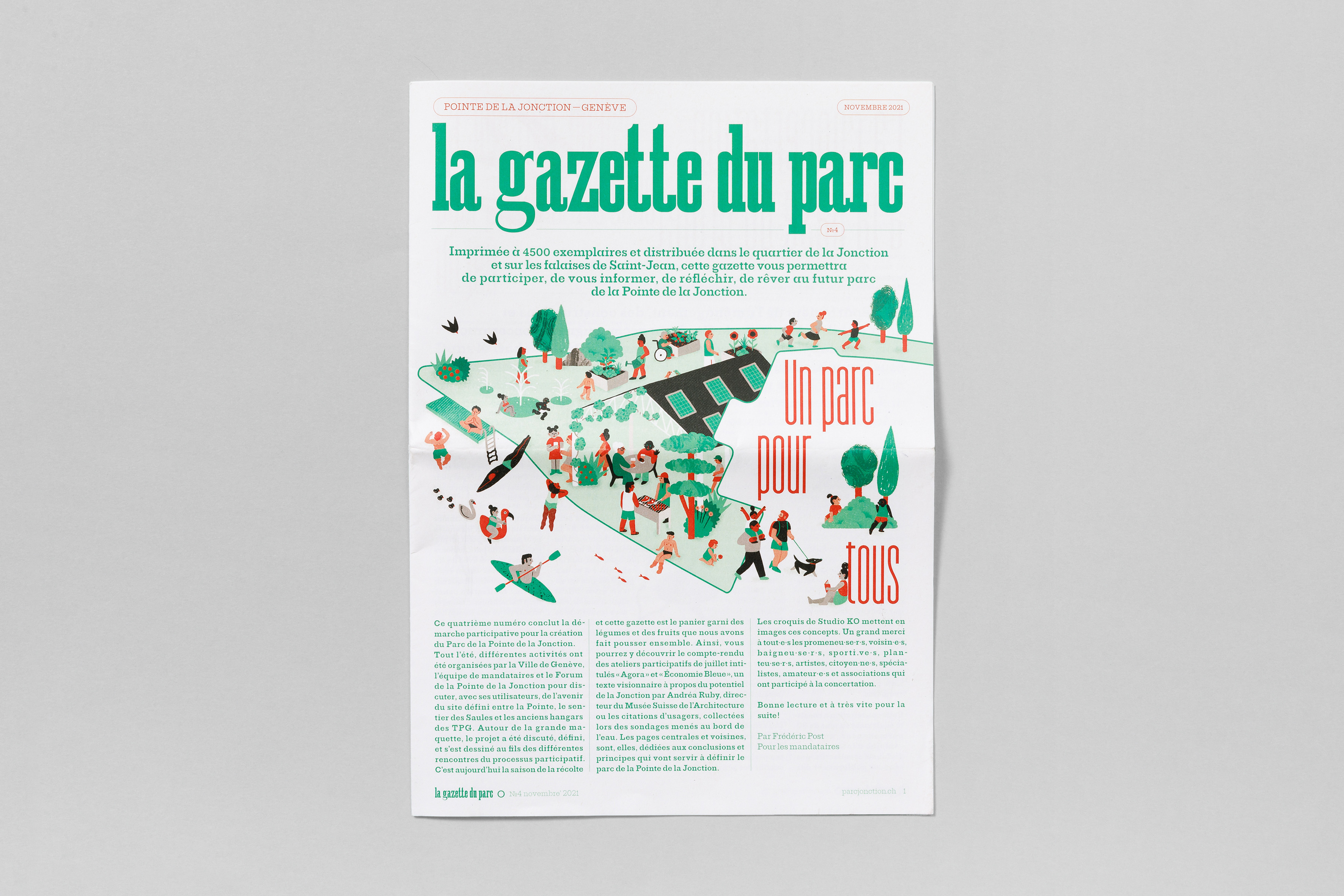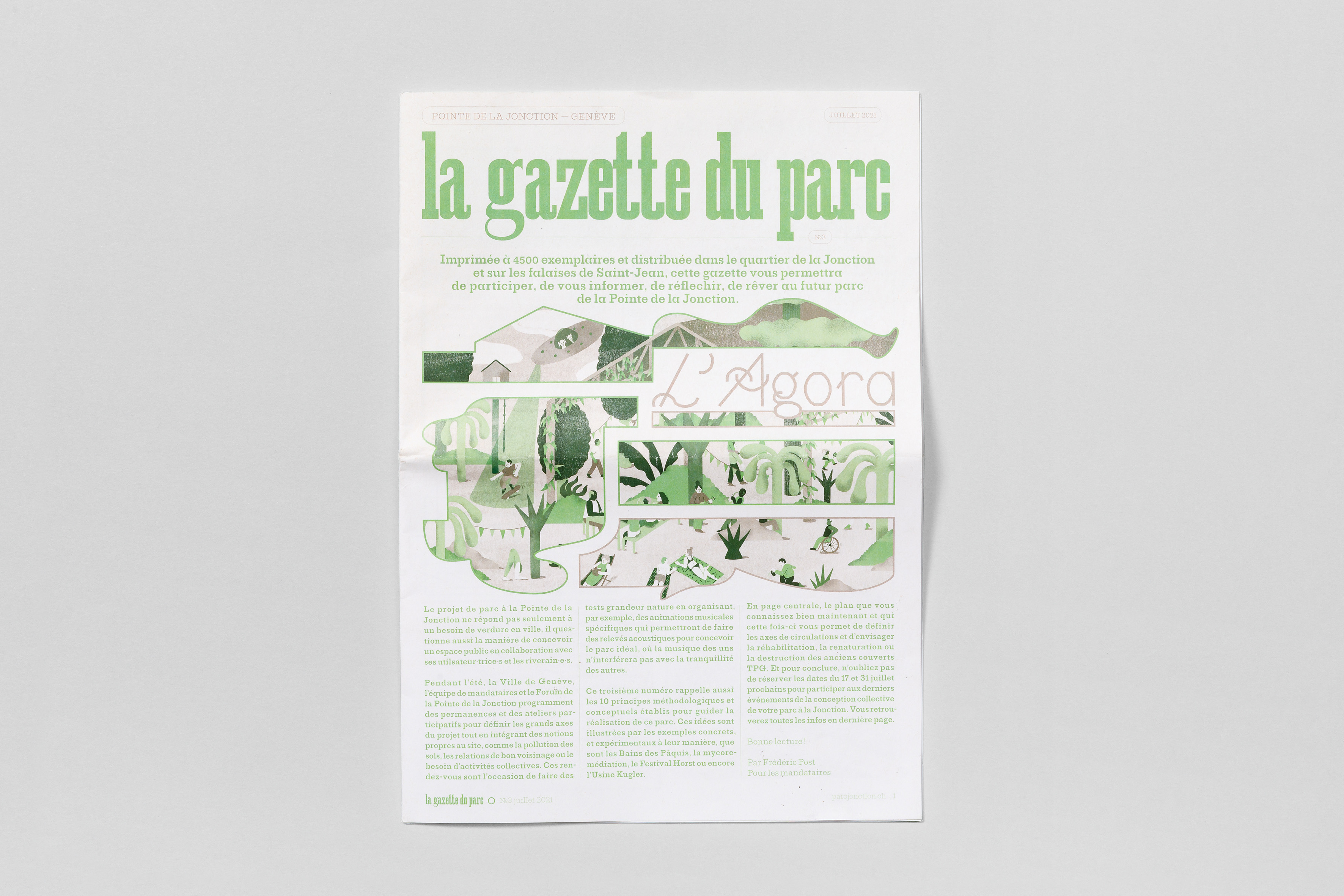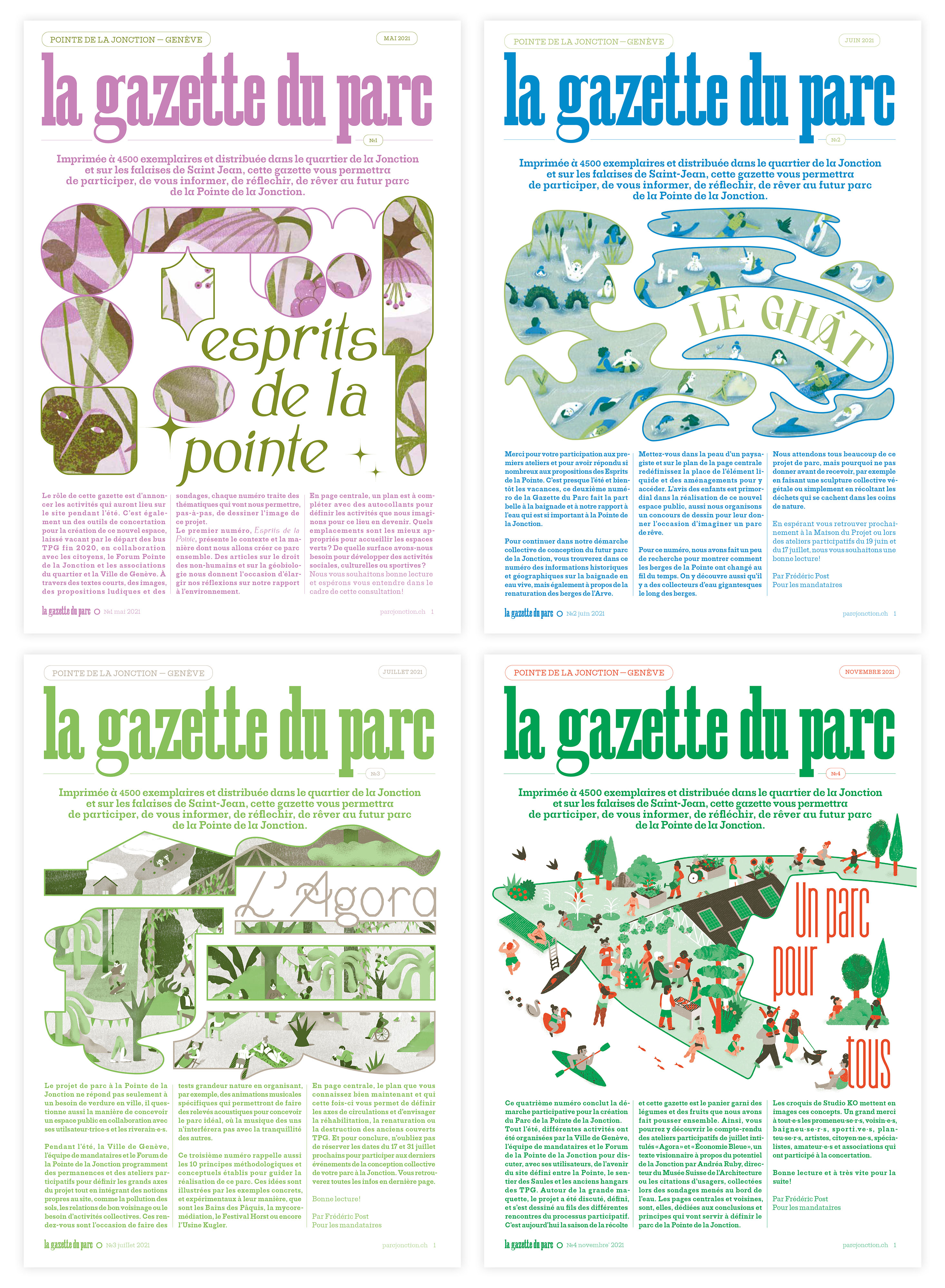 Printed in 4,500 copies and distributed in Geneva’s La Jonction quarter, this gazette allowed the people to participate, to inform themselves, to reflect and to dream about the future Parc of the Pointe de la Jonction, a place that was left vacant by the departure of the TPG buses at the end of 2020.