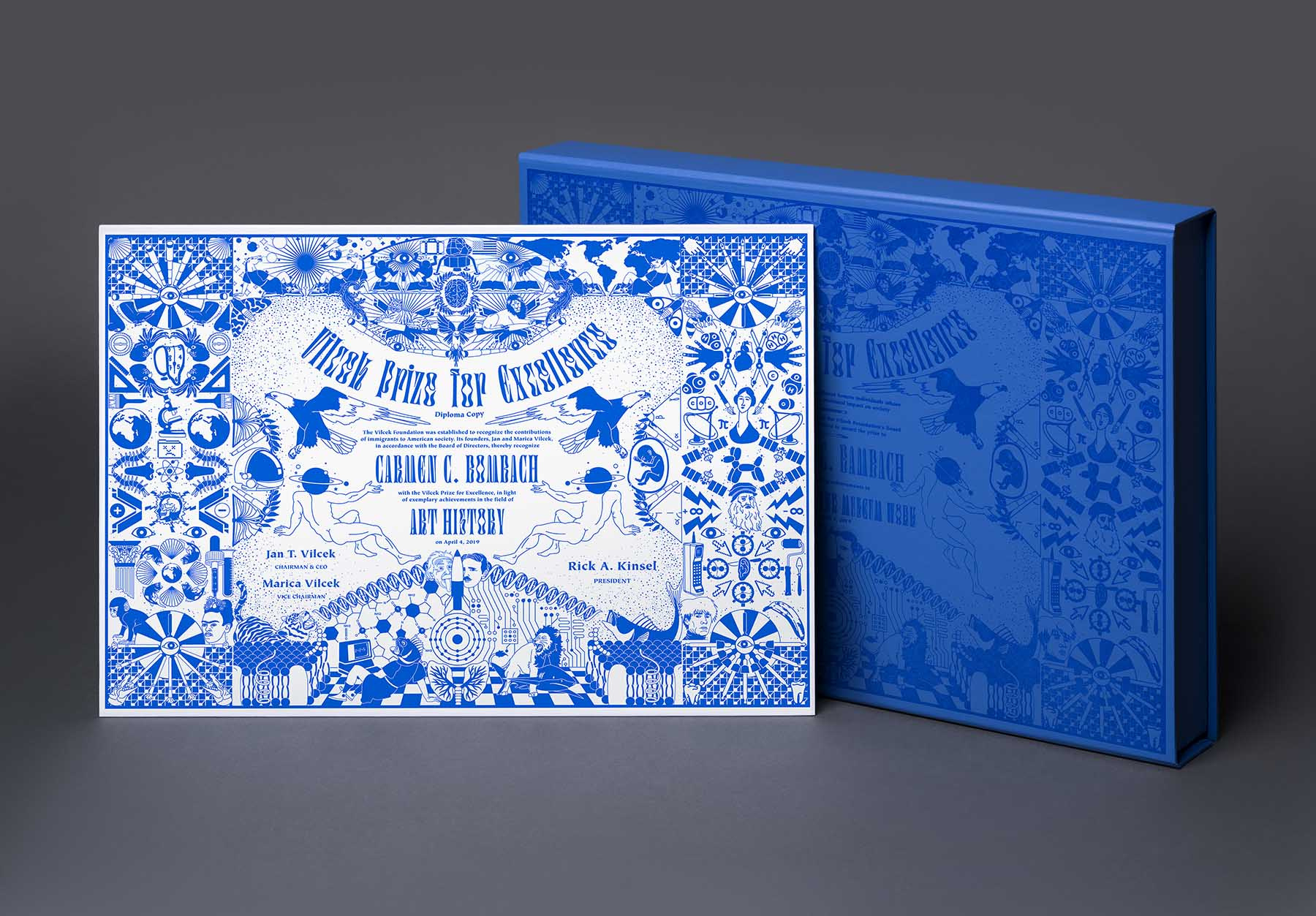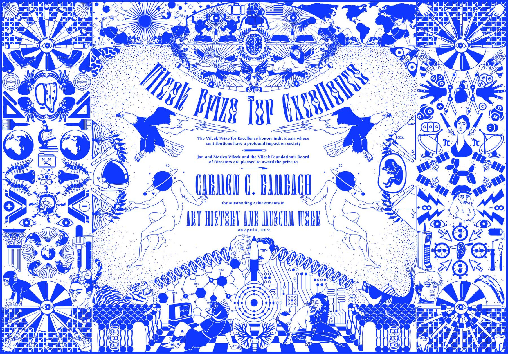 We designed the official Prize for Excellence award given to each year’s winner. We used detailed illustrations to create surreal combinations of impactful historical contributions to humanity in the realms of math, science & art.