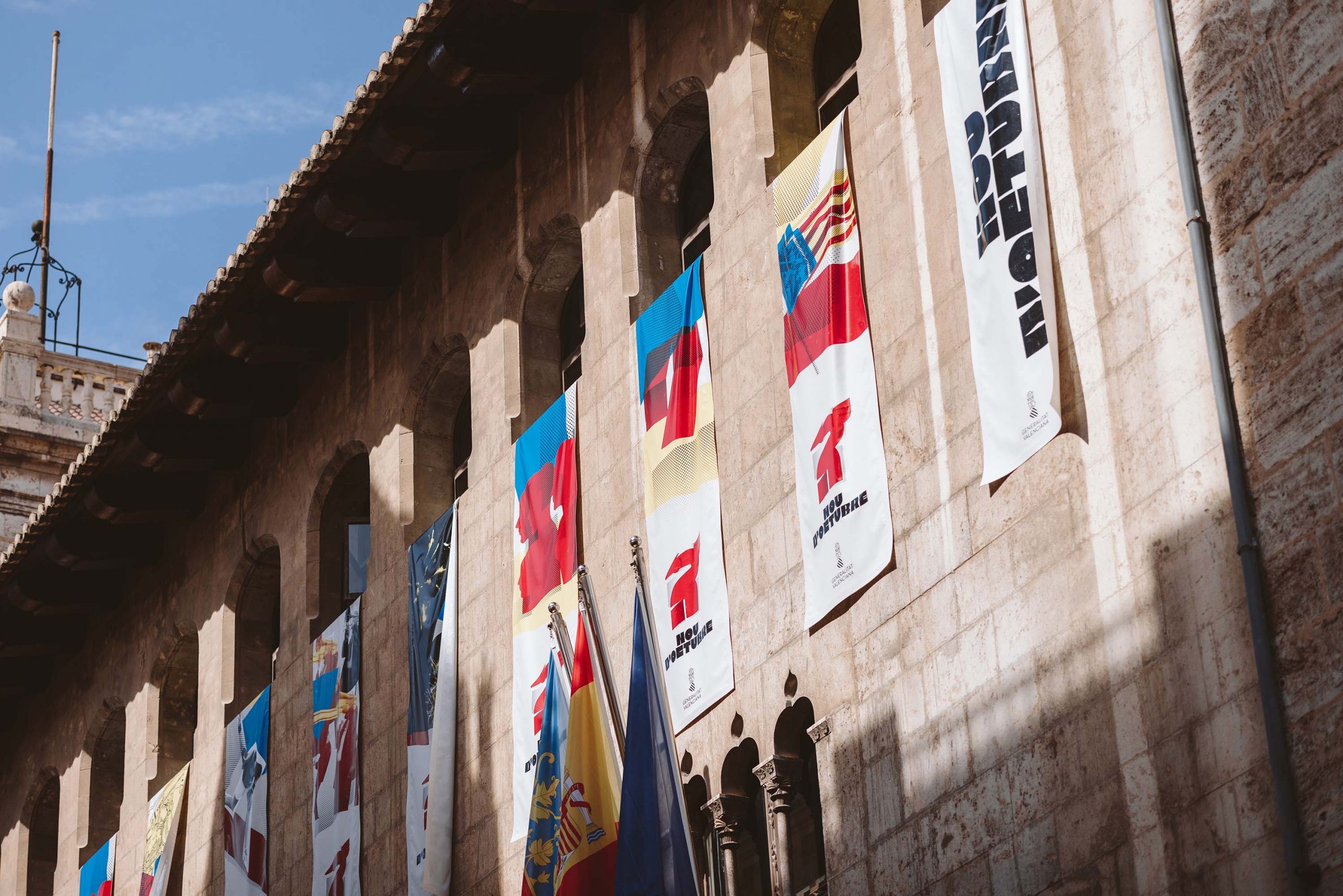 Ibán Ramón designed the communication campaign for Nou d’Octubre 2022 with a poster as the centrepiece. This annual celebration in the Valencian Community commemorates the conquest of the city of Balansiya by the troops of King Jaume I of Aragon and the creation of the Kingdom of Valencia in 1238.