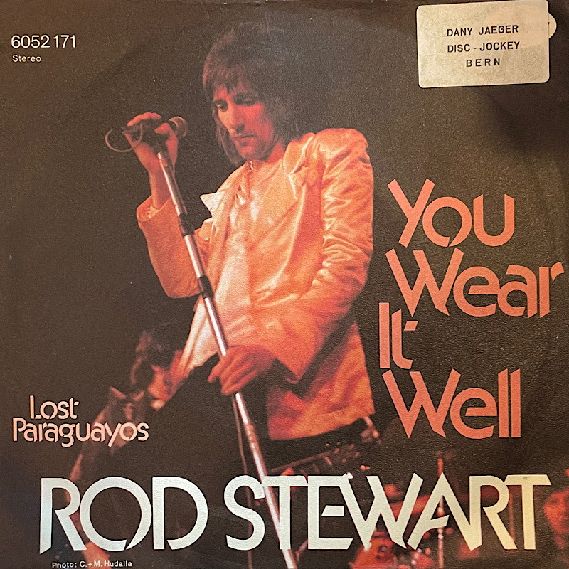 German picture sleeve for Rod Stewart’s “You Wear It Well”. Released on 12 August 1972, the reached number one on the UK Singles Chart (but peaked only at number 35 in Germany).