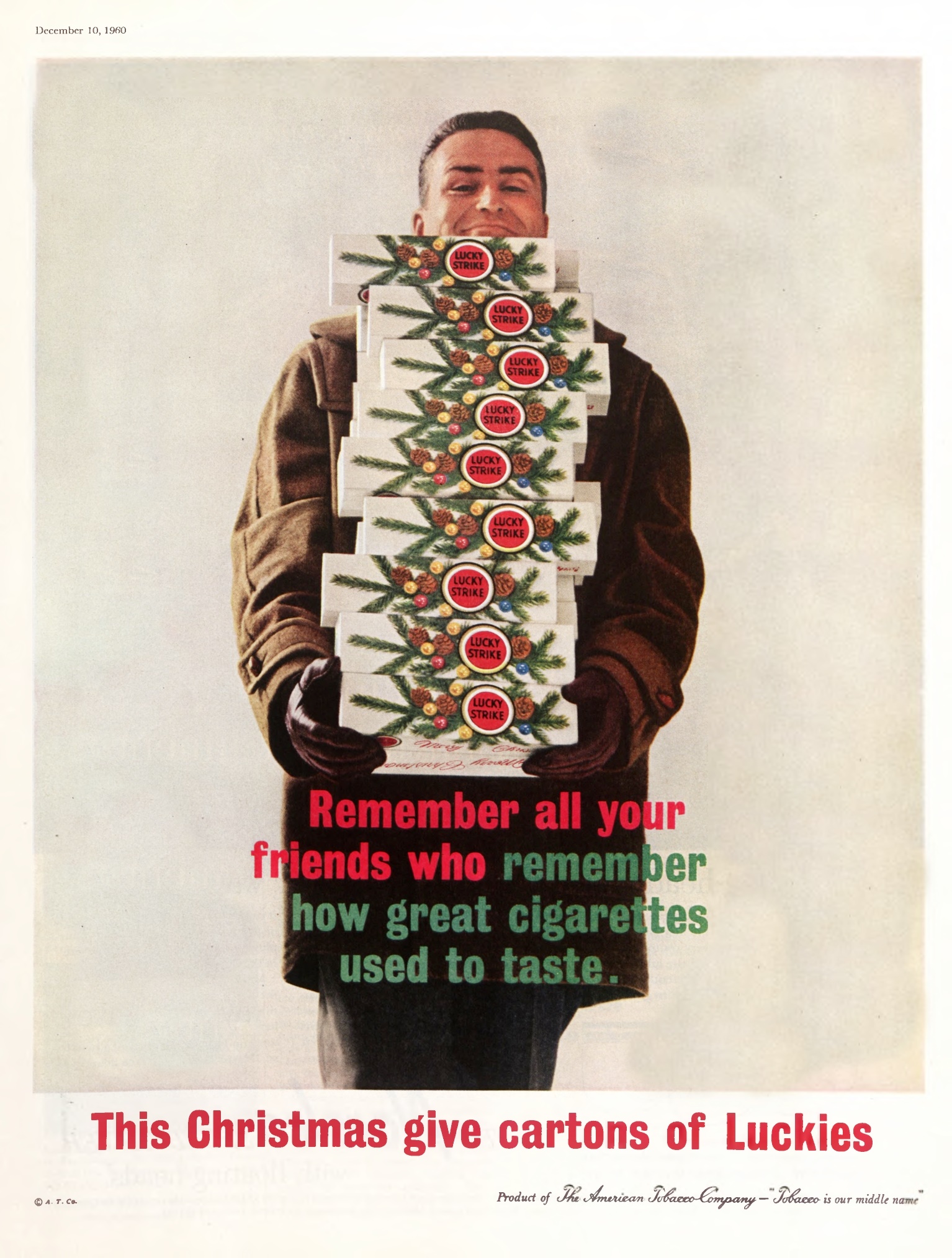 Ad for Lucky Strike Cigarettes in the Saturday Evening Post from December 10, 1960. From the Saturday Evening Post (2018):