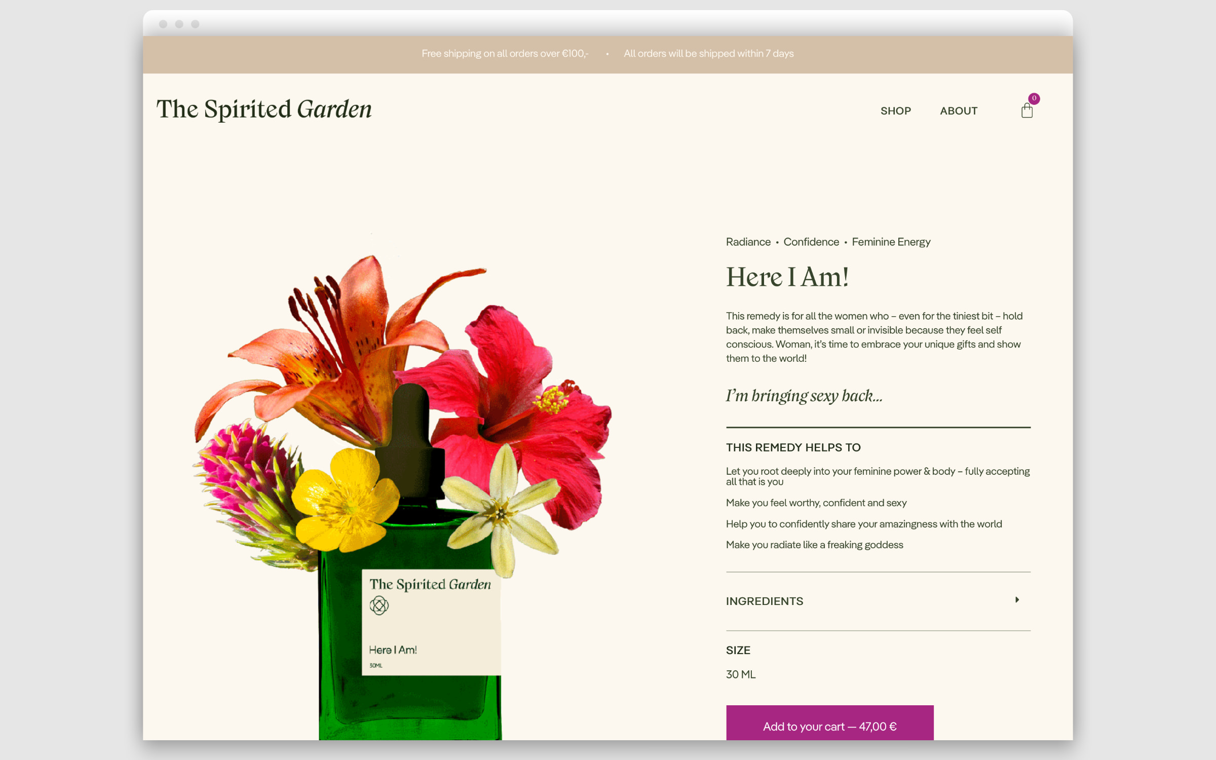 The presentation of the products products is both emotional and factual. The animated illustrations are eye-catching: The remedy bottles are arranged like flower vases in which colourful blossoms dance. The typography is informal and clear but without being clinical. Lyrical headlines, set in the extravagant Nikolai, stimulate the imagination. While small print, set in Pangea, provides transparent information. Product-specific quotes (“I’m bringing sexy back…”) are set in Nikolai Italic.