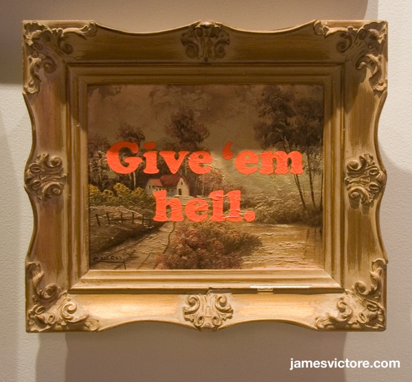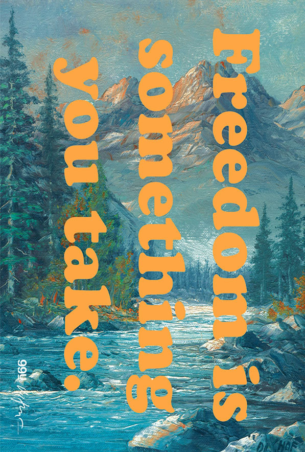 James Victore: Ace Hotel Show Contributed by Stephen Coles on Nov 1st, 2013. Artwork published in 2013. Source: shop.jamesvictore.com License: All Rights Reserved. Ace Hotel and 99U Exhibition. Original paintings with silkscreen aphorisms. Source: www.behance.net License: All Rights Reserved. Source: www.behance.net License: All Rights Reserved. Source: www.pinterest.com License: All Rights Reserved. Source: www.pinterest.com License: All Rights Reserved. Oops: ’. Source: www.pinterest.com License: All Rights Reserved. License: All Rights Reserved. Source: www.pinterest.com License: All Rights Reserved. Typefaces More about Cooper BlackGet Cooper Black Formats Posters/Flyers (5692) Art/Illustration (497) Topics Activism (1103) Art (4624) Designers/Agencies James Victore (1) Tagged withfreedom (8)quotes (525)paintings (194) Artwork location United States (9834) Brooklyn (257) Manhattan (26) New York City (2888) Post a comment Name Email – will not be published Website Your response Submit Comment More Cooper Black in use Conways Photosetting adc. 1974ConwaysContributed by Mathieu Triay The Beatles – “Hello, Goodbye” / “I Am The Walrus” Dutch single cover1967Contributed by Thomas Van Herck Coronas Mexican Restaurant, Arroyo Grandec. 2015unknownPhoto(s) by Frank Grießhammer on Flickr. Sponsor More in Art Franz West: Man with a Ball2012Graphic Thought FacilityContributed by Matthijs Sluiter Mapping The Future2012Stout/KramerContributed by Indra Kupferschmid Afetosyntesis exhibitionc. 2017SAK designSimon KjærGoedele TeirlinckContributed by Frode Helland (Monokrom Skriftforlag) City Atlas by Amalia Barbozac. 2024mm, mManuel WeselyContributed by Manuel Wesely Staff Pick More in Posters/Flyers World Padel Tour2015unknownContributed by Emtype Foundry J’habite ici, à Saint-Ouen!2020Eddy TerkiContributed by Production Type TelefónicaContributed by TypeType Mattiel – Georgia Gothic album campaign2021Mattiel BrownContributed by David Jonathan Ross Staff Pick More Fonts In Use Metarmorphosen oder Der Goldne Esel 2018Manja HellpapContributed by JAF Staff Pick The Margin of Error by Emanuel Cederqvistc. 2019Eric Dahl PalmérKarolina ErikssonStudio MossContributed by Eric Dahl Palmér Staff Pick Kites to make and fly by David Pelham1981David PelhamPhoto(s) by Nick Sherman on Flickr. Staff Pick Conmoto catalogs2019ungestrichenJens KönenContributed by TypeMates Staff Pick