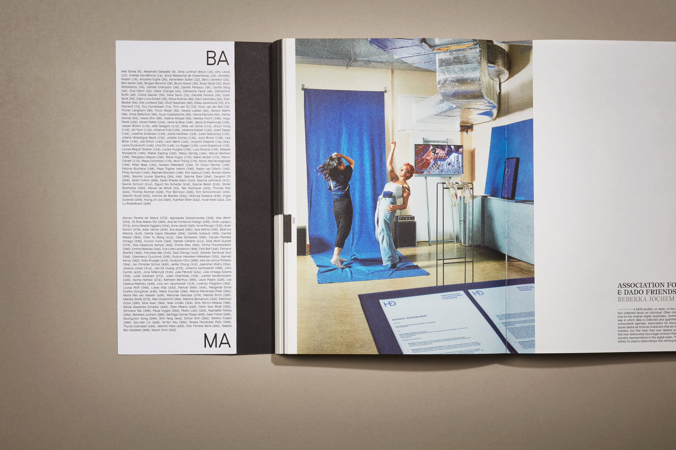 Project descriptions and essays are set in Maison by Milieu Grotesque and project titles are set in Self Modern by Bretagne. Other headings are set in MAD Sans by Colophon which is part of Design Academy Eindhoven’s visual identity.
