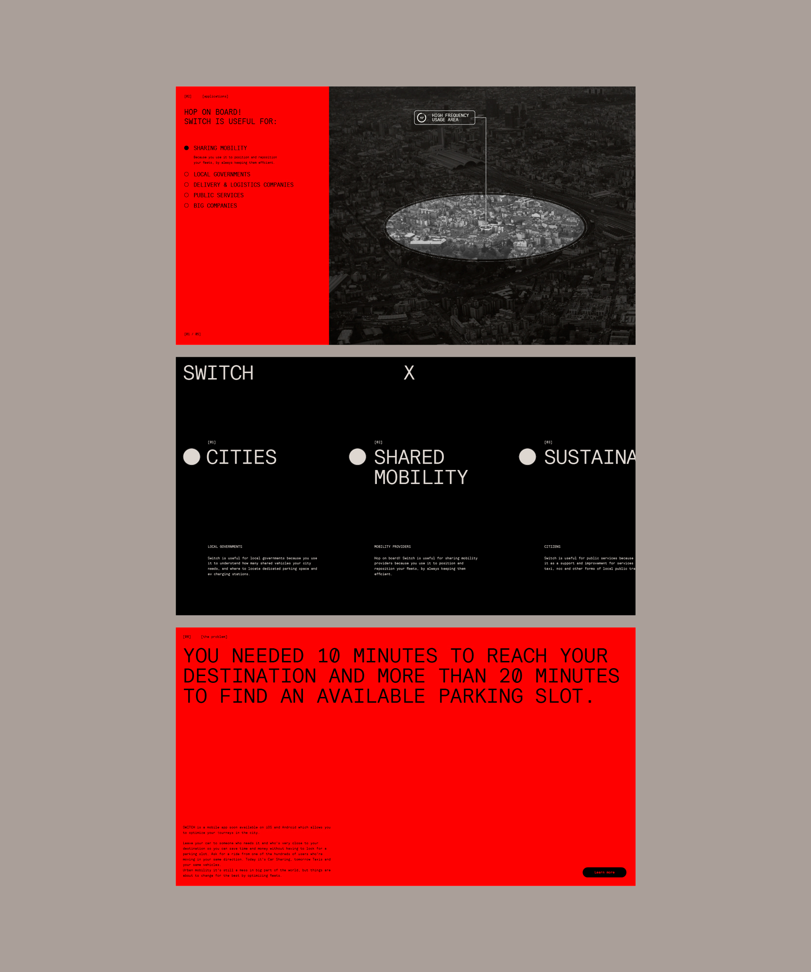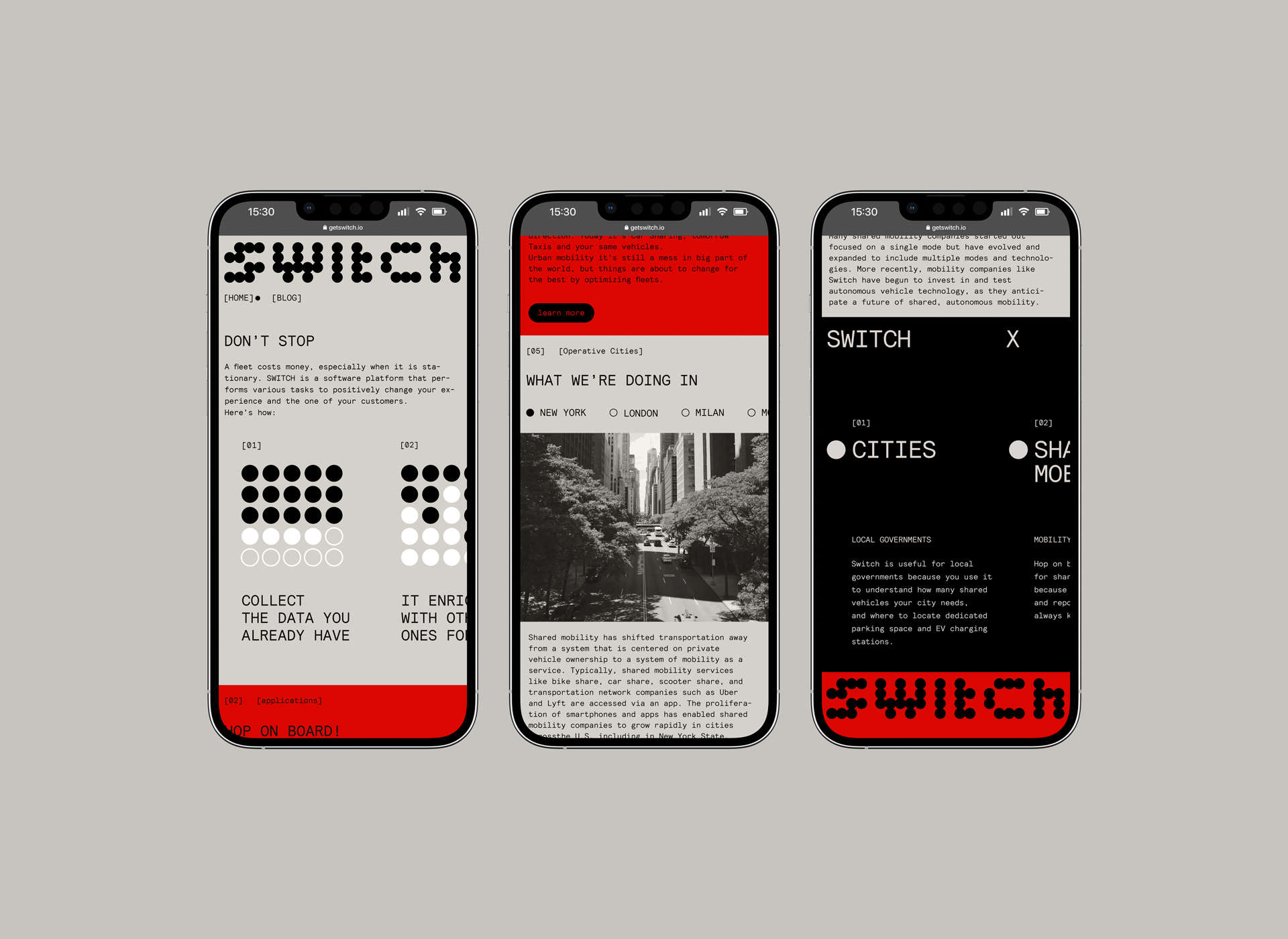 Visual identity and website design for Switch, “the artificial intelligence platform that improves urban mobility through data.”