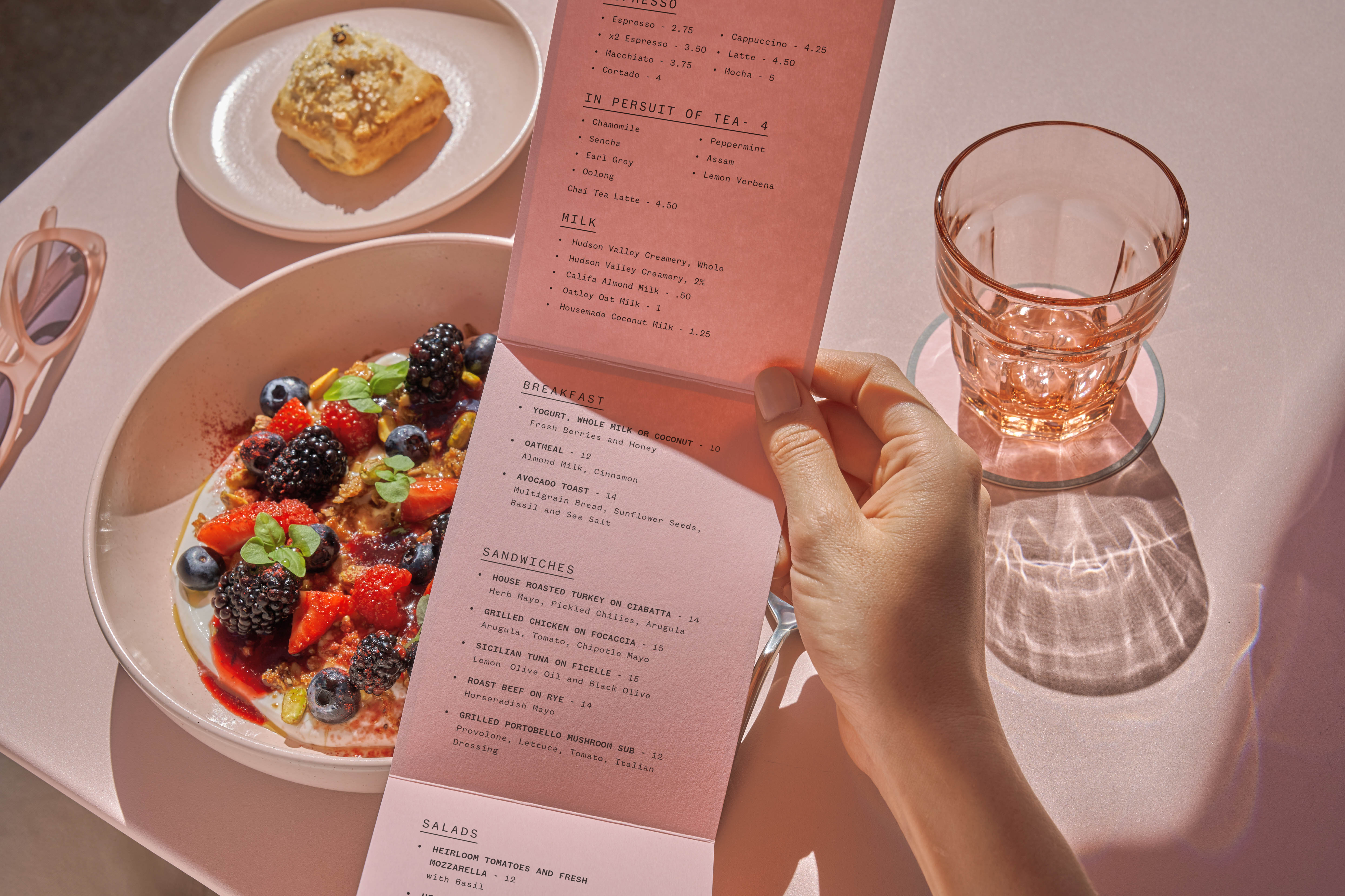 An all-day café by Jean-Georges Vongerichten in Nashville’s Hermitage Hotel, The Pink Hermit offers a playful retro-modern vibe that complements the hotel’s classic elegance. Our branding takes inspiration from the past to build a connection with the historic hotel, while establishing an independent identity for the café.