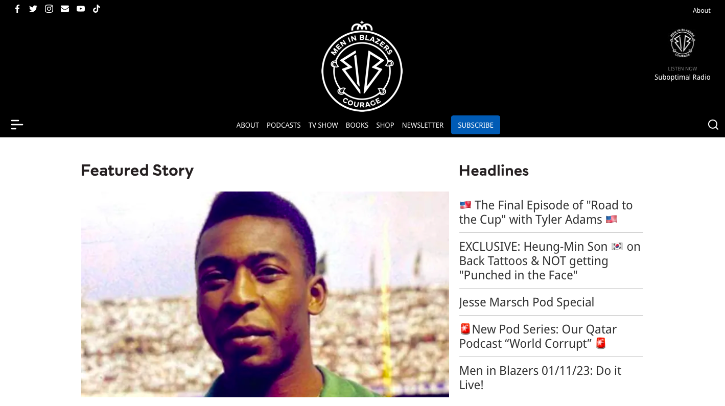 Men in Blazers, founded by Roger Bennett and Michael Davies, is the largest soccer-focused company in North America. The New York City based company is a television show, podcast, and digital brand that streams sport globally year round.