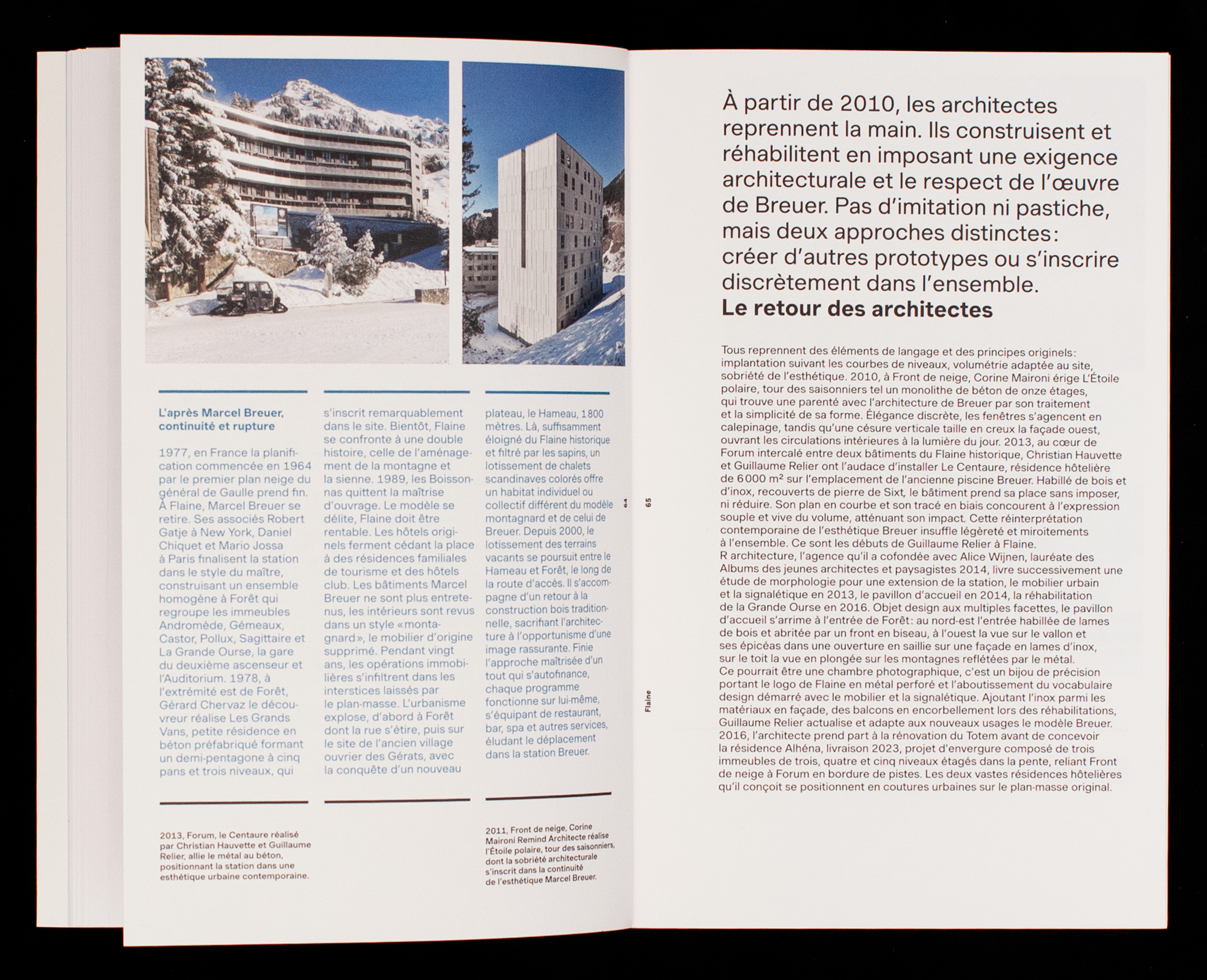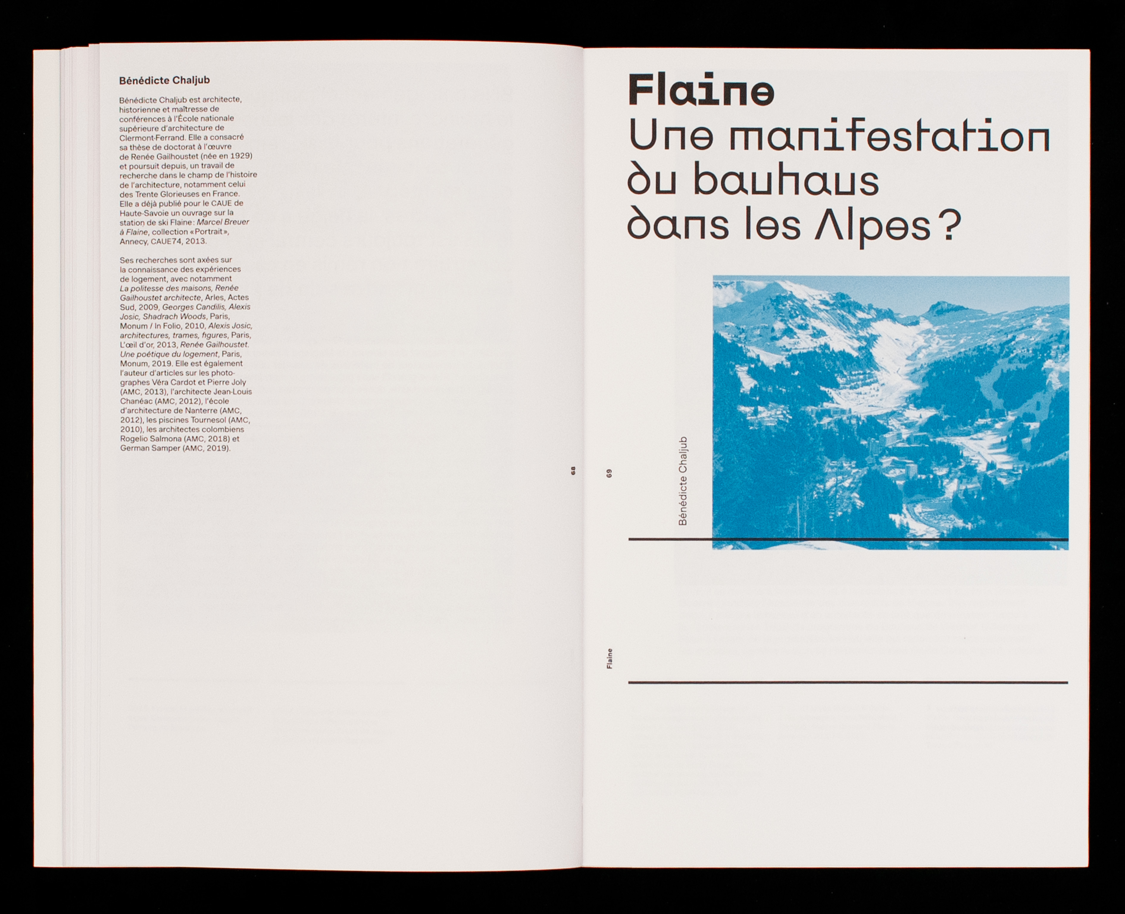 To design the book Flaine, le Bauhaus des Alpes françaises, Marcel Breuer, architecte published by Éditions 205, Bureau 205 used the typefaces Augure and Muoto, both available from 205TF. From Éditions 205 (translated):