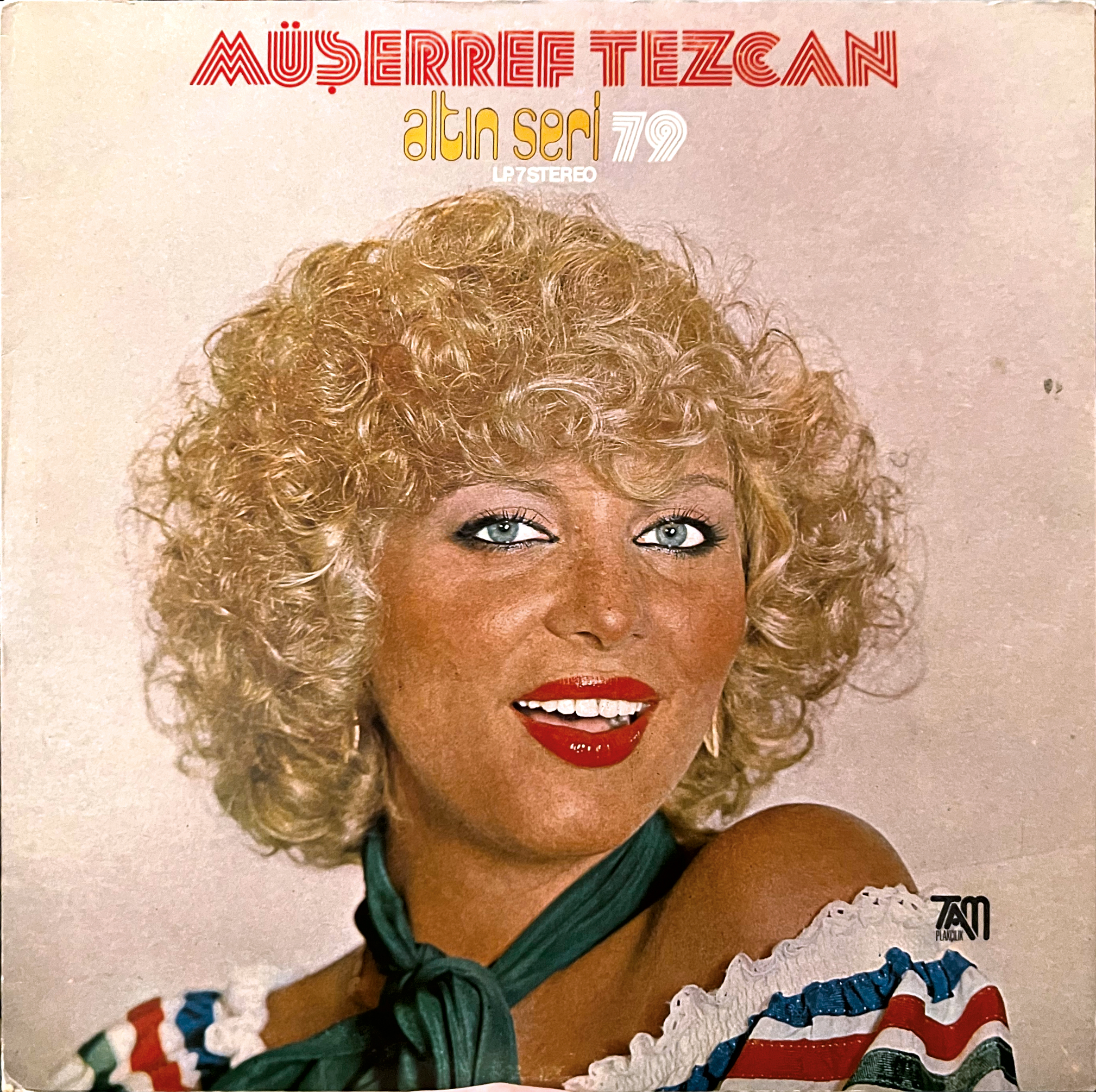 Müşerref Akay (b. 1952) is a Turkish singer and actress. When this album titled Altın Seri 79 (“Gold Series 79”) was released in 1979, she went by the name of her then husband, Tezcan.