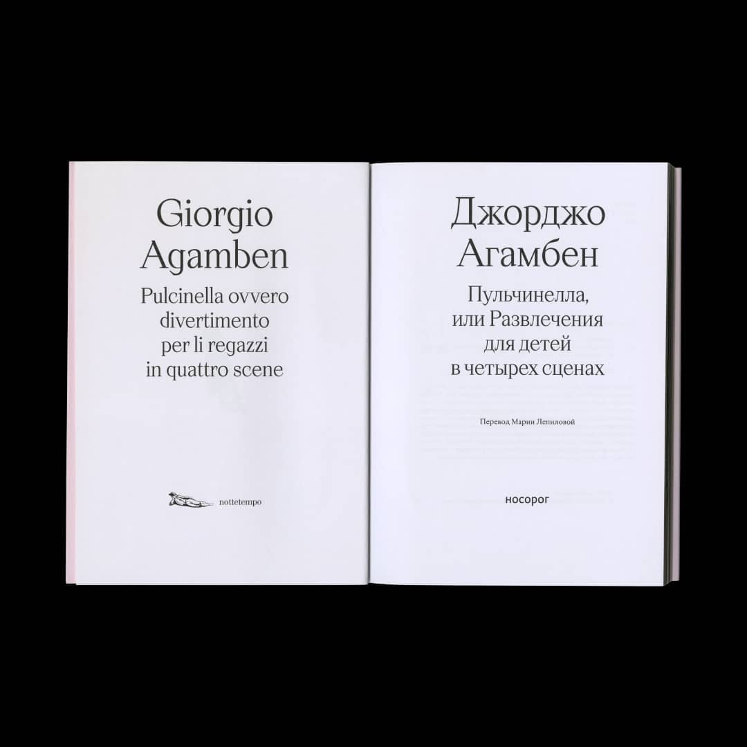 In 2021, Nosorog (Носорог) published the first Russian edition titled Пульчинелла, или Развлечения для детей, translated by Maria Lepilova and edited by Katya Morozova. It was designed by Valeria Stepnova together with Maxim Ploskirev, art director at Nosorog. Ploskirev comments: