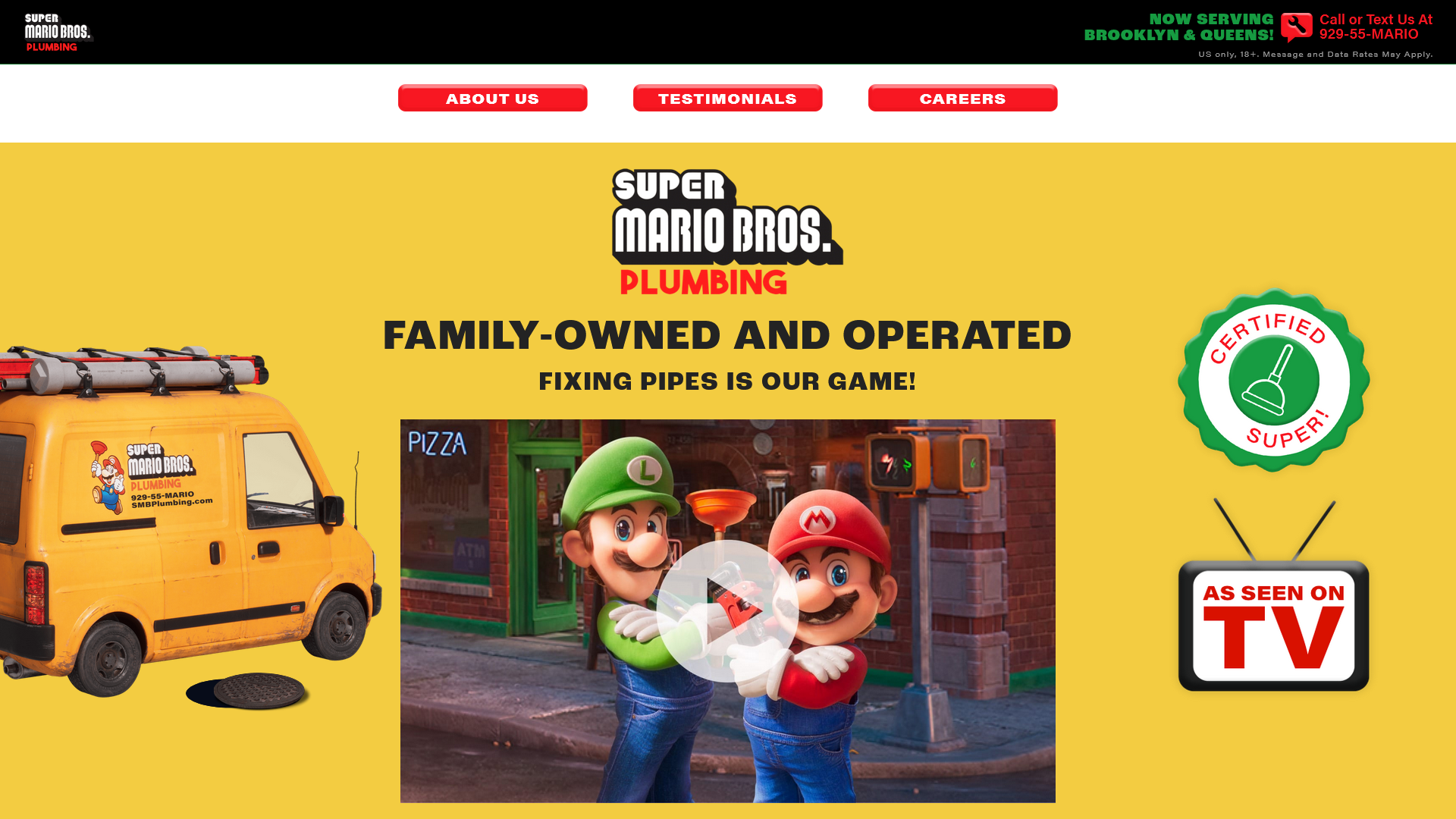 Super Mario Bros. Plumbing is a viral marketing campaign to promote The Super Mario Bros. Movie in the form of a website and a video commercial for the titular business. Both the website and the commercial are stylized after advertisements from locale-specific businesses and contain Easter eggs to different entries in the Mario franchise and Nintendo history.