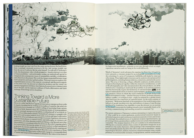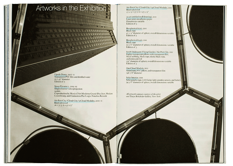 The sky constitutes not only an imaginary realm beyond national and political borders, but also metaphorically an infinite space of unlimited freedom beyond the laws of gravity. Cloud Specific, published on the occasion of the exhibition at Mildred Lane Kemper Art Museum, expands ongoing explorations of an Air-Port City, a project that employs advanced technologies such as bubblelike cells fueled by solar energy to propose new living structures.