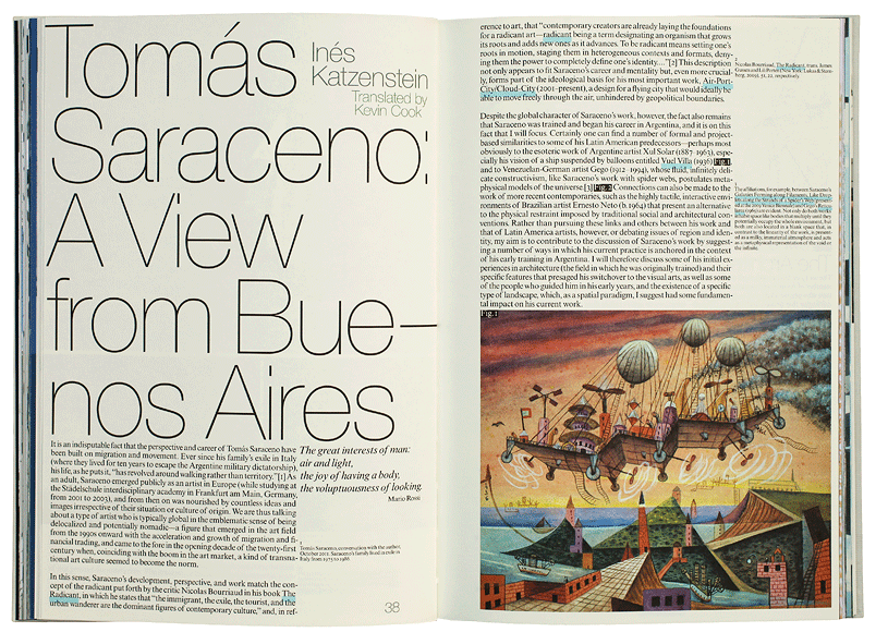 Inside the book, headlines in Neue Helvetica Ultra Light are combined with text set in Times New Roman with non-ligning numerals. See more images on cyan’s portfolio website, including the middle part with a visual essay featuring collages and quotes from Peter Sloterdijk’s Sphären: Schäume, printed on lightweight paper.