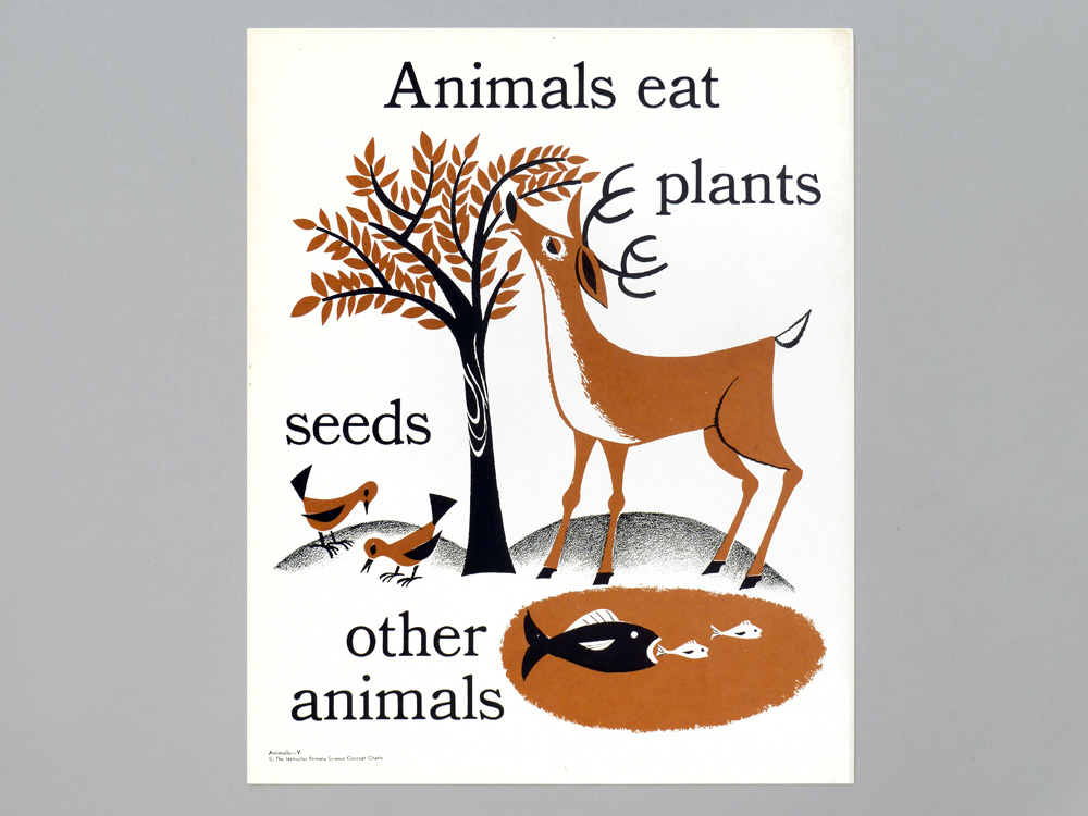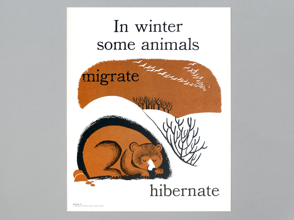 Made me wonder if some of these posters aren’t a bit older than that date (some other pictures online of her work use News Gothic and feel much more 60s), but blog posts and copyright listings referencing Amrine I can find only point to her being active post-war. (The animals kit in these pictures is presumably what this May 1964 listing refers to.) I’d love to know more about her work, though.
