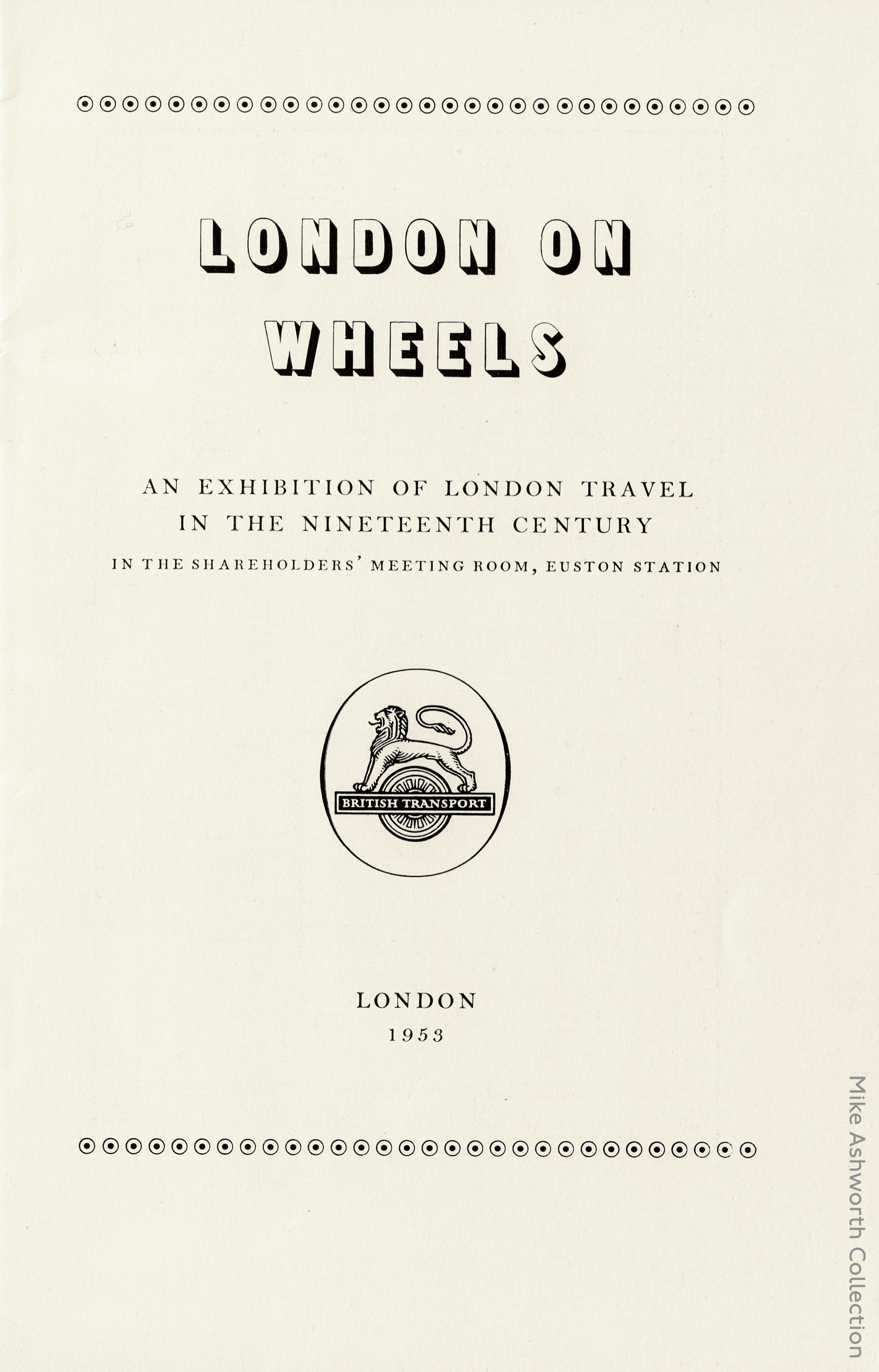 A splendid little booklet issued by the British Transport Commission to support the exhibition of London Travel in the Nineteenth Century in 1953. This was held in the historic Shareholders’ Meeting Room at Euston station; the Commission thought that there was “no better way of making this Room accessible to the public” at the time but sadly, less than a decade later, this historic space along with the other major components of the Victorian station were bulldozed in an act of redevelopment that is still a conservation cause célèbre.
