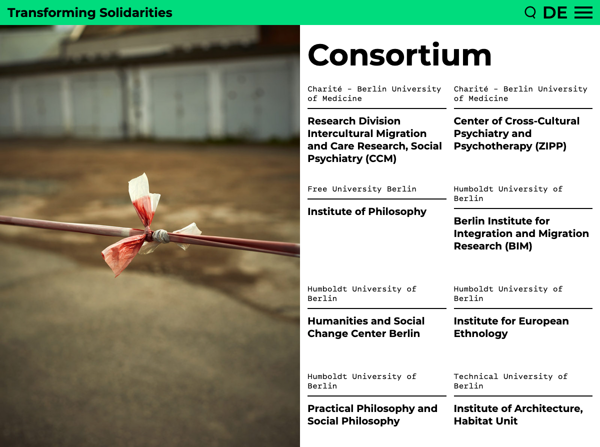 Transforming Solidarities website Contributed by MA-MA Type on Feb 22nd, 2023. Artwork published in 2020. Bureau Est. License: All Rights Reserved. The website of Transforming Solidarities was designed by Ondine Pannet at Bureau Est, using Packer from MA-MA Type together with Montserrat. From Bureau Est’s website: “Transforming Solidarities – Practices and Infrastructures in the Migration Society” is an interdisciplinary group of researchers who see Berlin as a “laboratory” of the migration society. Photos by Monika Keiler. Coding by Mario Helbing. Bureau Est. License: All Rights Reserved. Bureau Est. License: All Rights Reserved. Bureau Est. License: All Rights Reserved. Source: transformingsolidarities.net Bureau Est. License: All Rights Reserved. Source: transformingsolidarities.net Bureau Est. License: All Rights Reserved. Typefaces More about PackerGet PackerMore about MontserratGet Montserrat Formats Web (5679) Topics Activism (1123) Politics (864) Designers/Agencies Bureau Est (3) Ondine Pannet (2) Tagged withwebsites (3622)solidarity (33)migration (67)mobile (607)responsive (166)lists (308)alphabetically sorted (56)color coding (224)monospaced (1259)Berlin (83)pre-release uses (730)typeface combinations (3989)multilingual (2678)German (language) (2565)English (language) (2488)yellow green and blue (13) Artwork location Germany (3910) France (2885) Leipzig (137) Paris (1344) In SetsDesigns by Women (Fonts In Use Staff) (3647)Web (Lucas Bevilaqua) (361)Beautiful Typesetting (Lucas Bevilaqua) (684)Pairings (Lucas Bevilaqua) (578)Typewriter Vibes (Lucas Bevilaqua) (44) Post a comment Name Email – will not be published Website Your response Submit Comment More Montserrat in use The Drinks Bureau2023The Drinks BureauContributed by Production Type Whale Song Speech Pathology2024Jemma WiltshireContributed by Jemma Wiltshire Oliwia Baginska visual identity2022Oliwia BaginskaContributed by Markus Abts Sponsor More in Politics The Economist, Oct 15, 20162016Stephen PetchContributed by Stephen Coles The New Republic Magazine, July 20132013Dirk BarnettErick A FletesBen AvnyContributed by Letters from Sweden Staff Pick Hanns Kralik: Mensch wie stolz das klingt exhibition catalog2023MWK Zimmermann & HähnelContributed by Felix Braden Armed Forces of Ukraine (AFU) visual communication2023Taras IshchykOrest PidlisetskyiContributed by Svitlana Tolmach (Rentafont) More in Web Gorillaz – Cracker Island album art and World Tour 2022c. 2022Warner RecordsJamie HewlettStars RedmondContributed by JAF Ski Dubai2022Tabrez AhmadContributed by Tabrez Ahmad Kopublikacja2015PillcrowContributed by verena gerlach Hypercardc. 2023Daybreak StudioAliasger RasheedBenya SutyanongContributed by Ali Rasheed More Fonts In Use Pizzeria Bebu identity2017ThirstBud RodeckerContributed by Stephen Coles Staff Pick Dramaturgias #1, Sesc2019Tereza BettinardiContributed by Tereza Bettinardi Staff Pick M Le Magazine Du Monde International, issue 01, 20192019Jacobs+Talbourdet-NapoleoneLe MondeContributed by R-Typography Staff Pick Band of Brothers opening title sequence2001Michael RileyShineContributed by Florian Hardwig Staff Pick